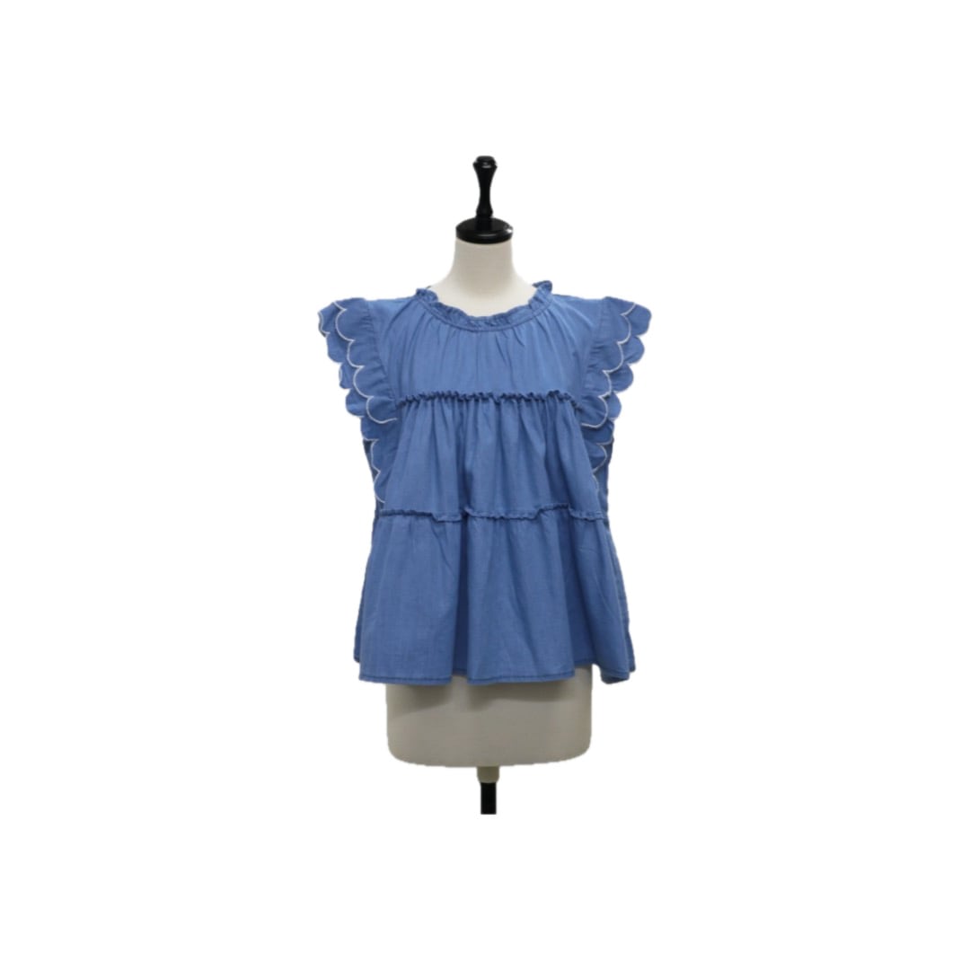Denim scallop frill design tops