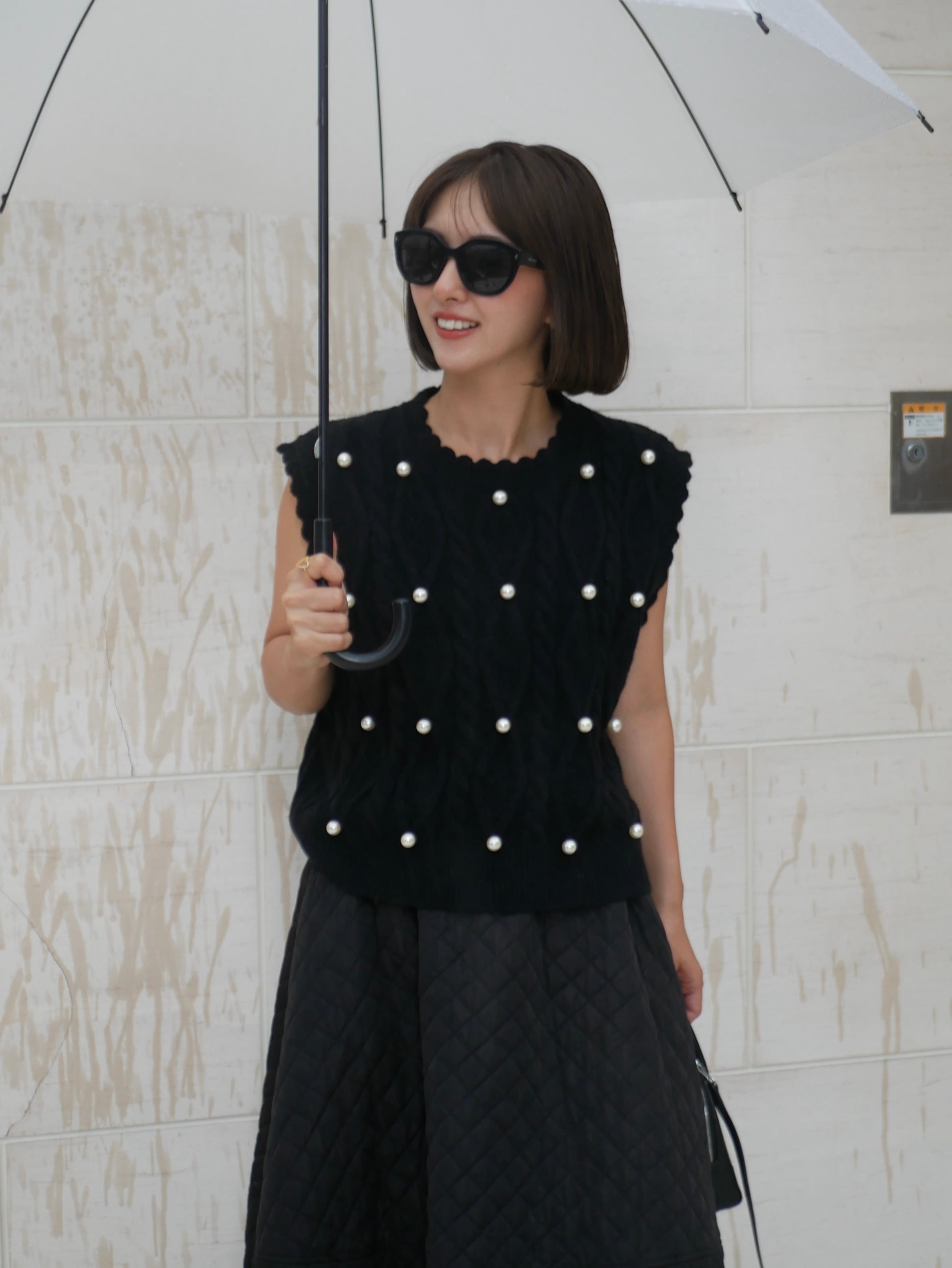 Pearl design scallop knit vest