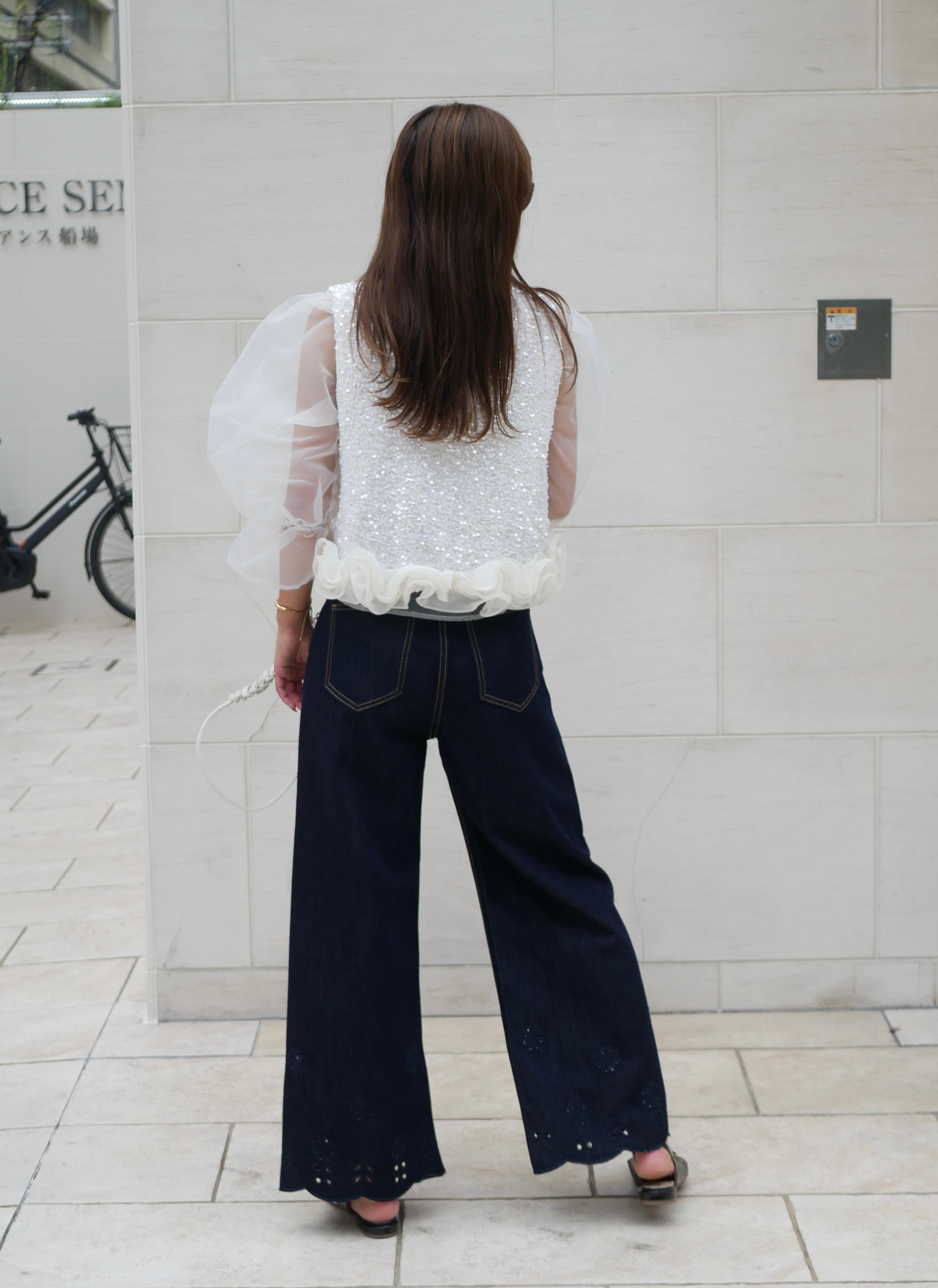 Ruffled hem sequin design vest