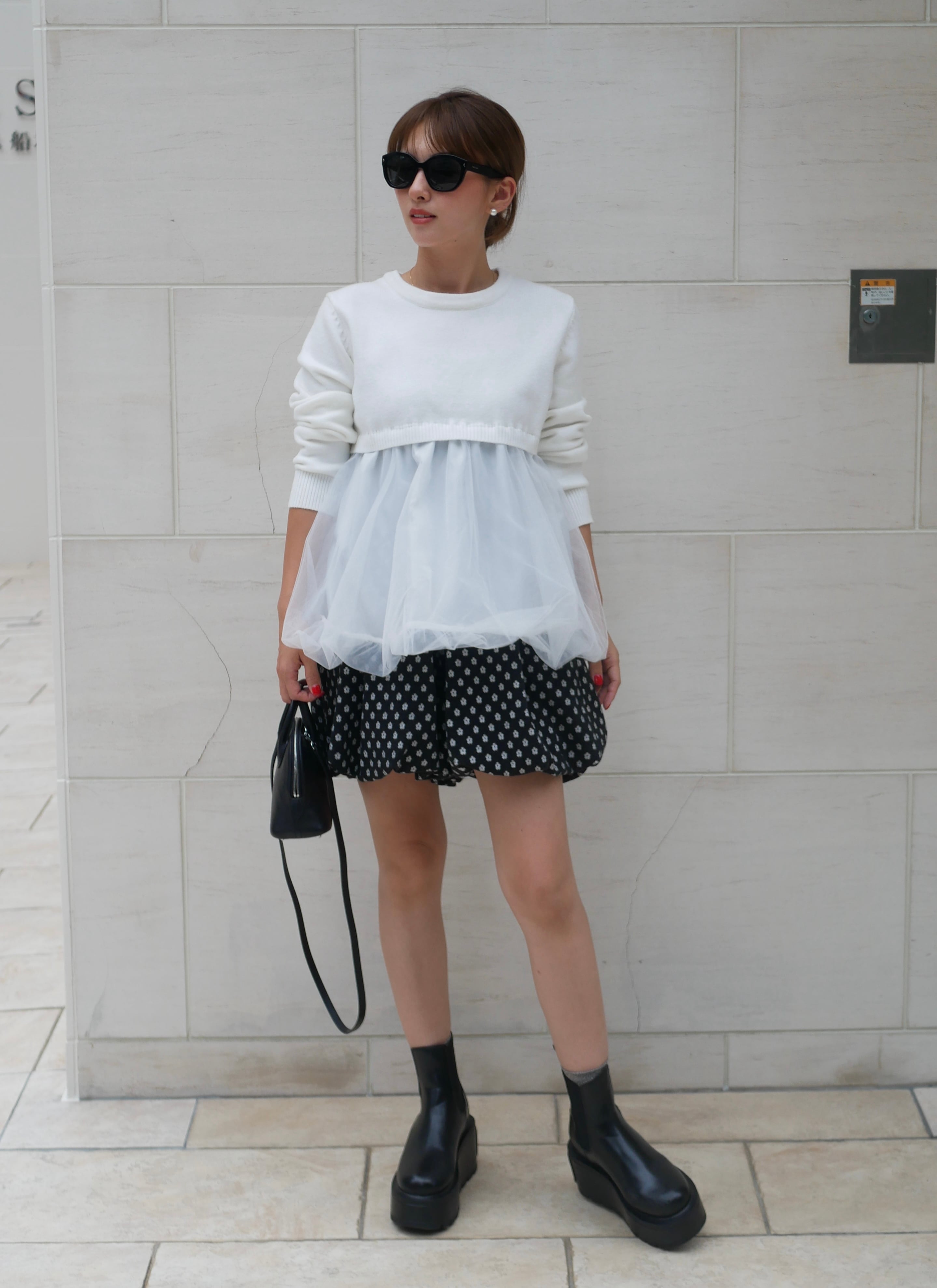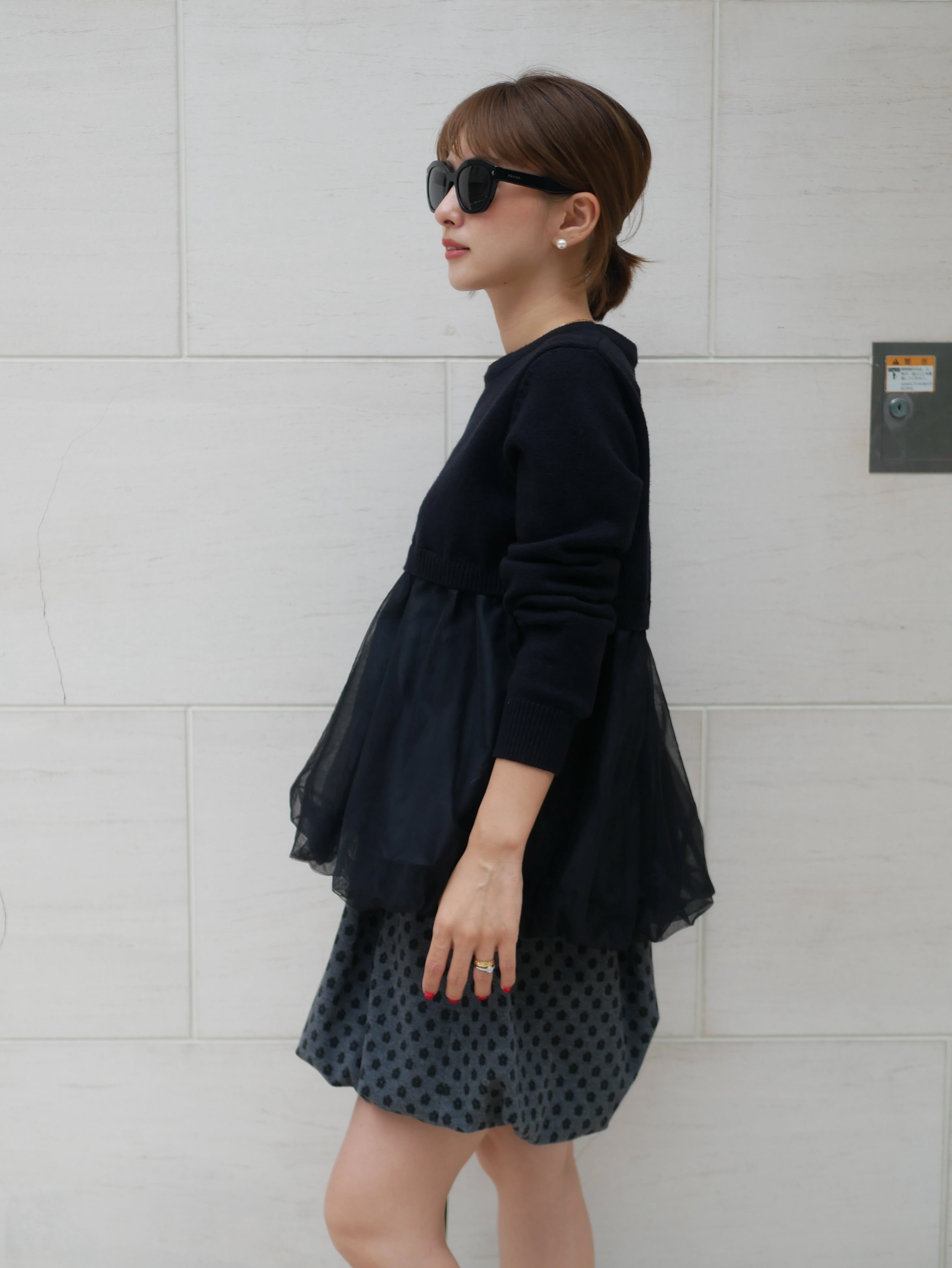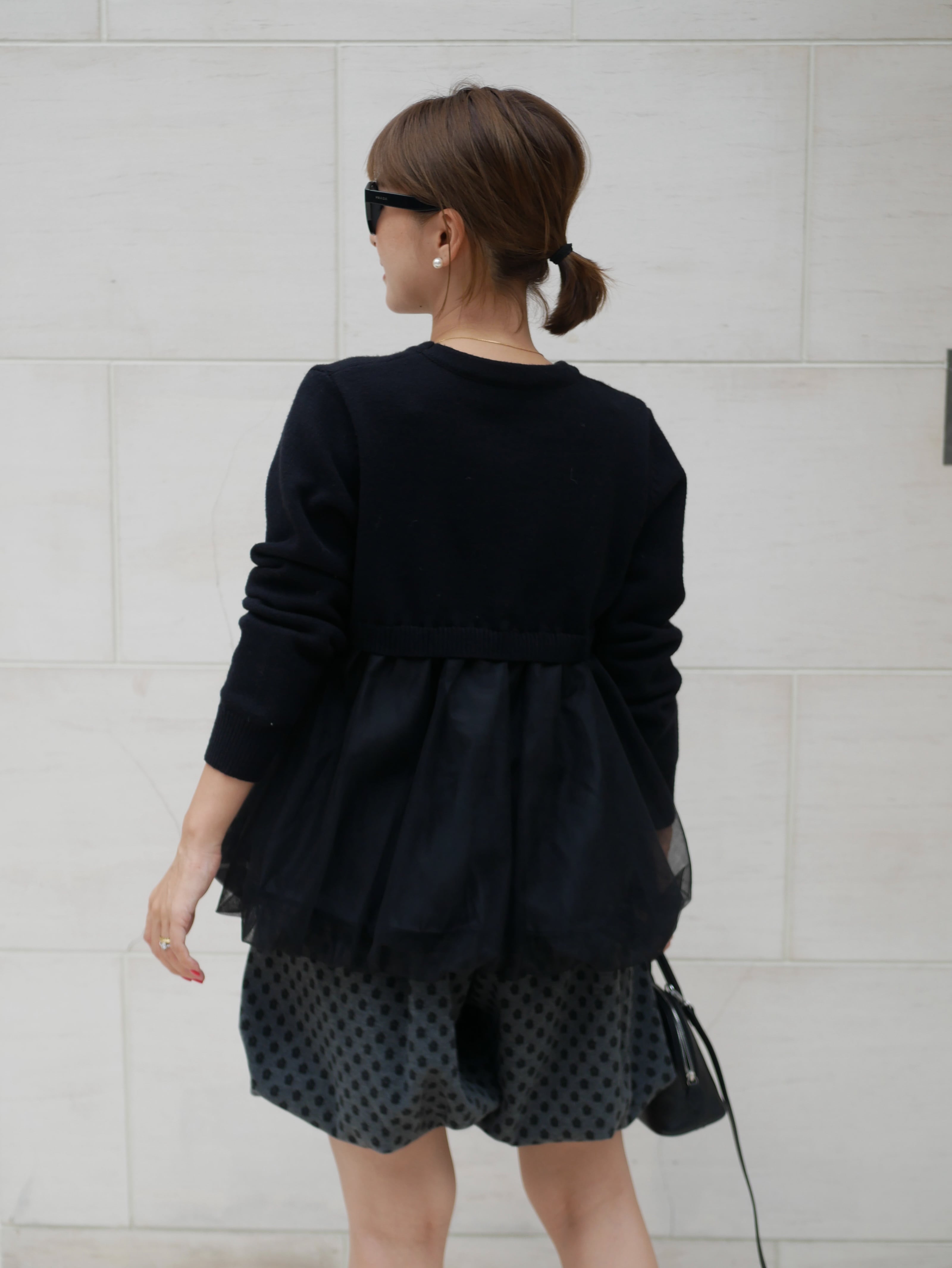 Tulle balloon docking knit pullover