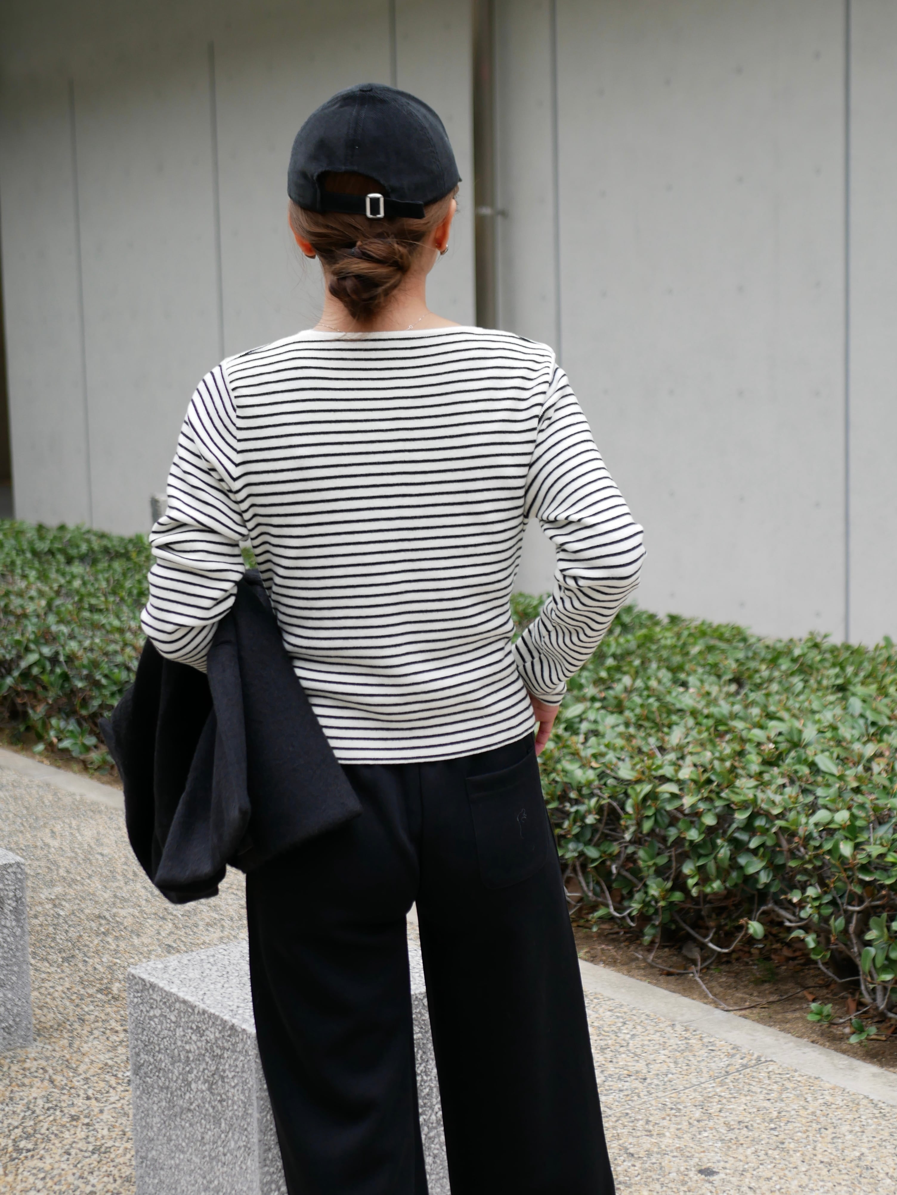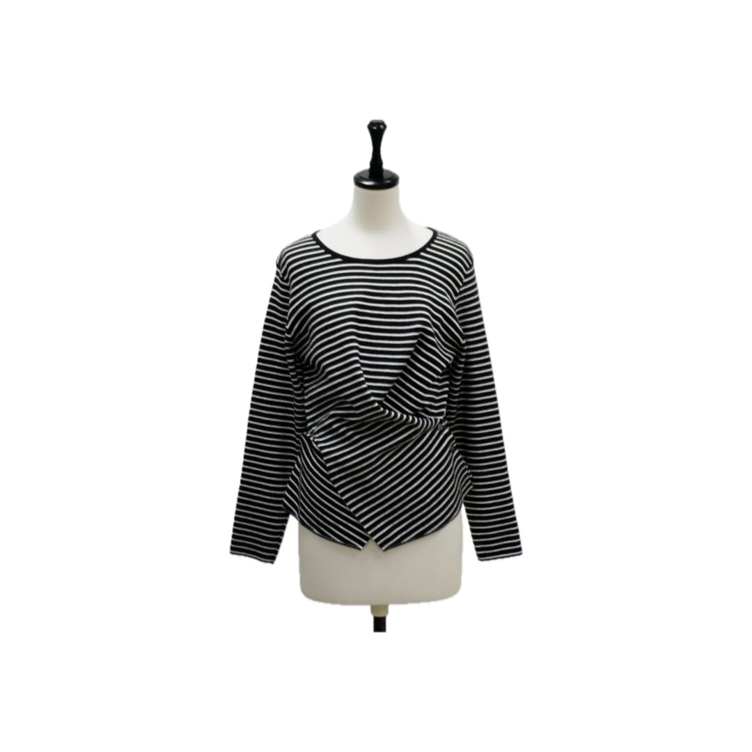 Side button border knit pullover