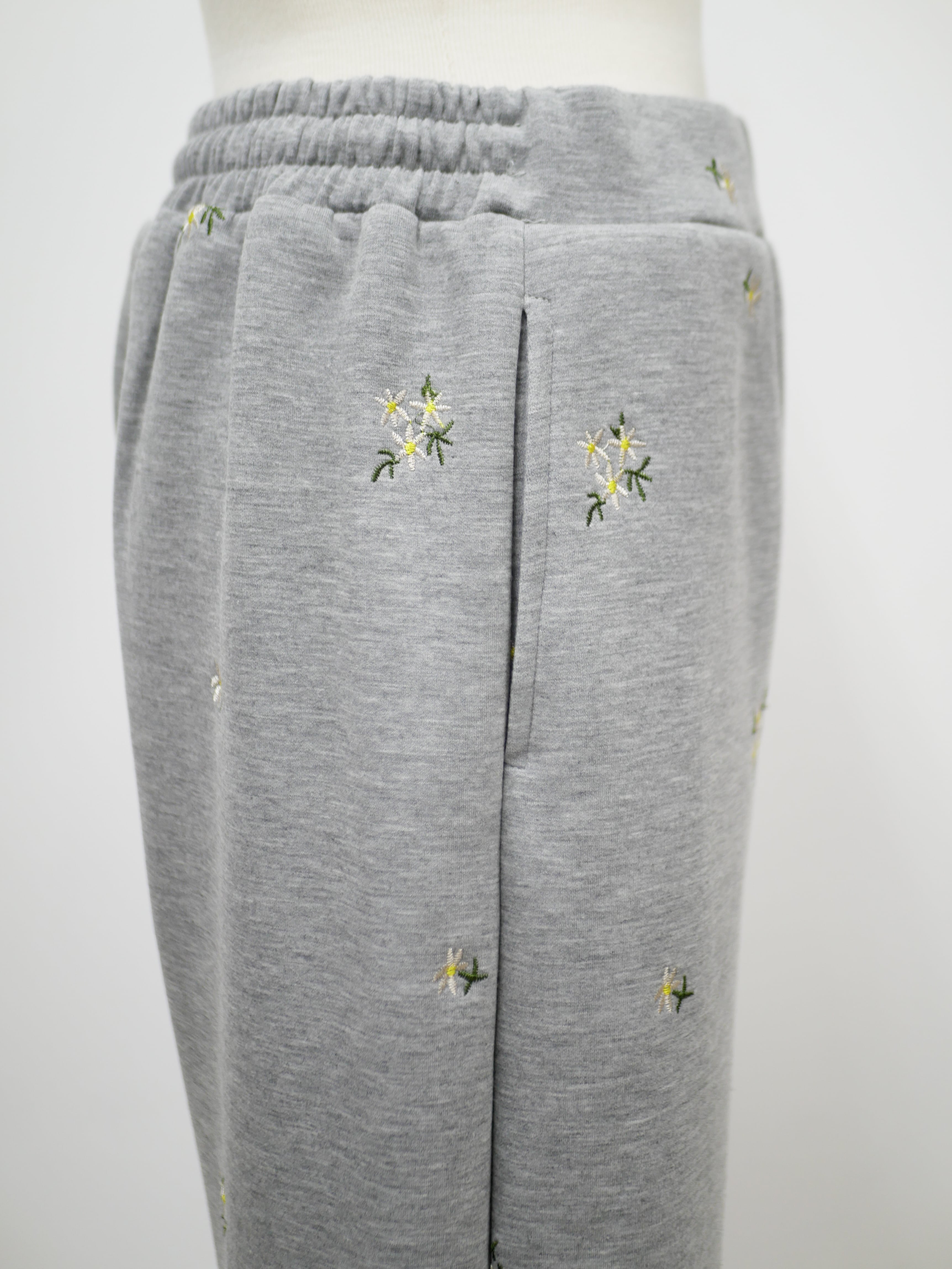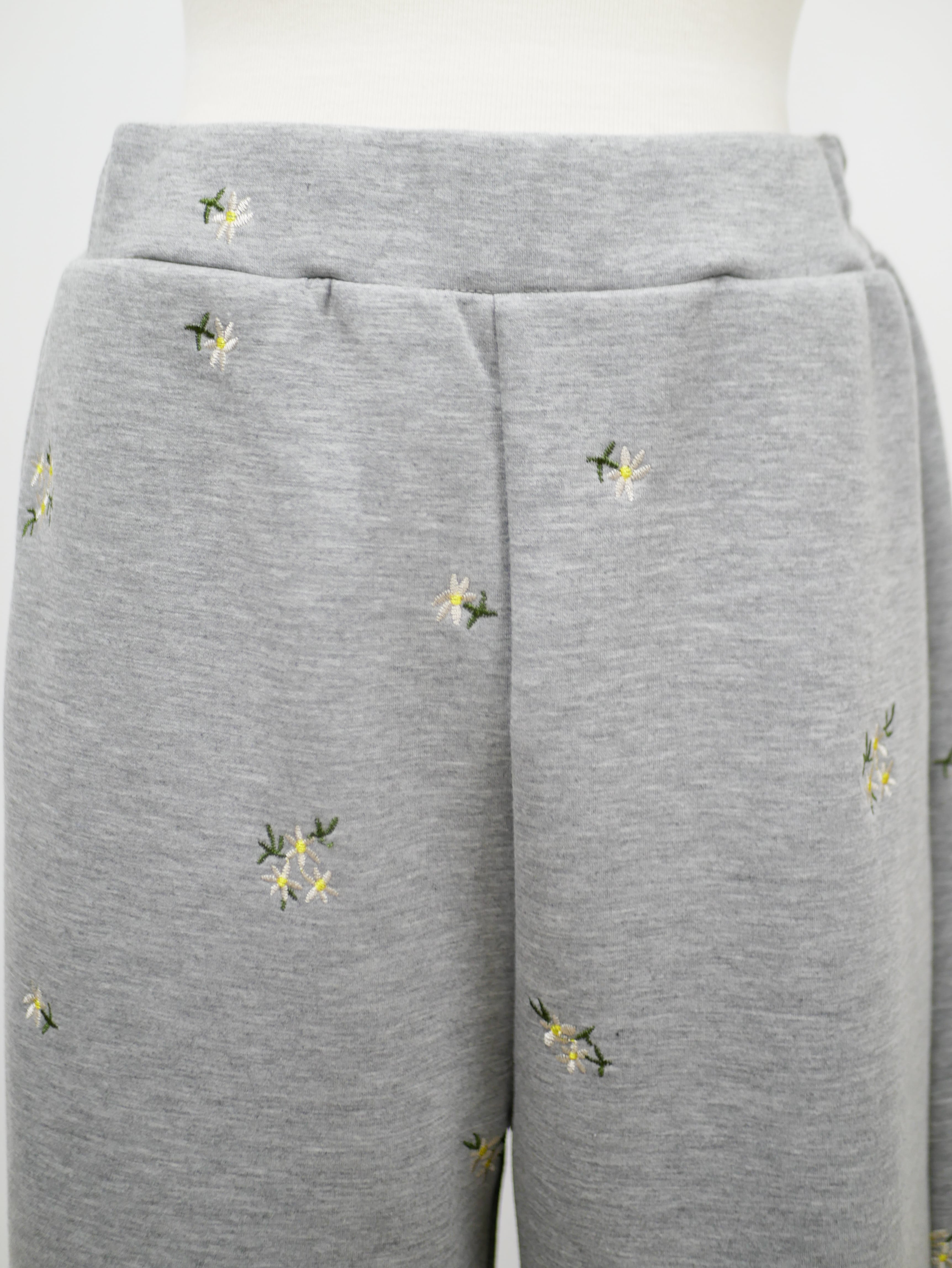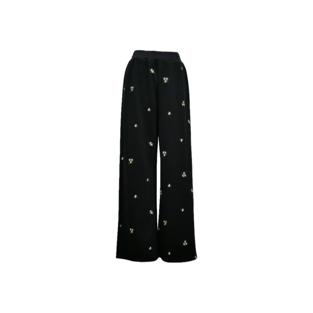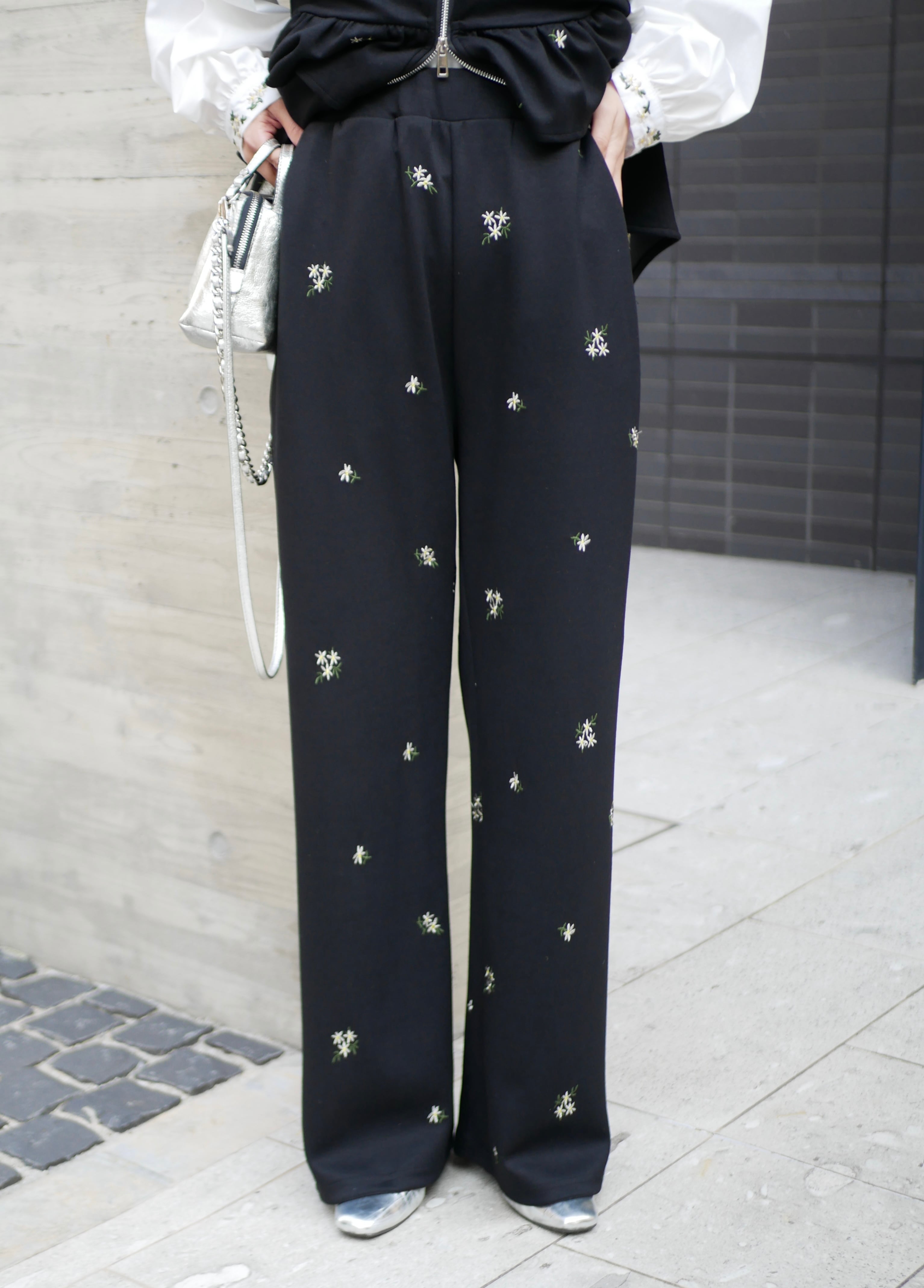 Bloom flower embroidery straight pants