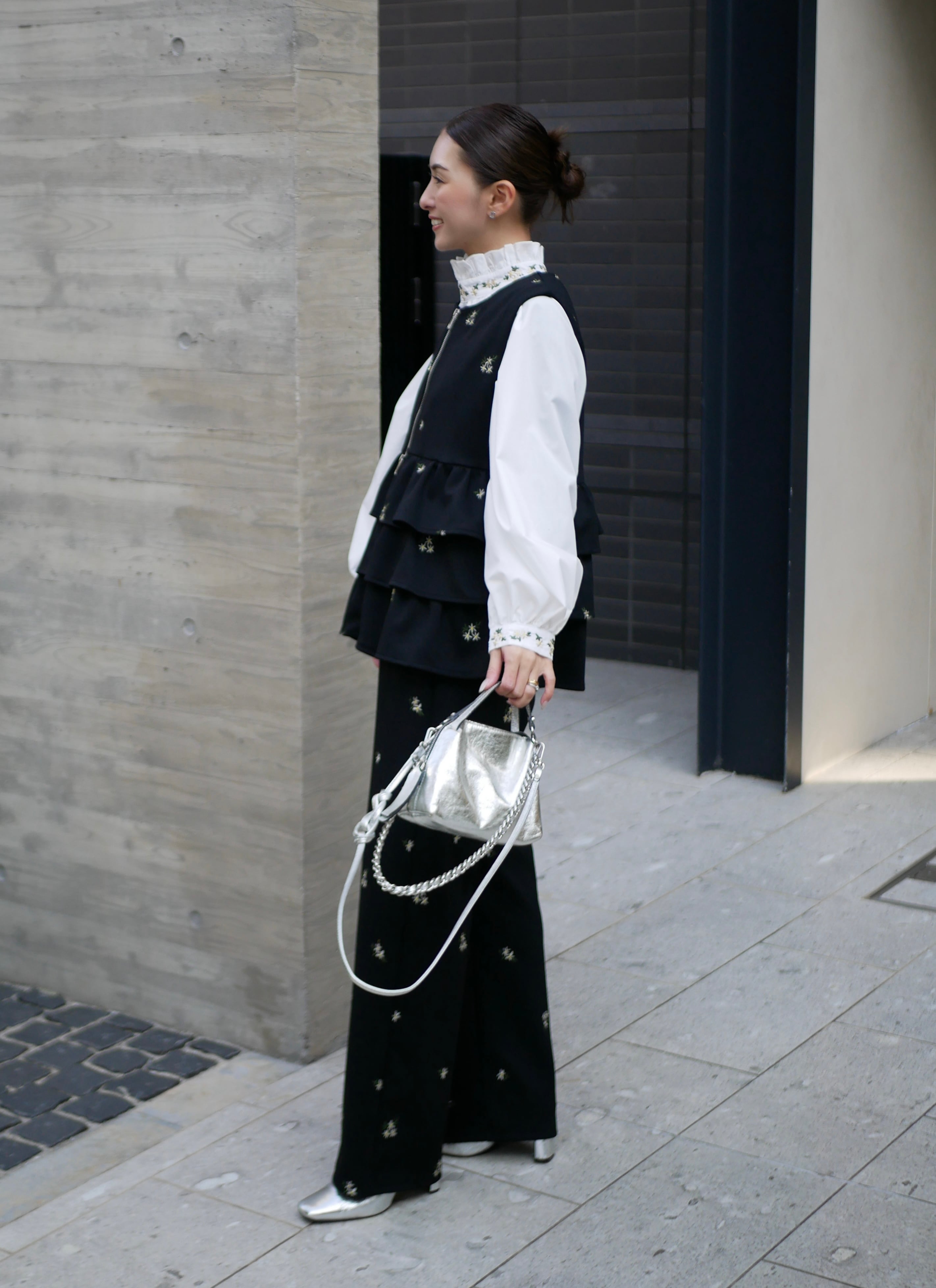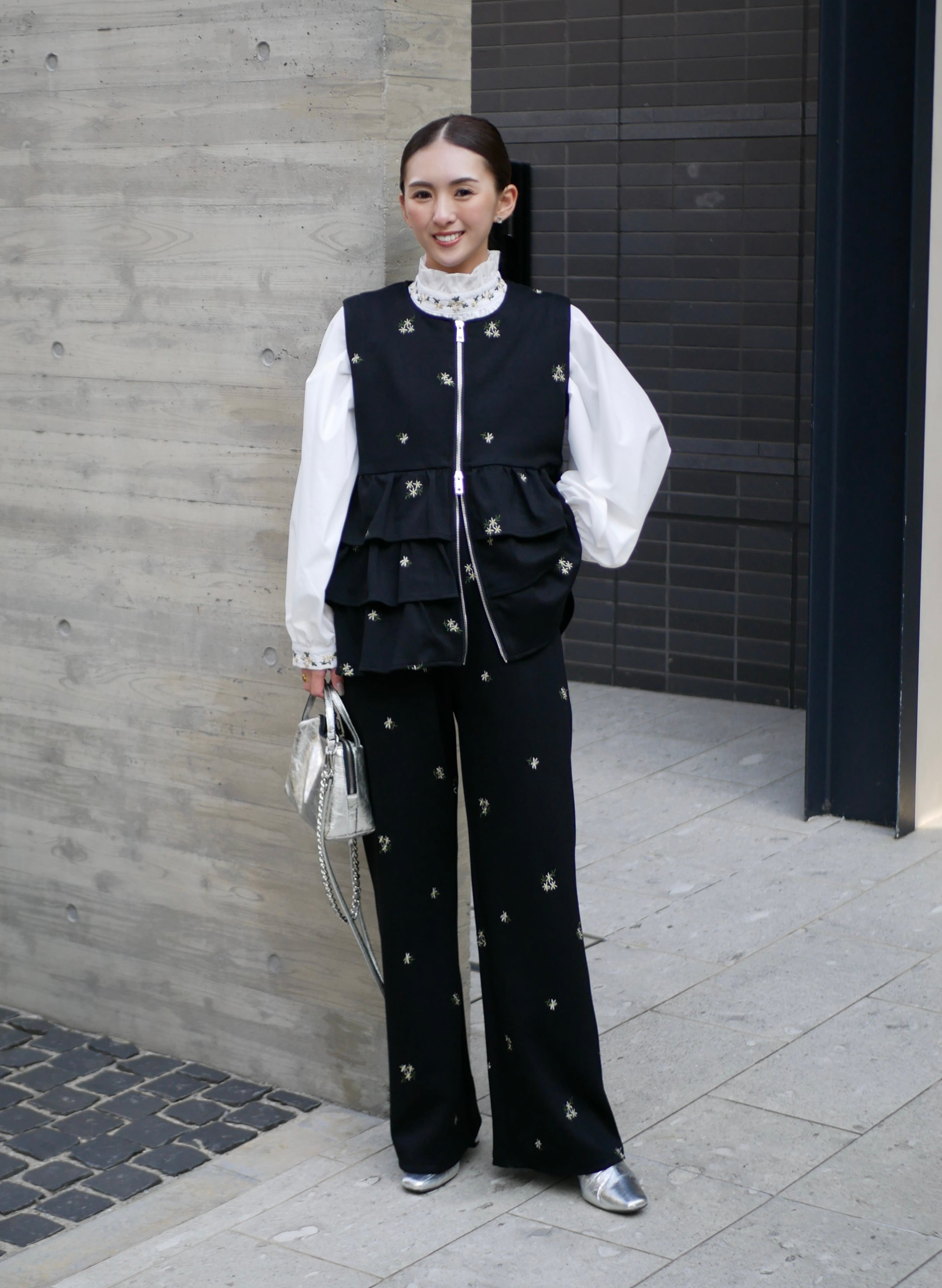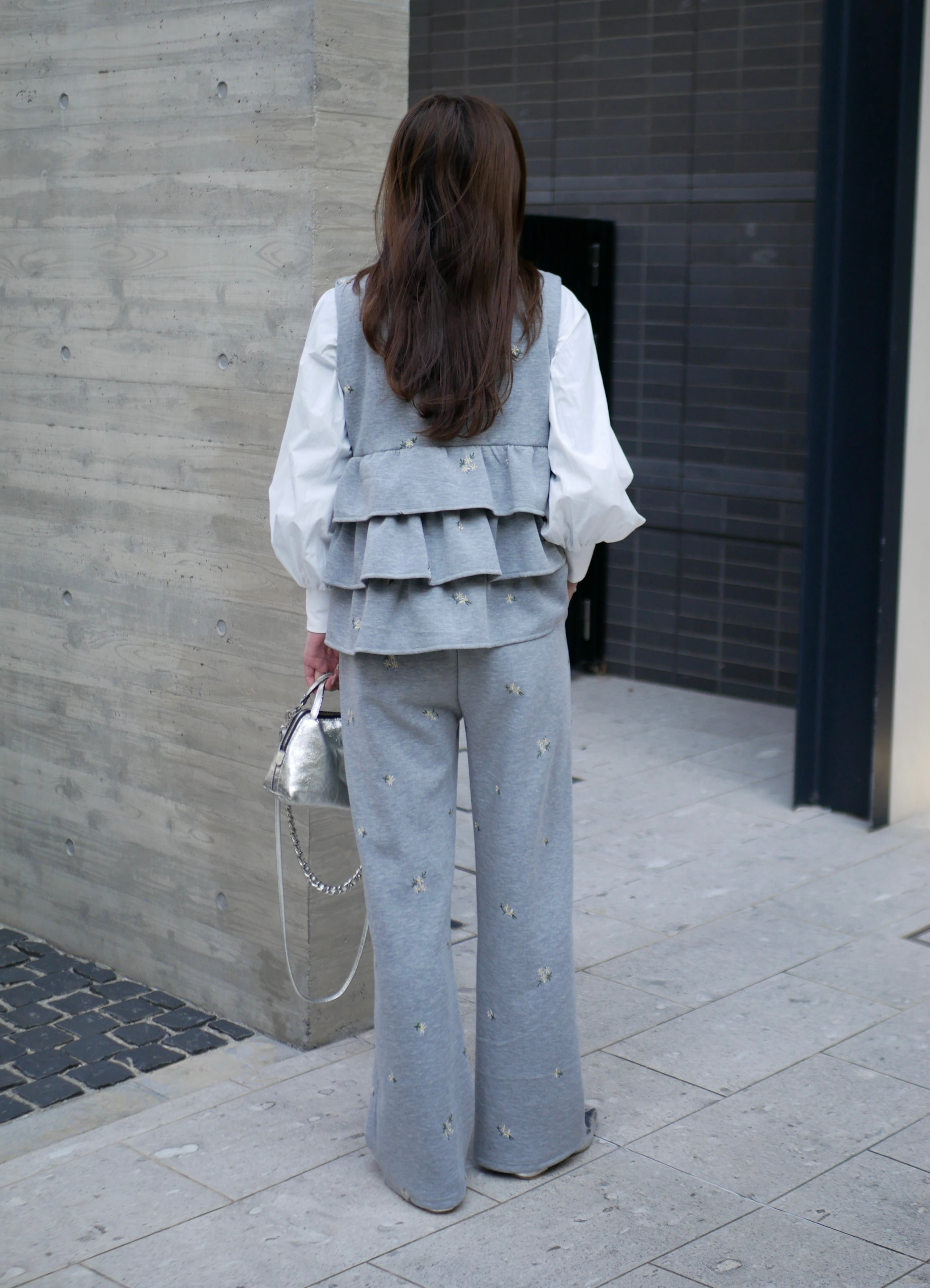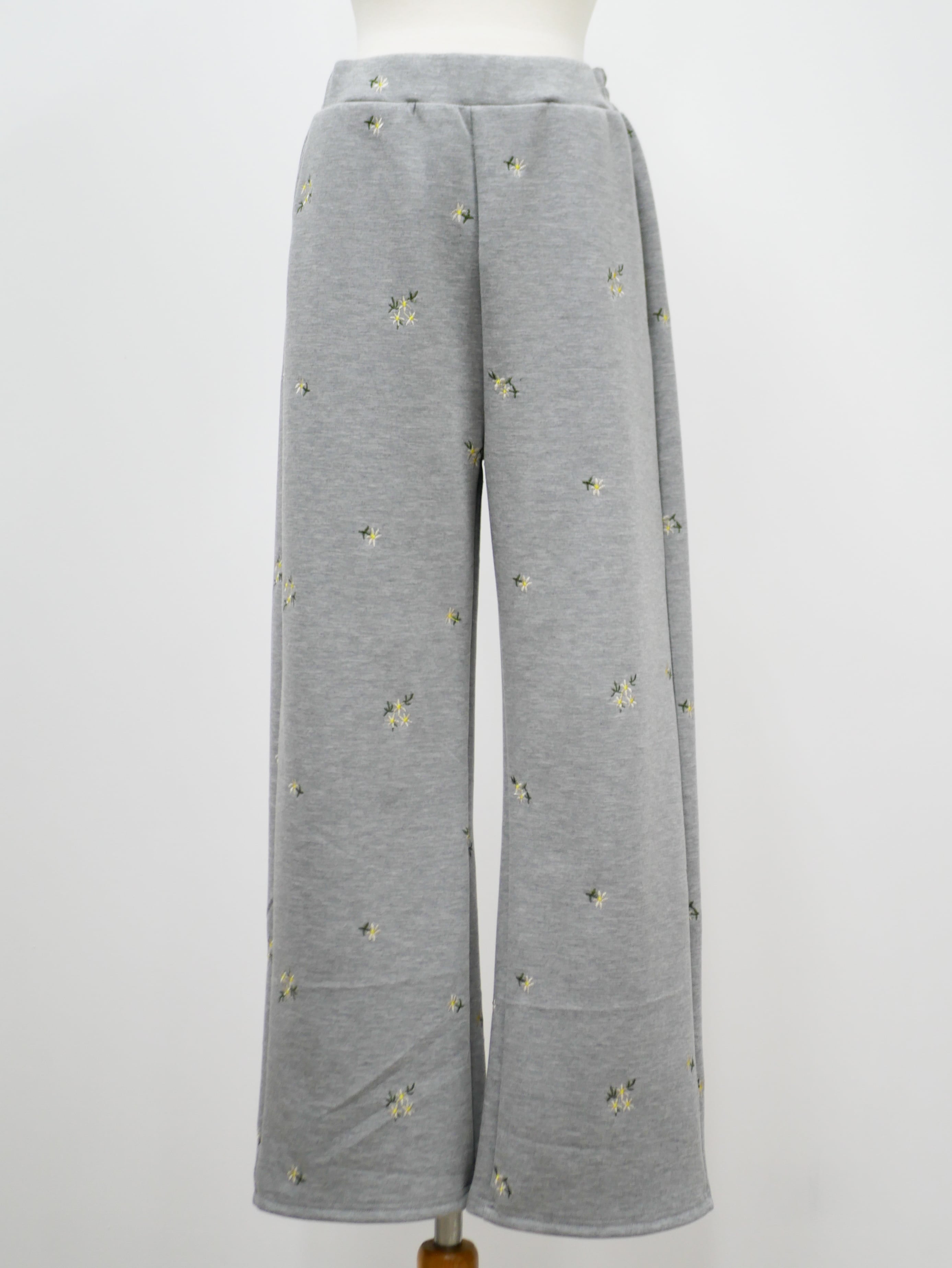 Bloom flower embroidery straight pants