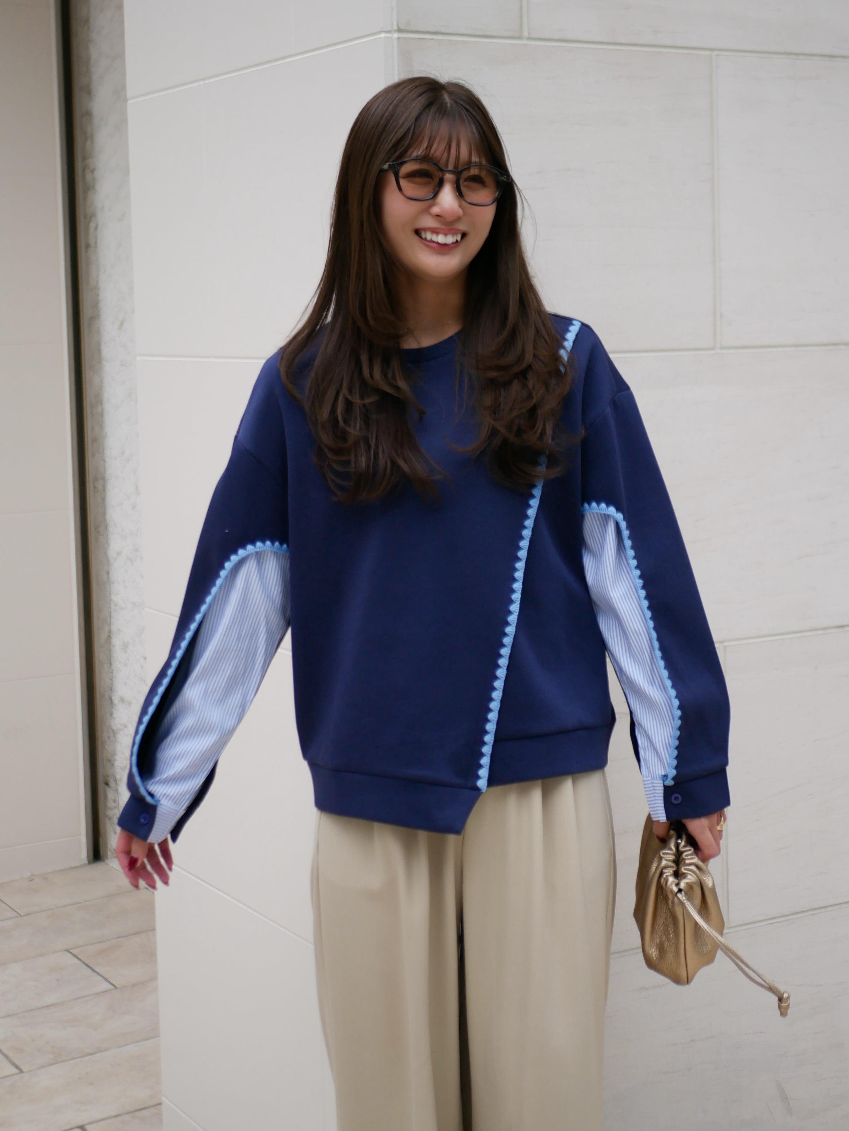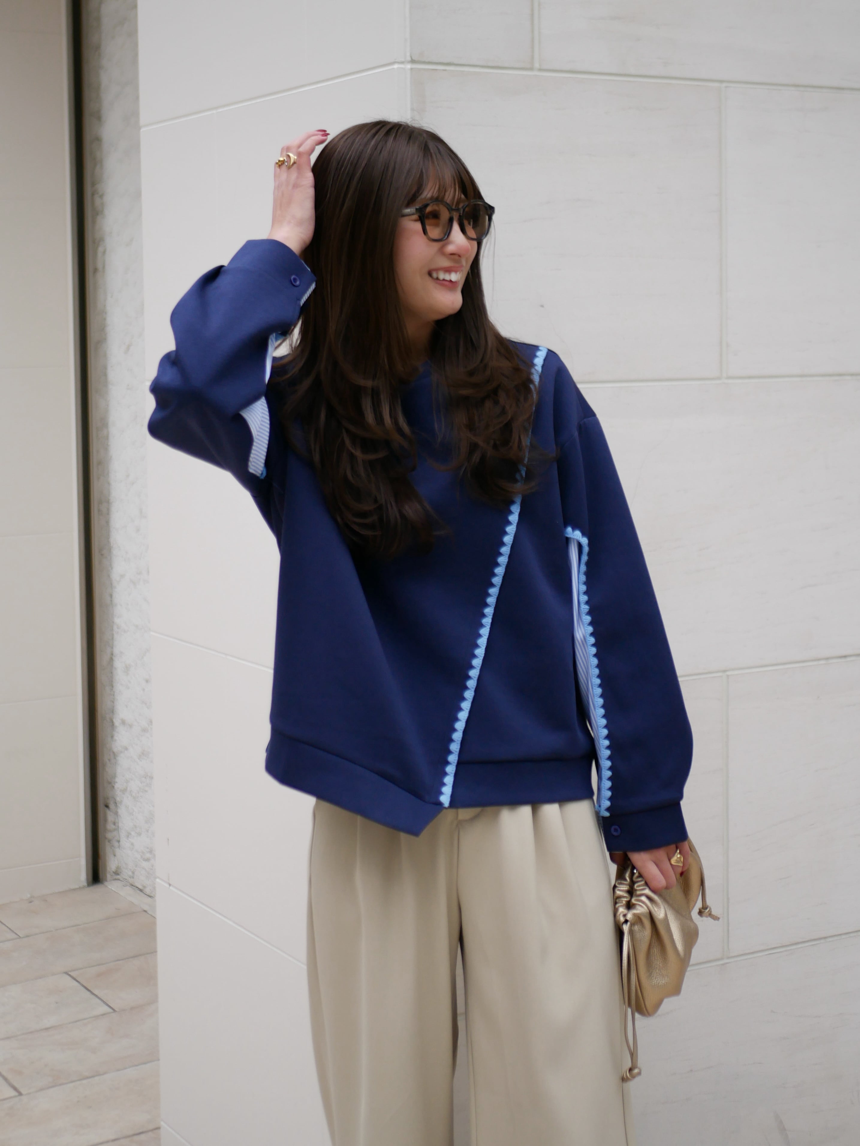Scallop line layered sweat tops