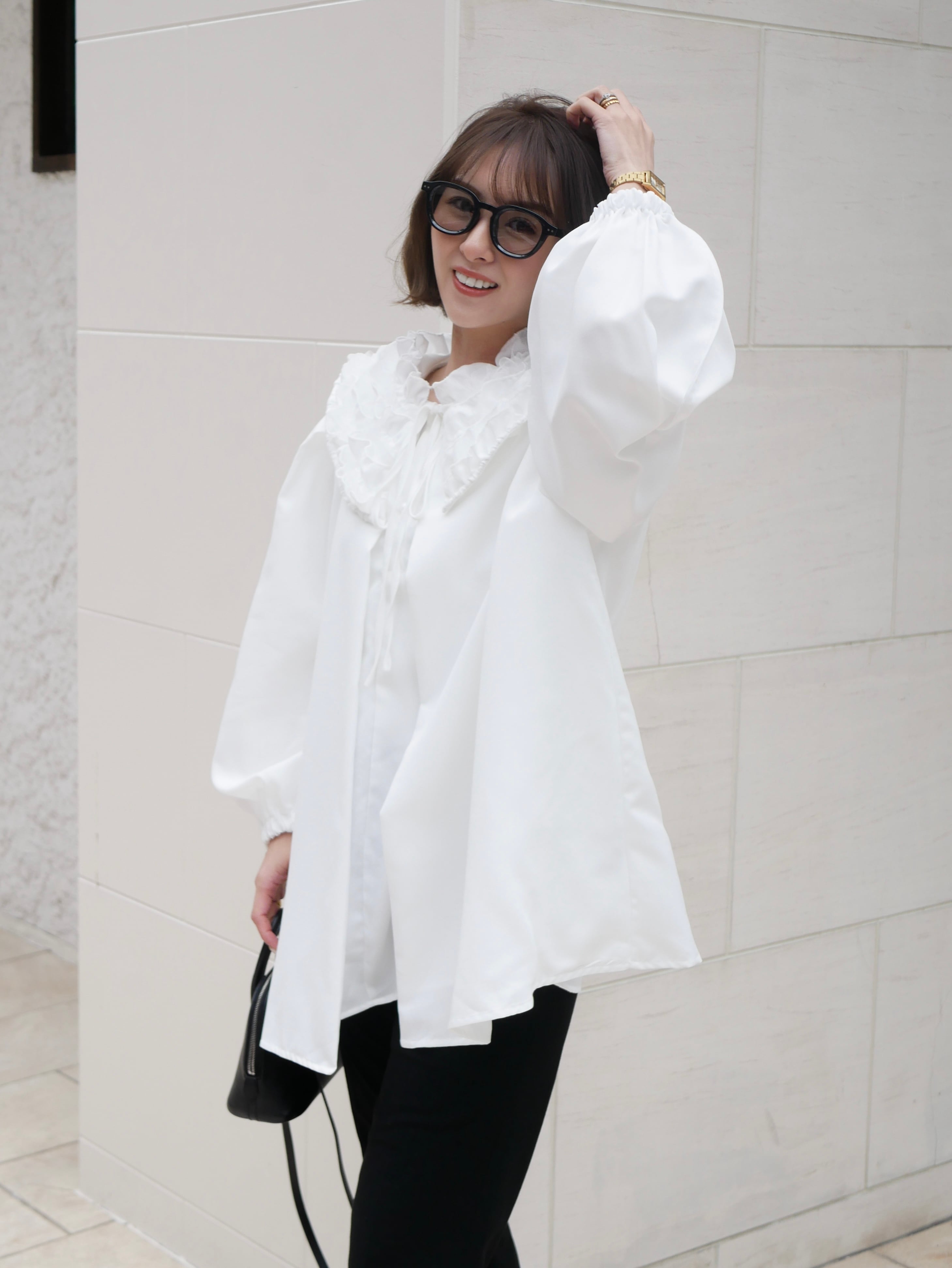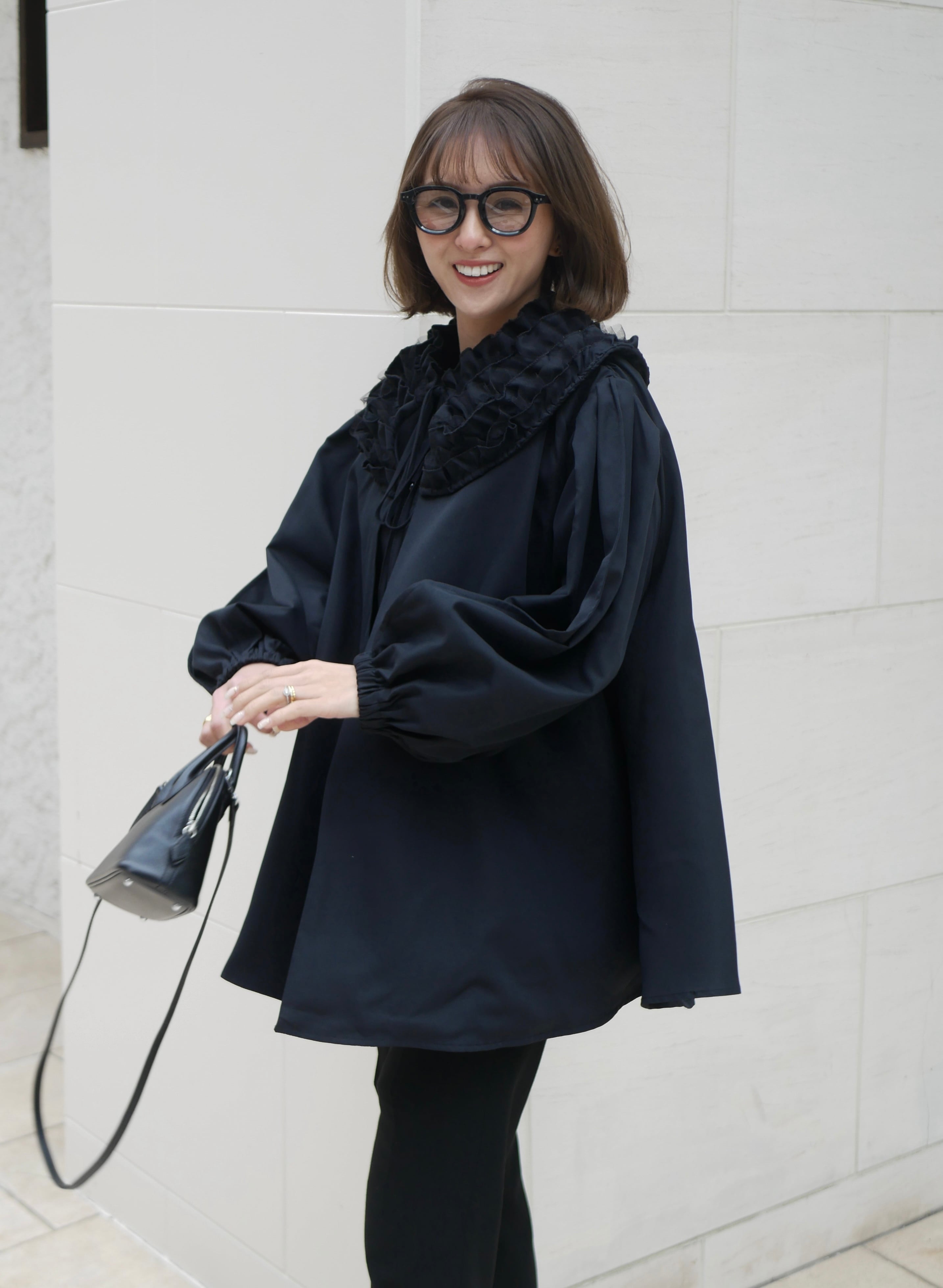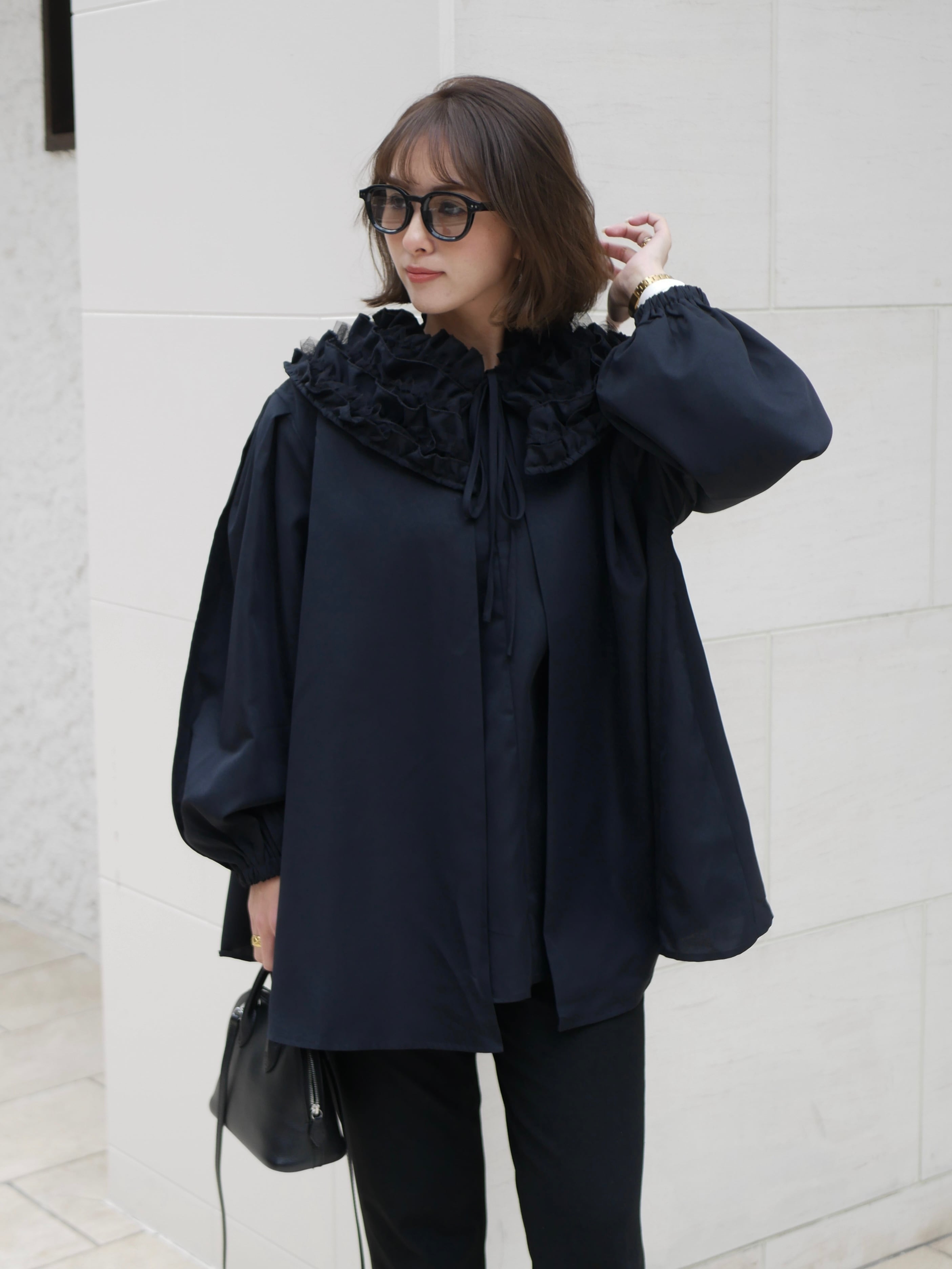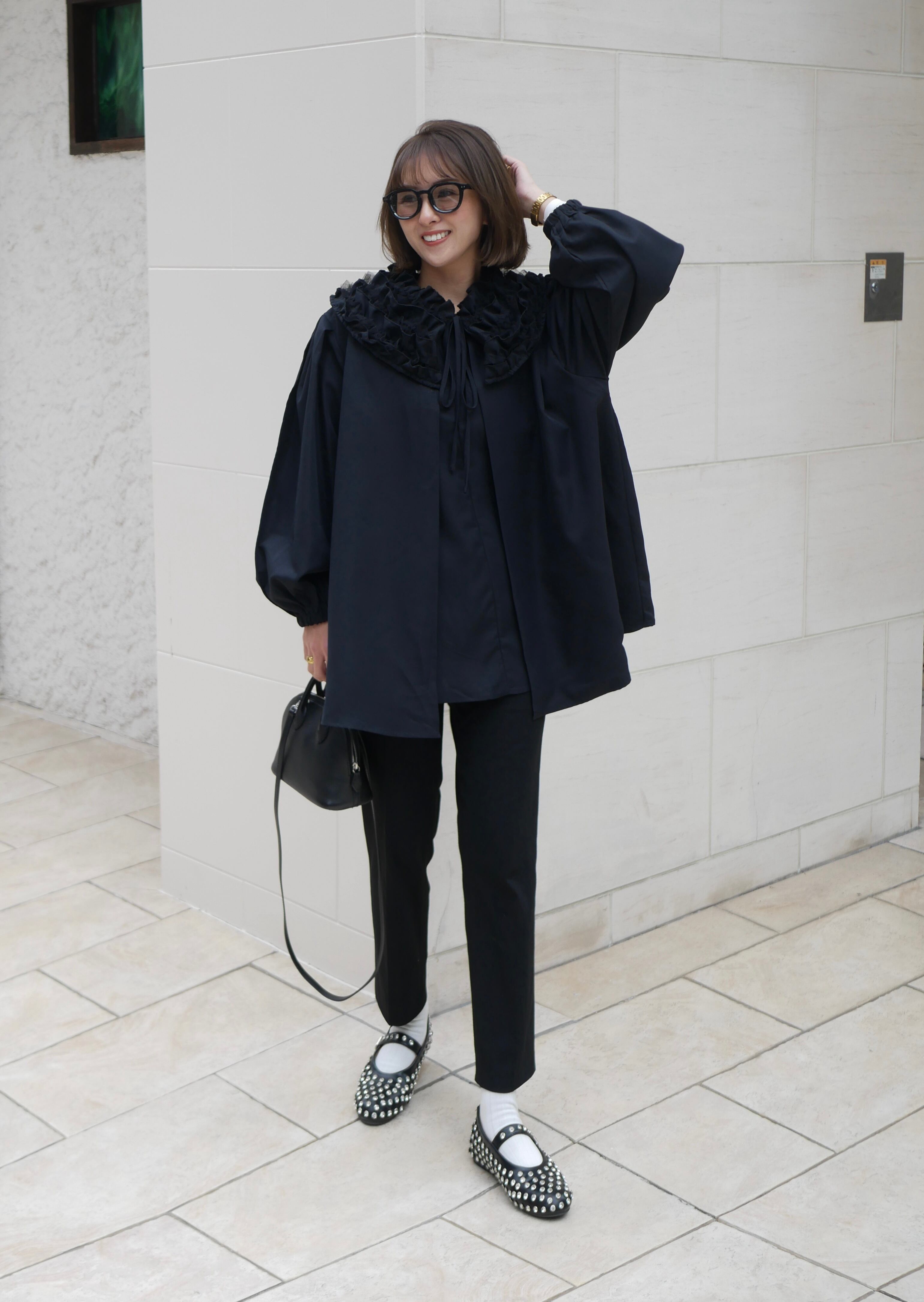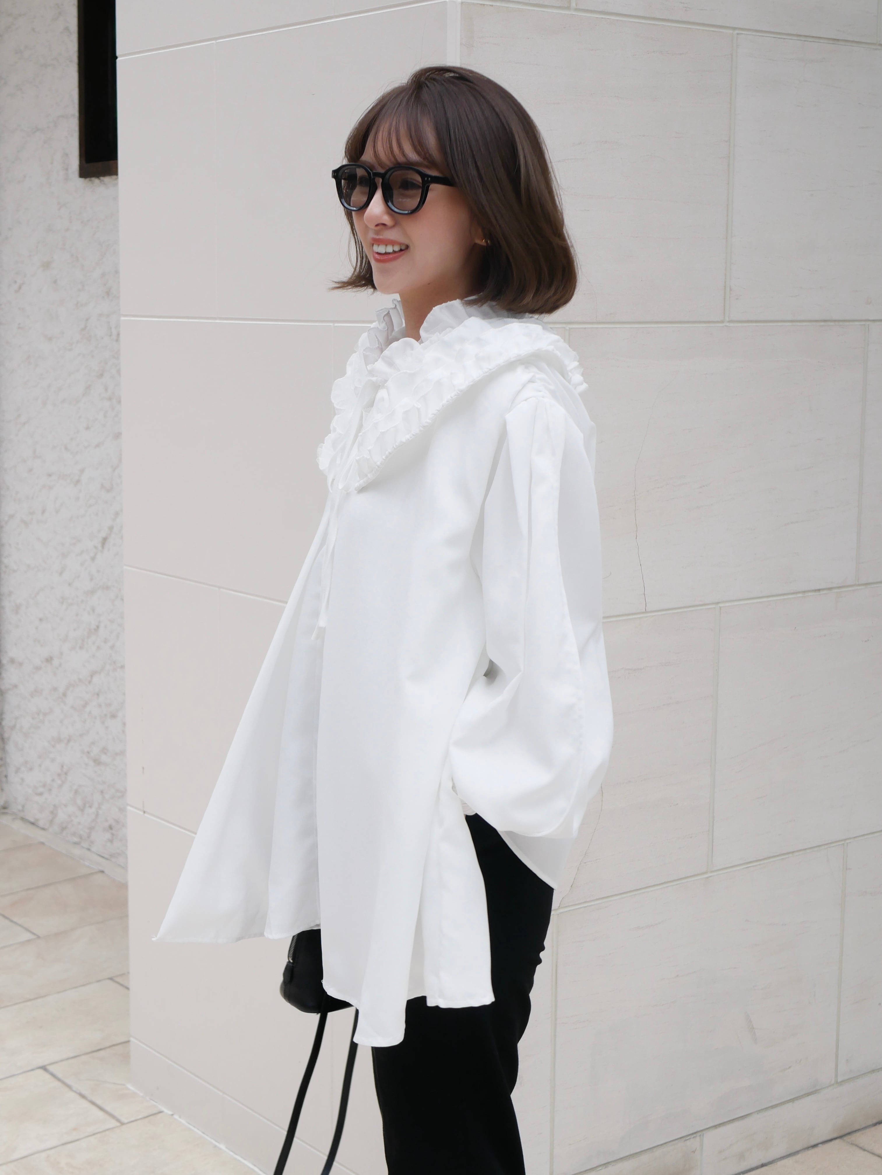 【再販】Volume tulle frill neck blouse