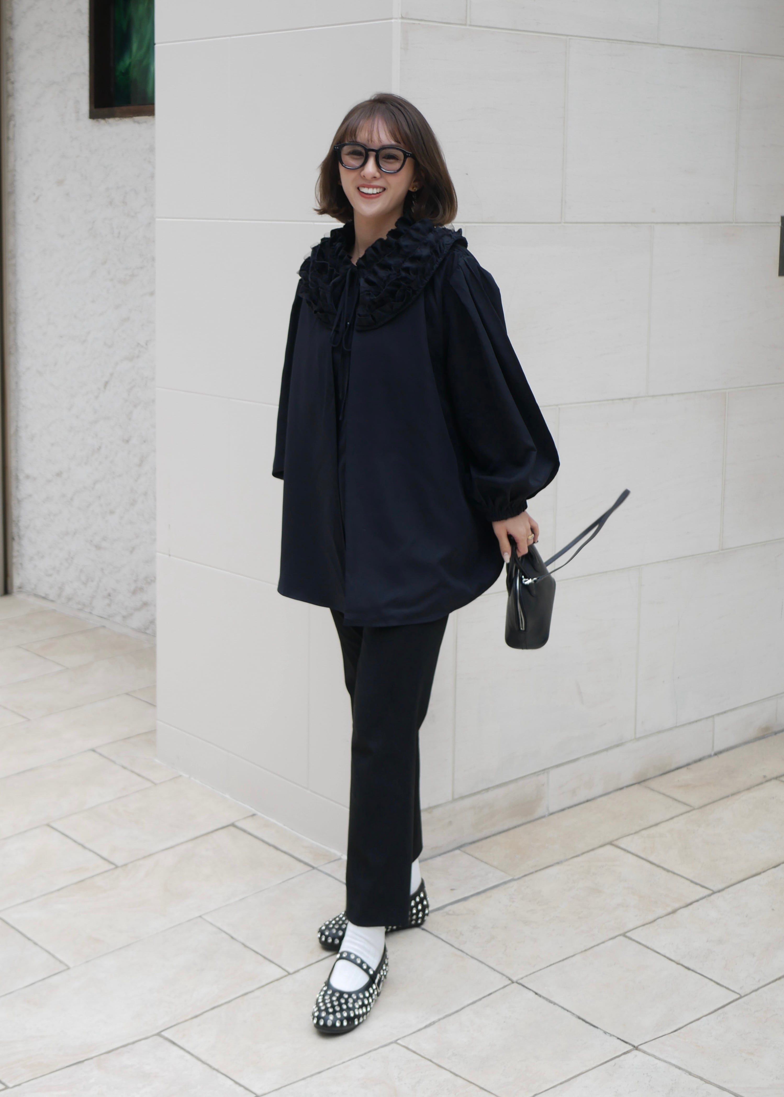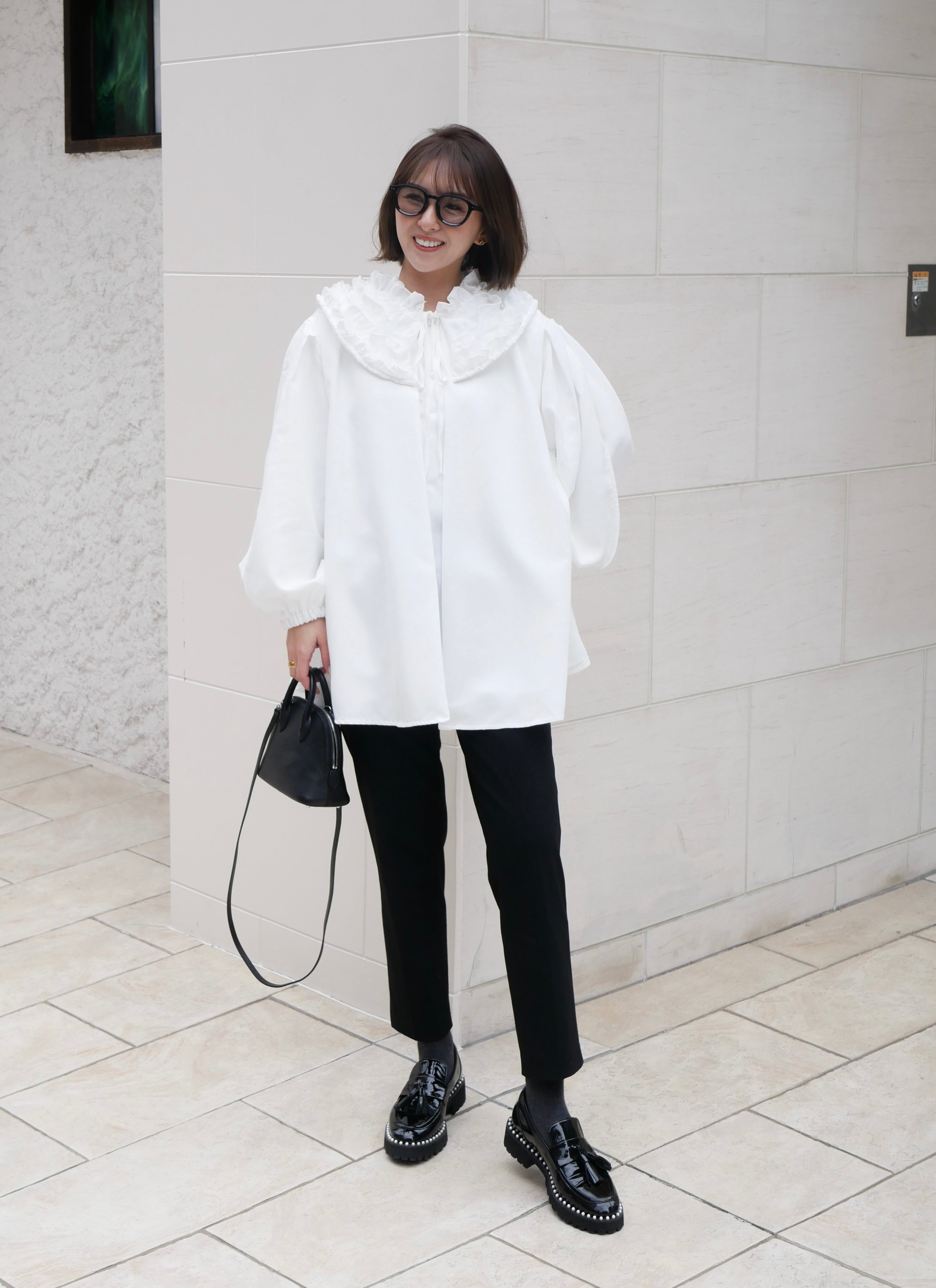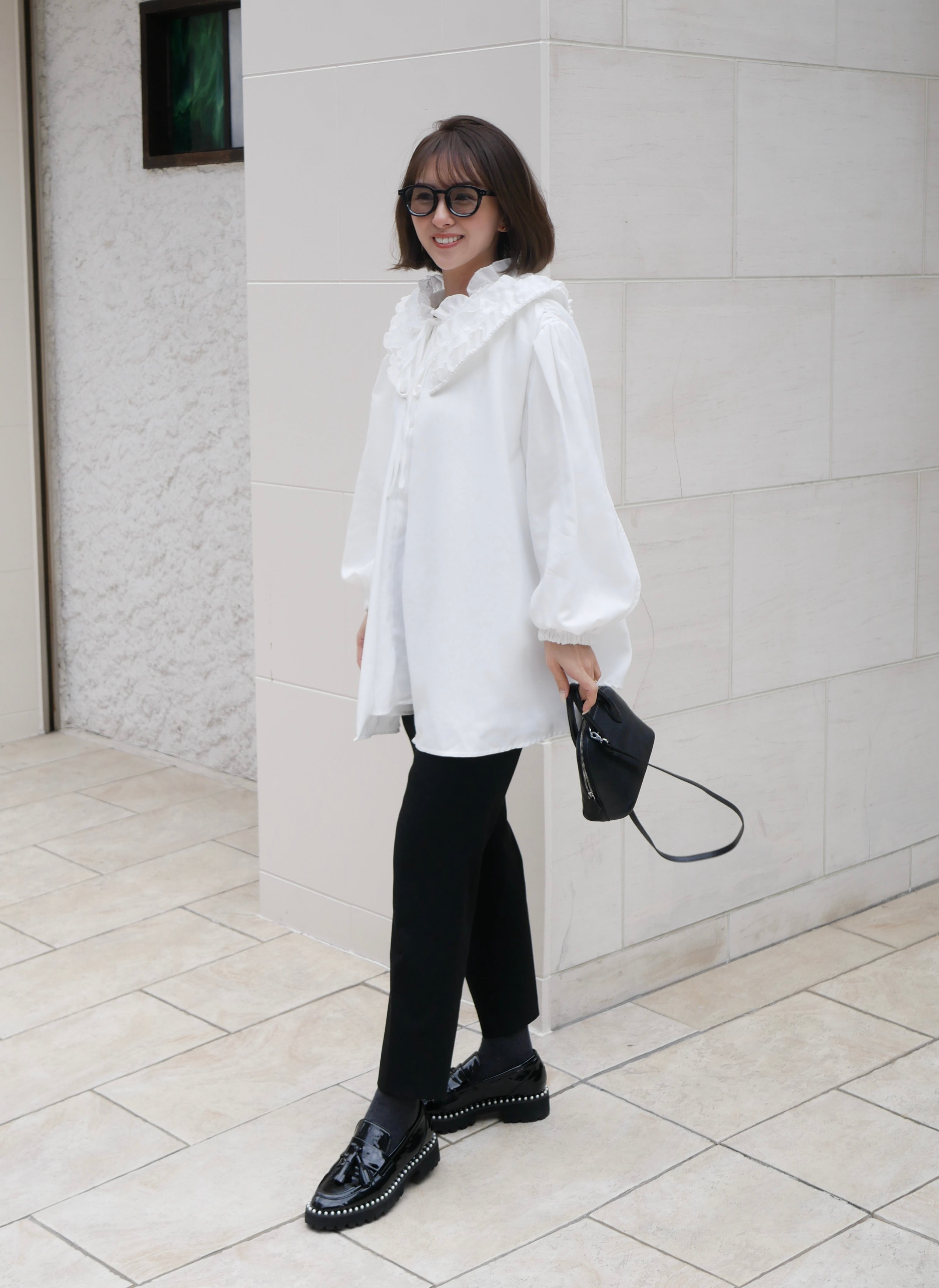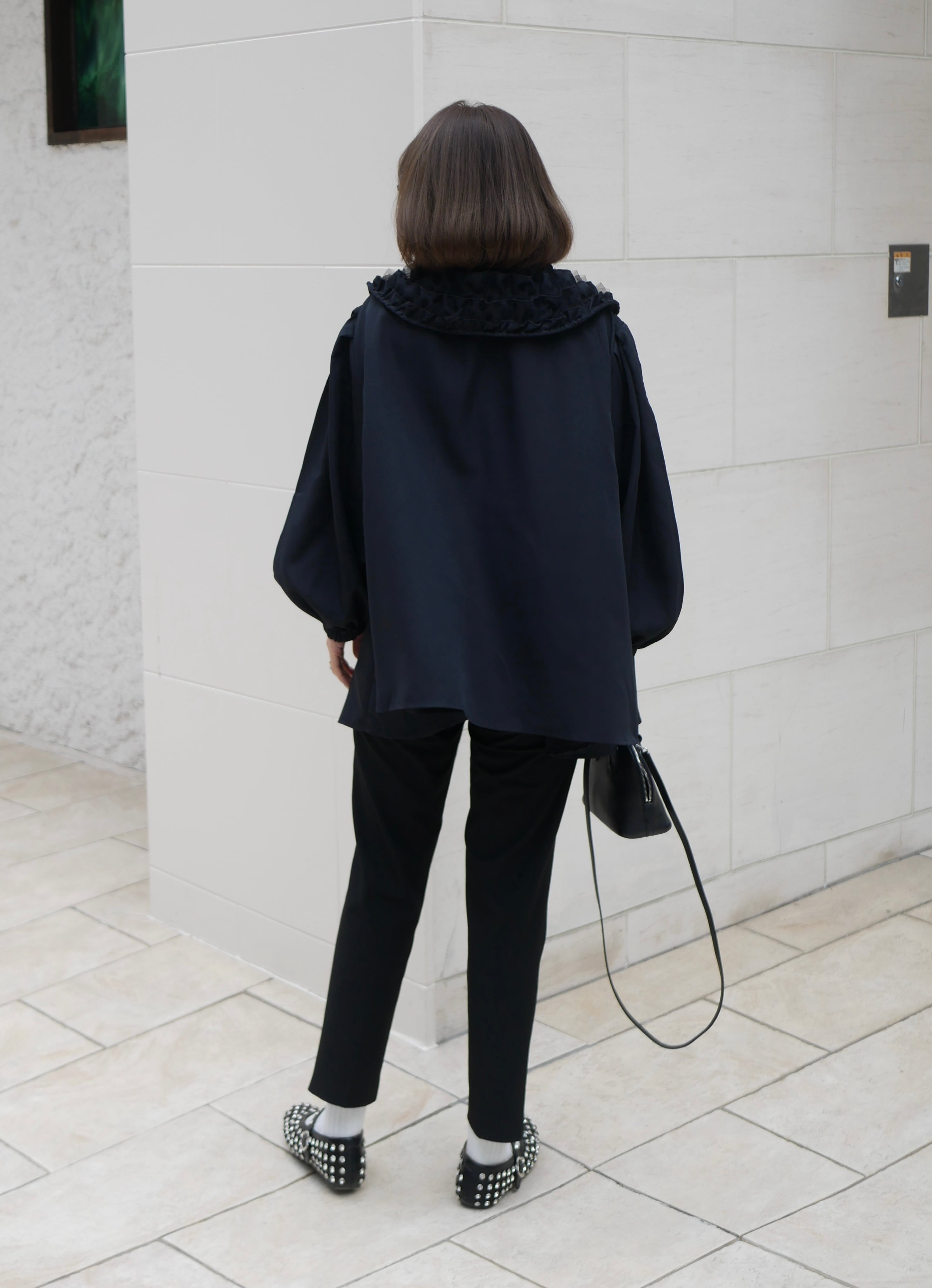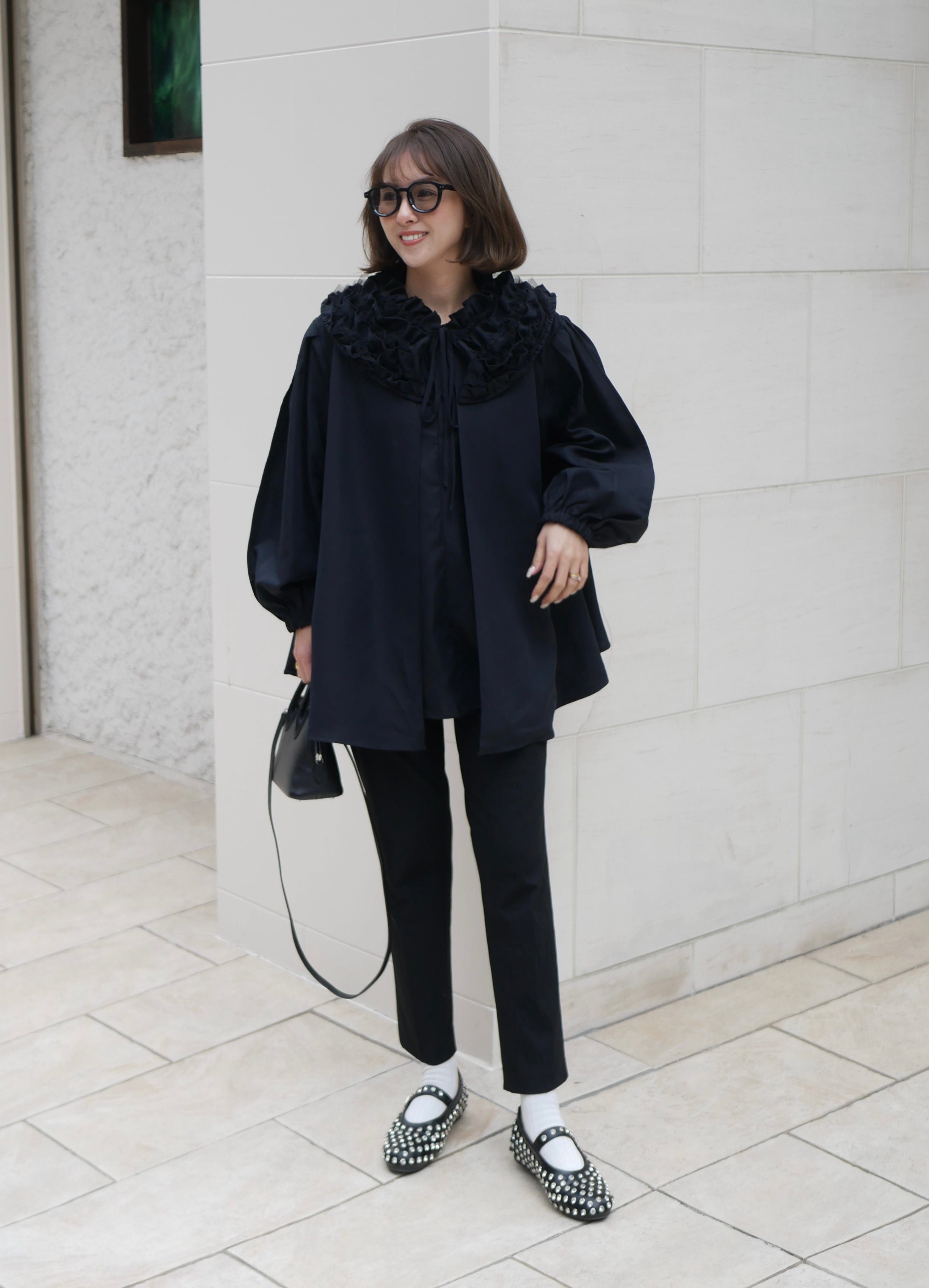 【再販】Volume tulle frill neck blouse