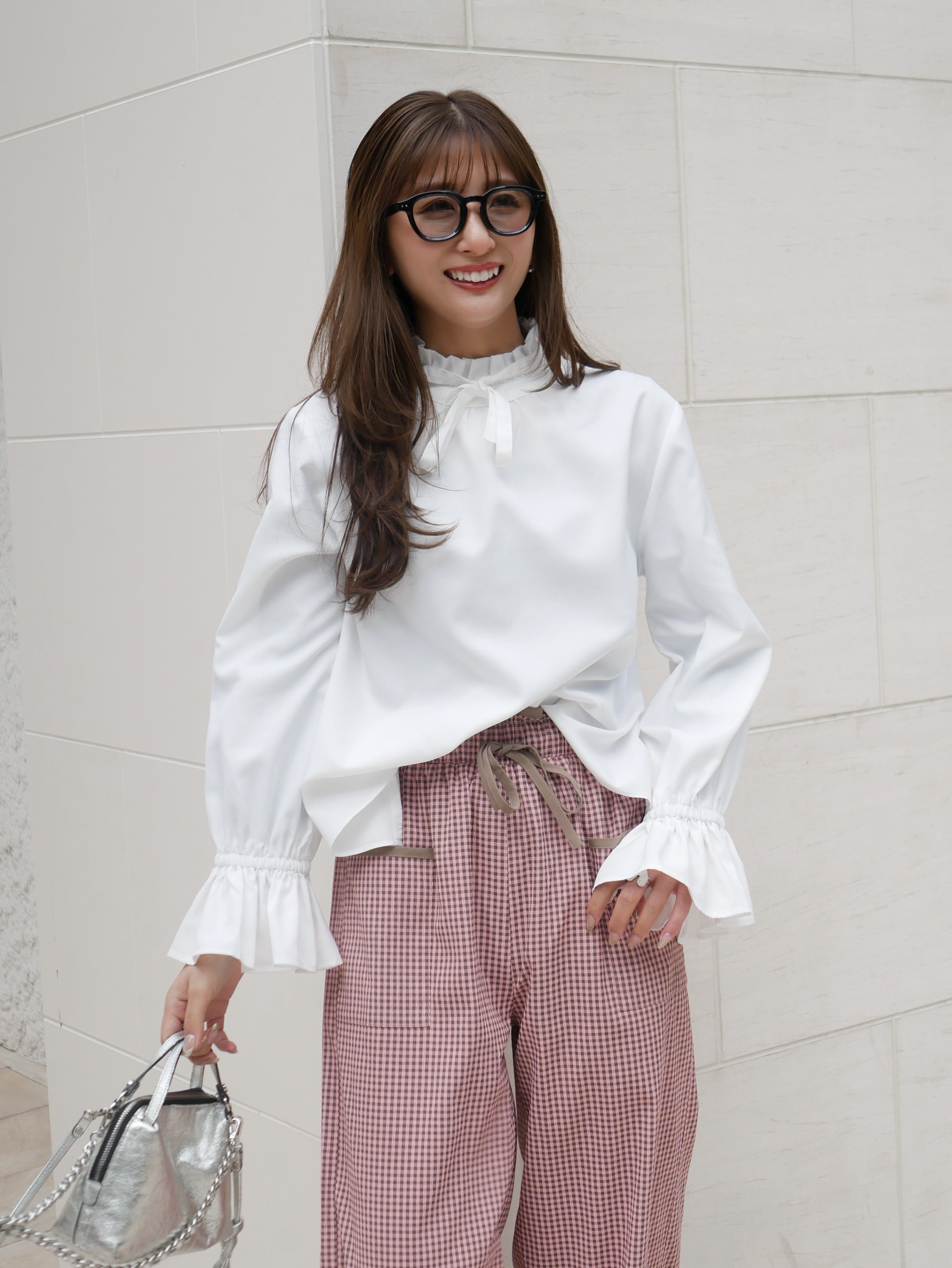 Neck ribbon design blouse