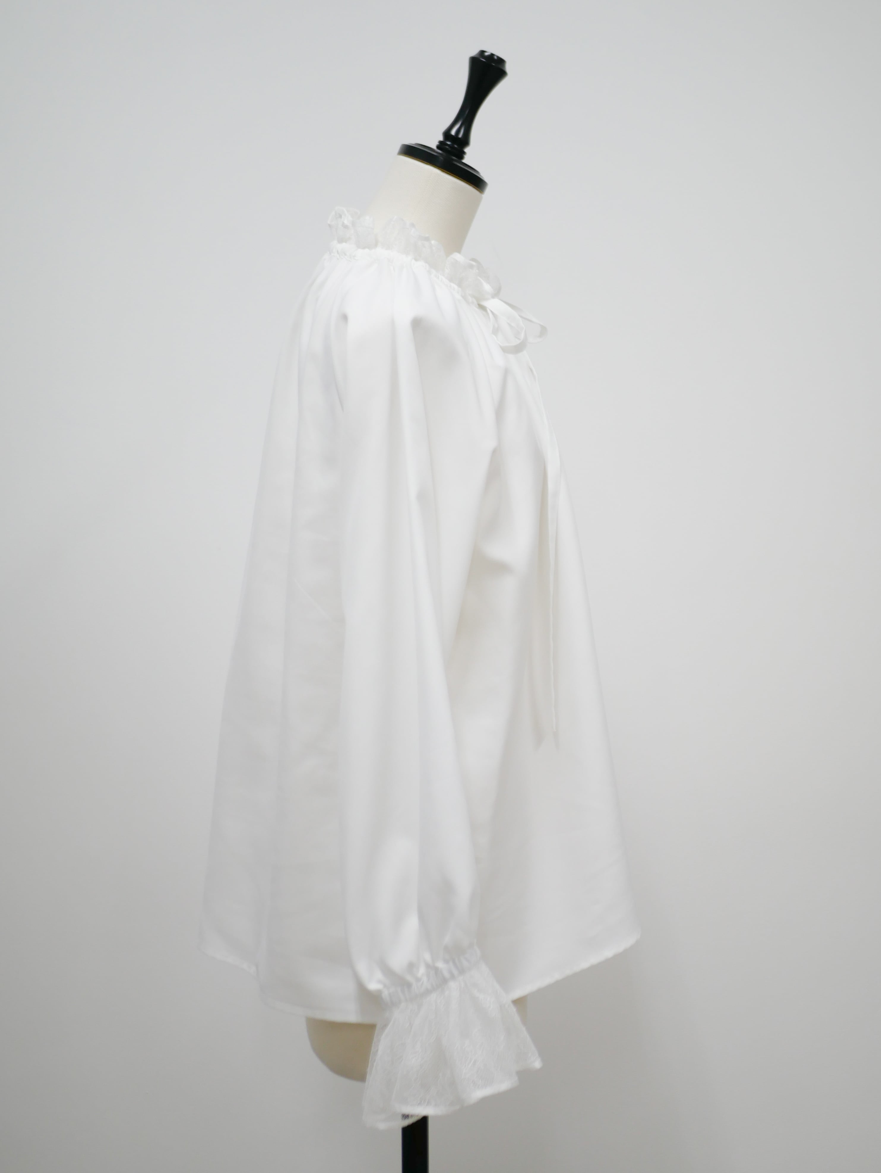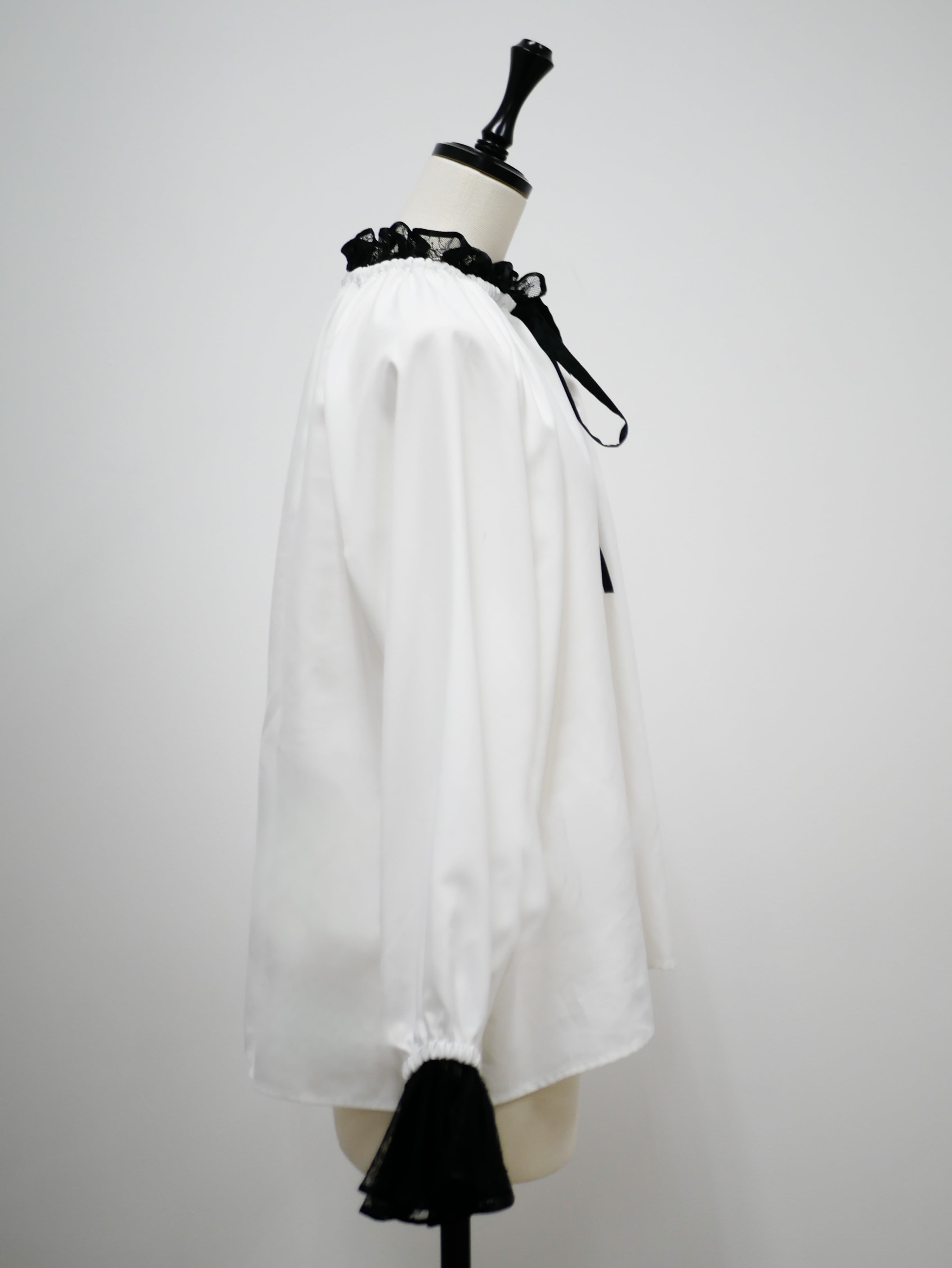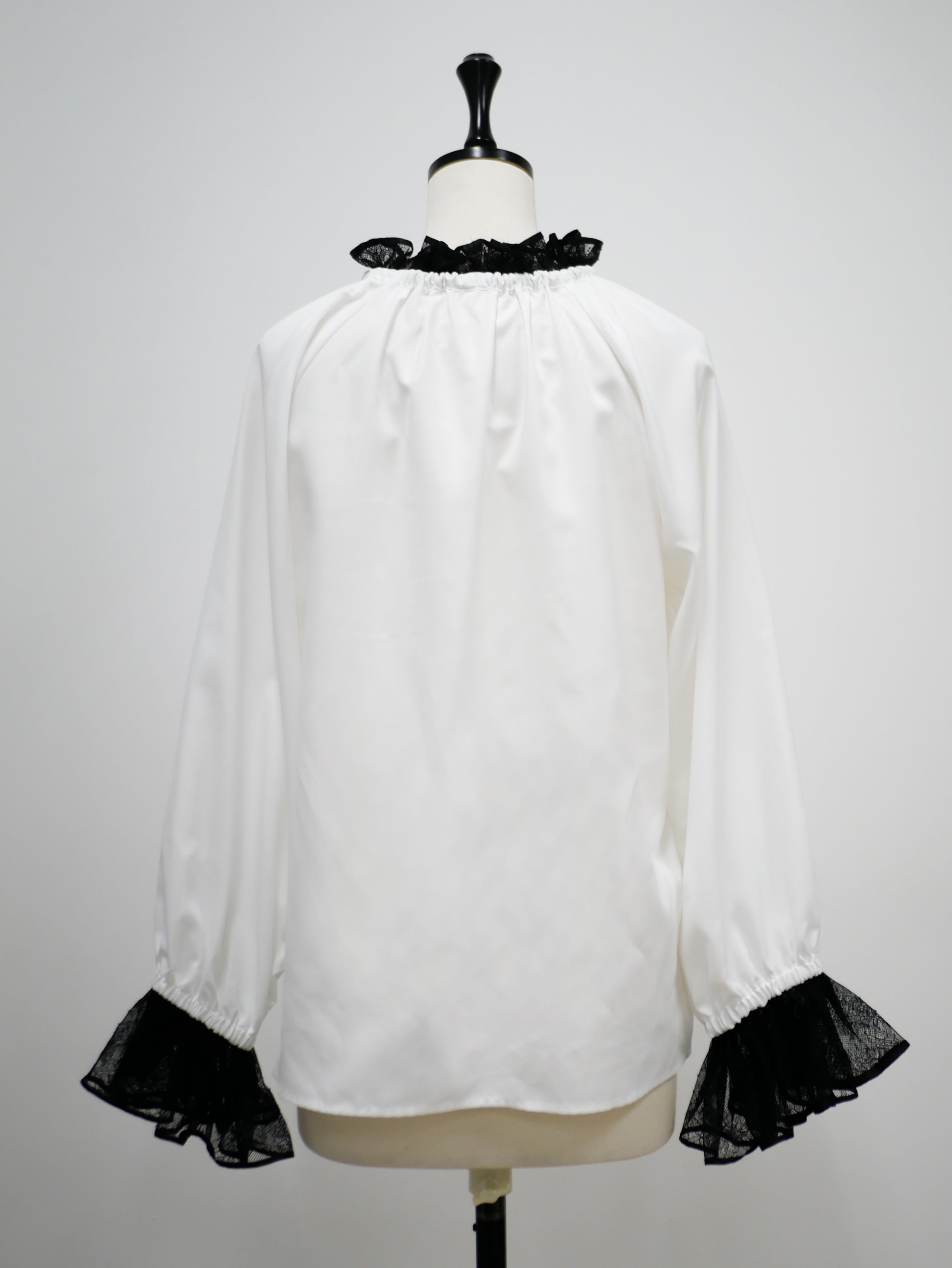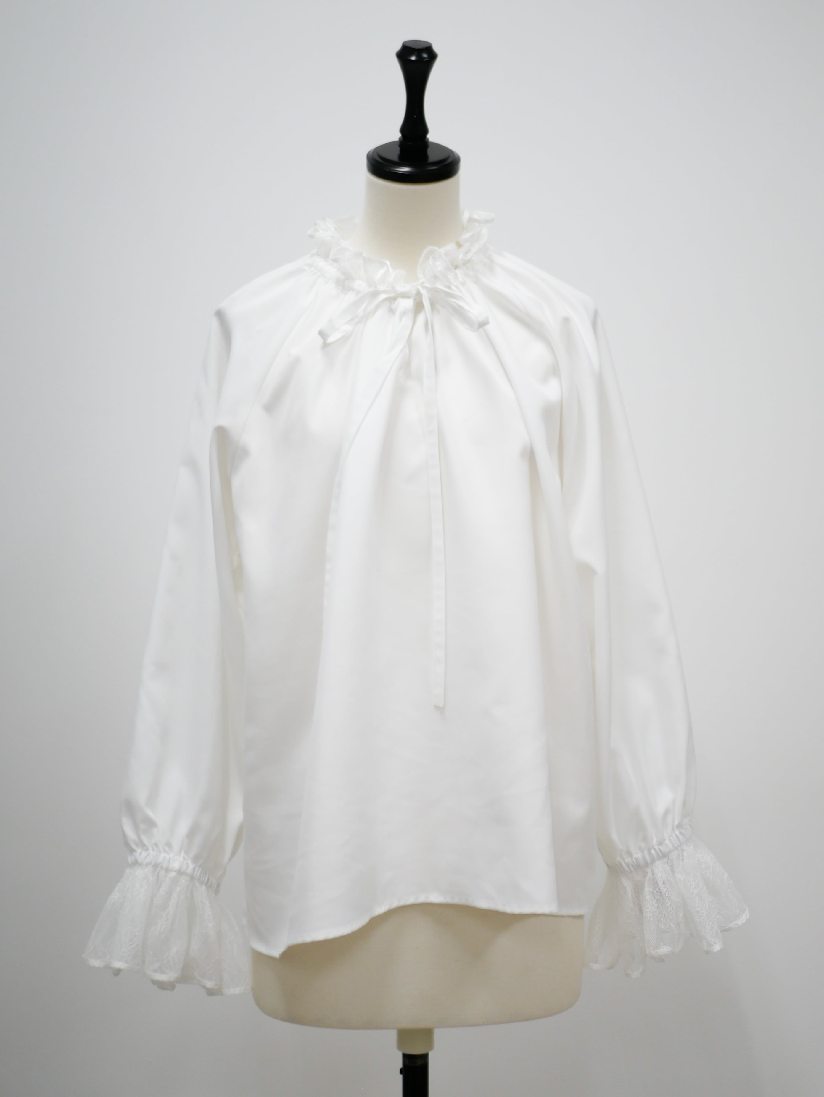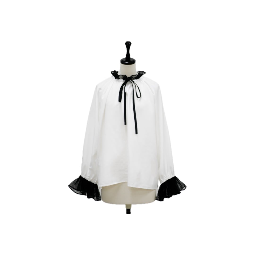 Lace neck frill ribbon blouse