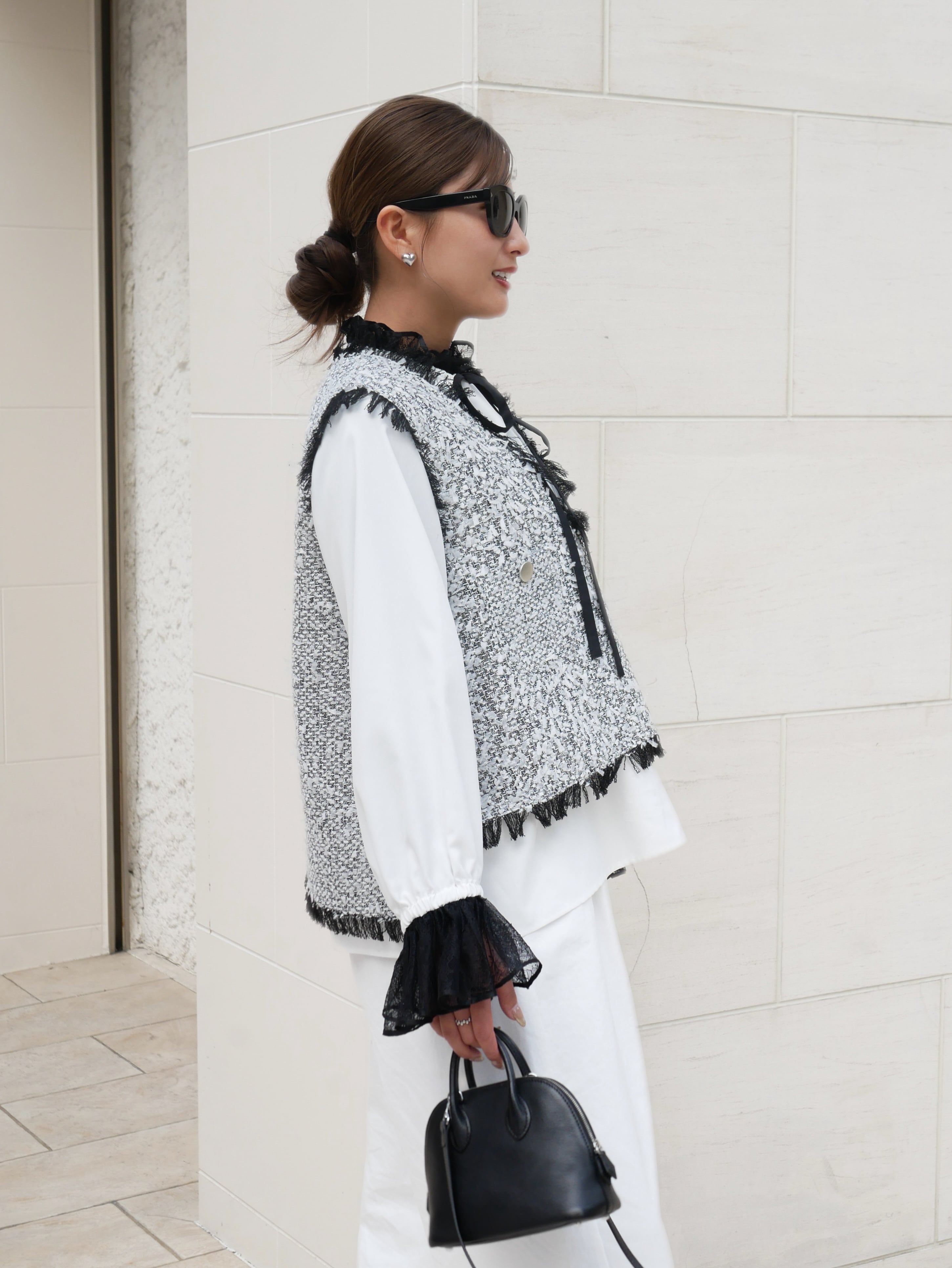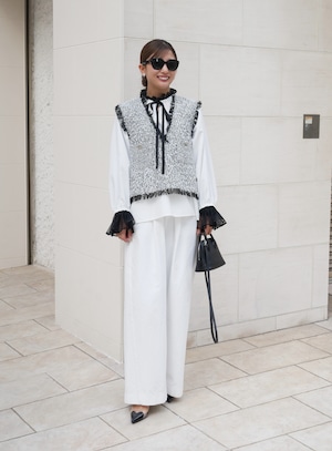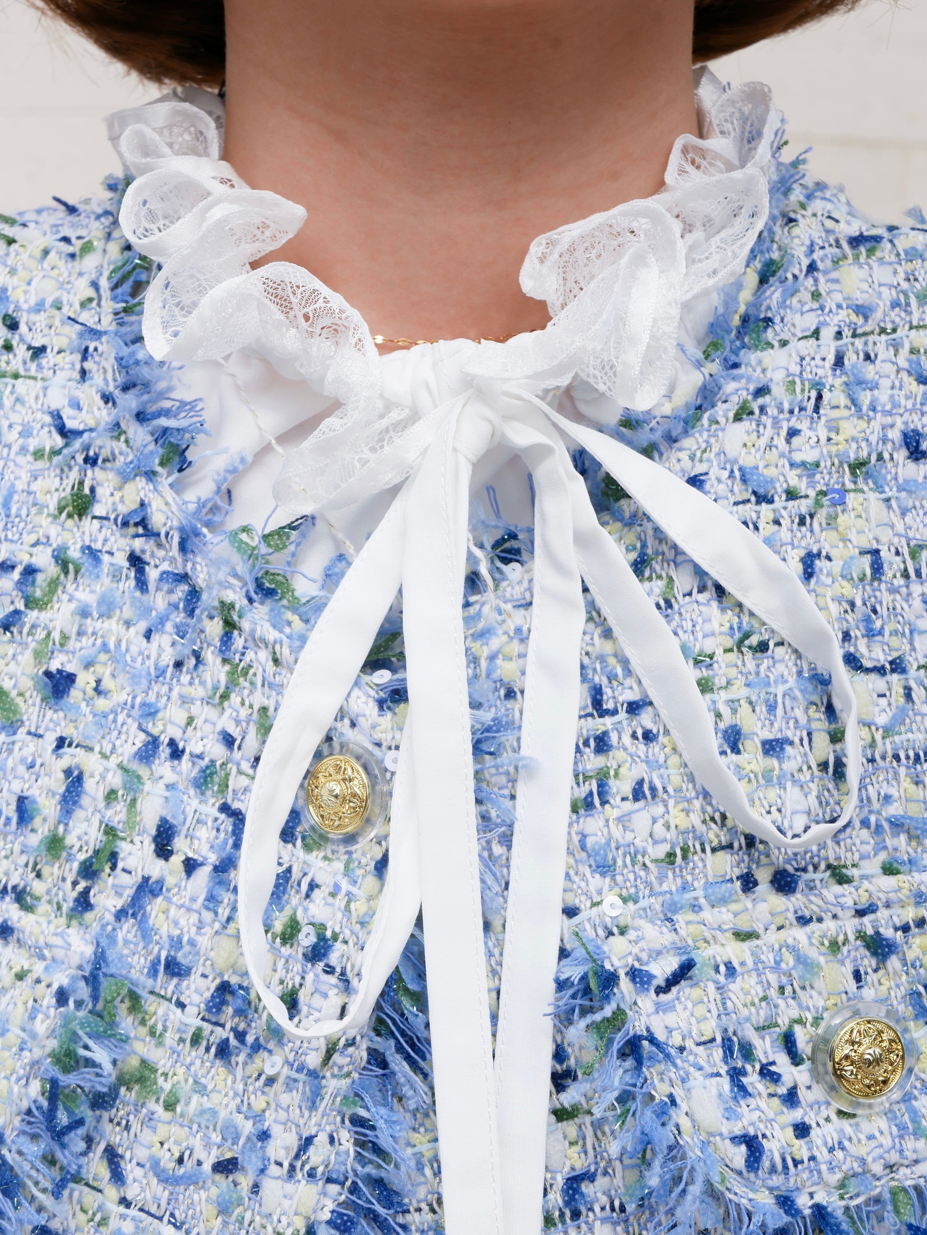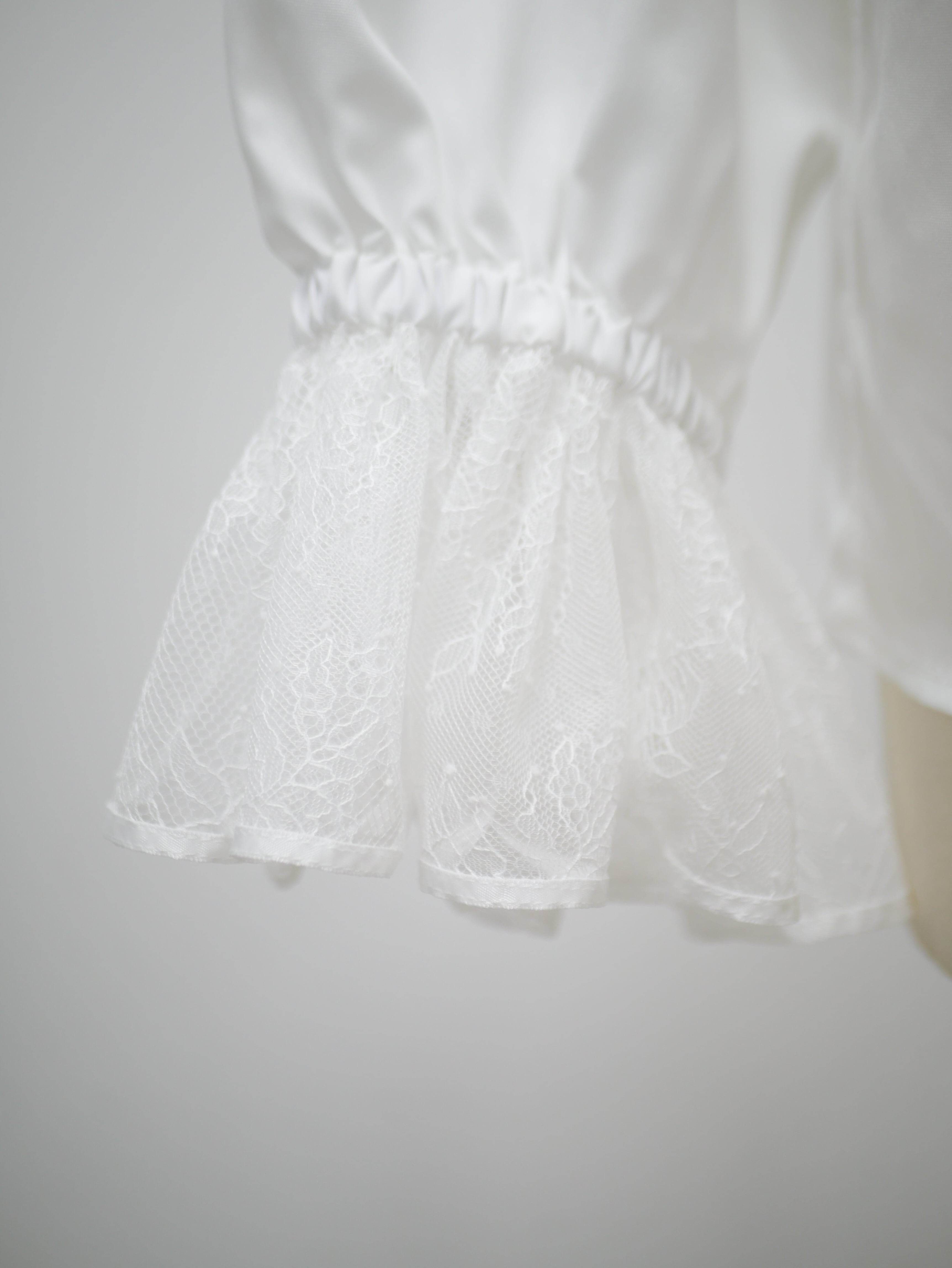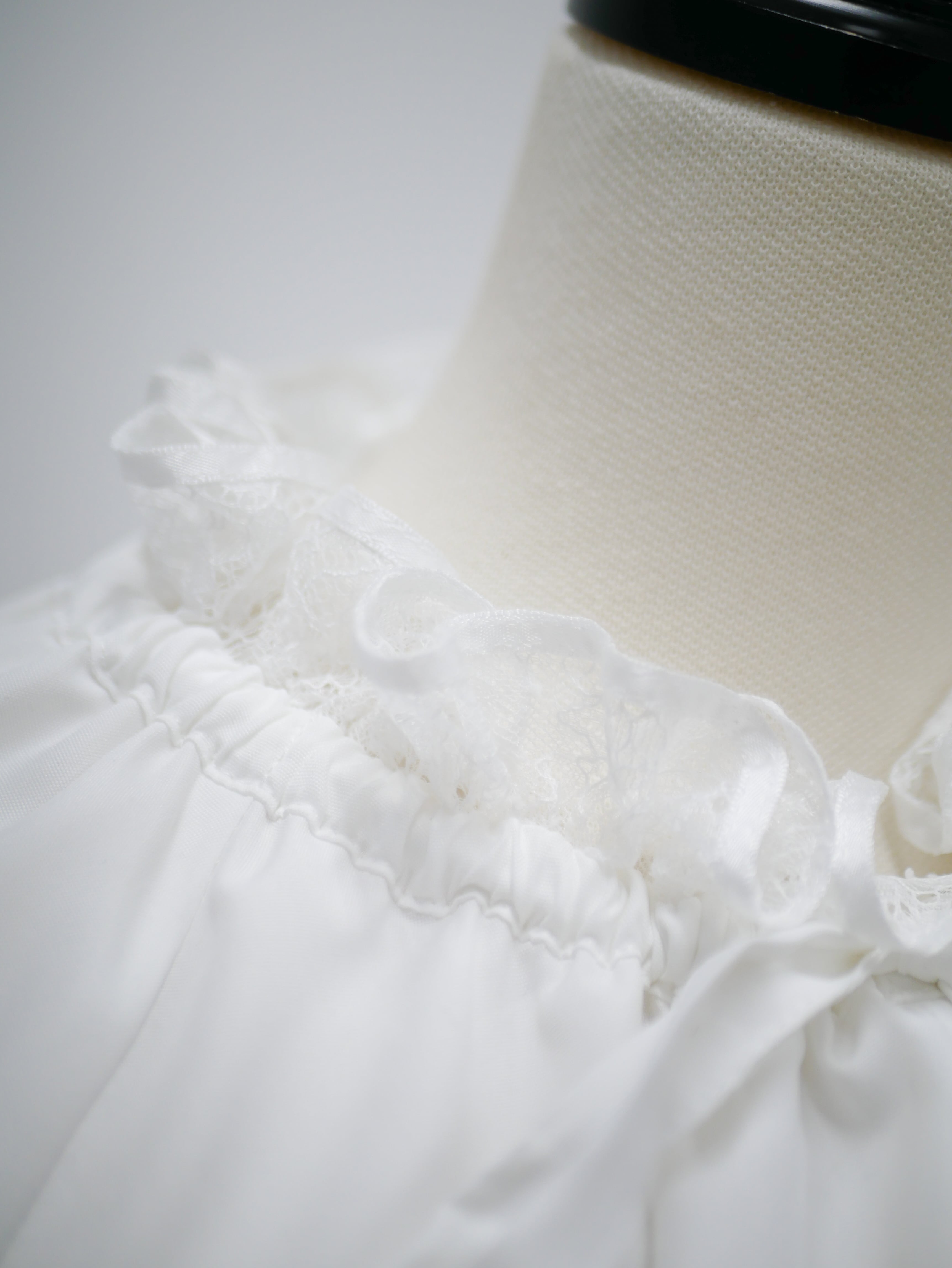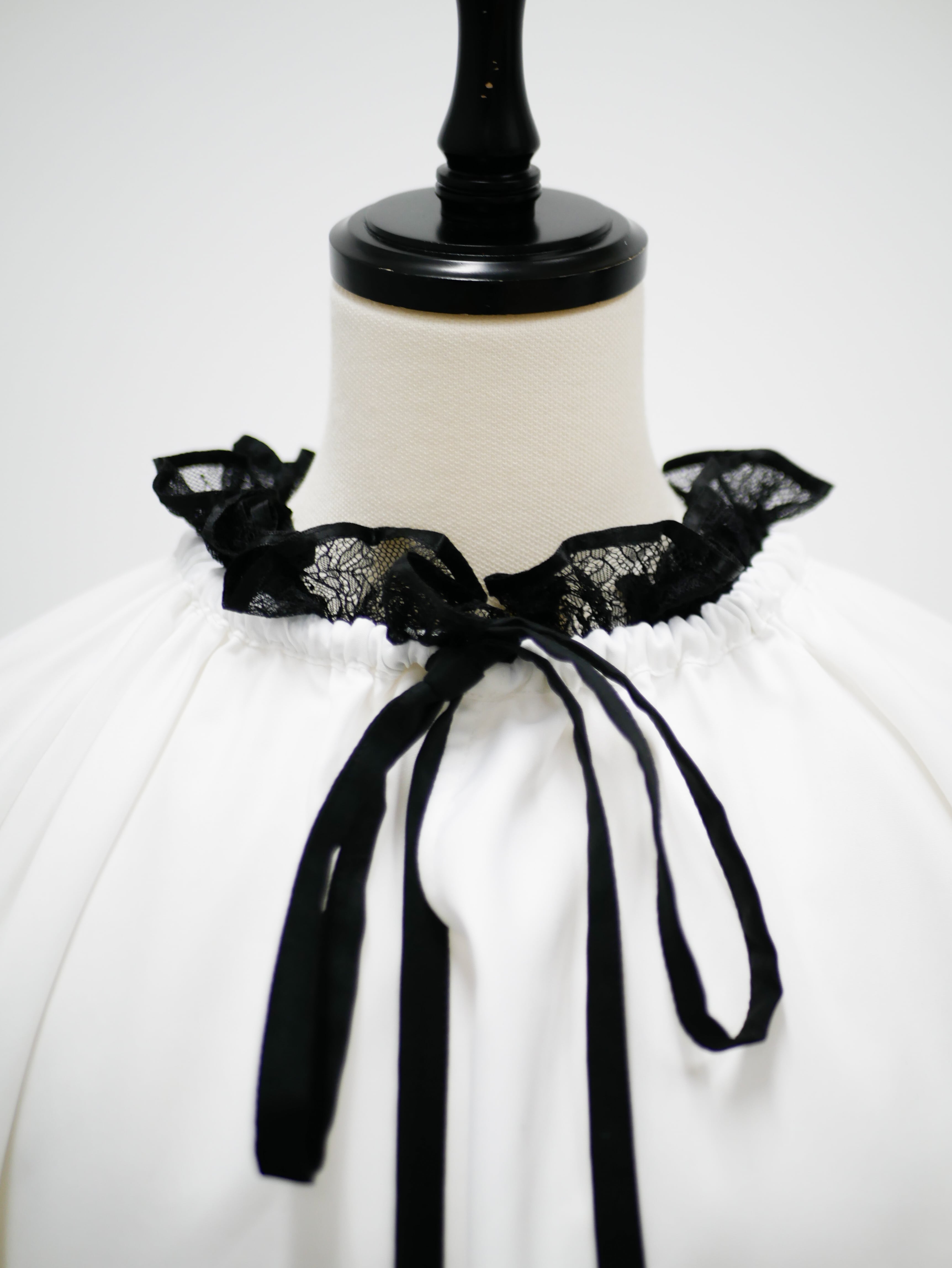 Lace neck frill ribbon blouse