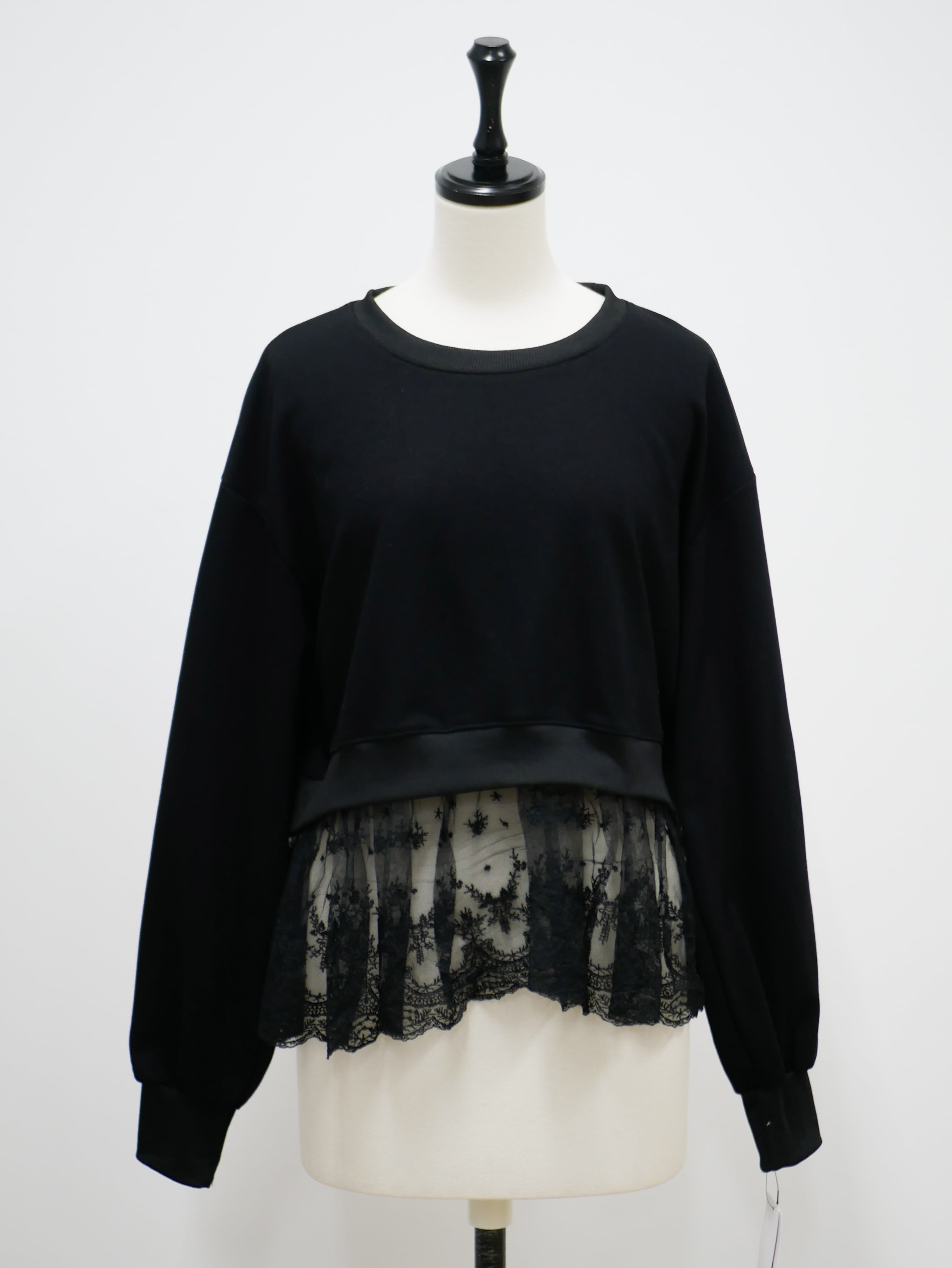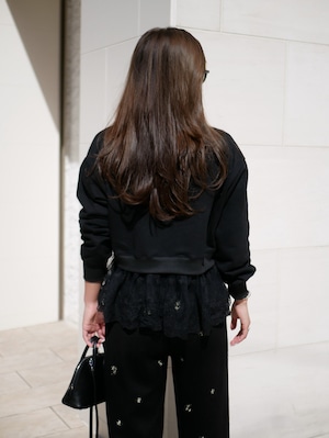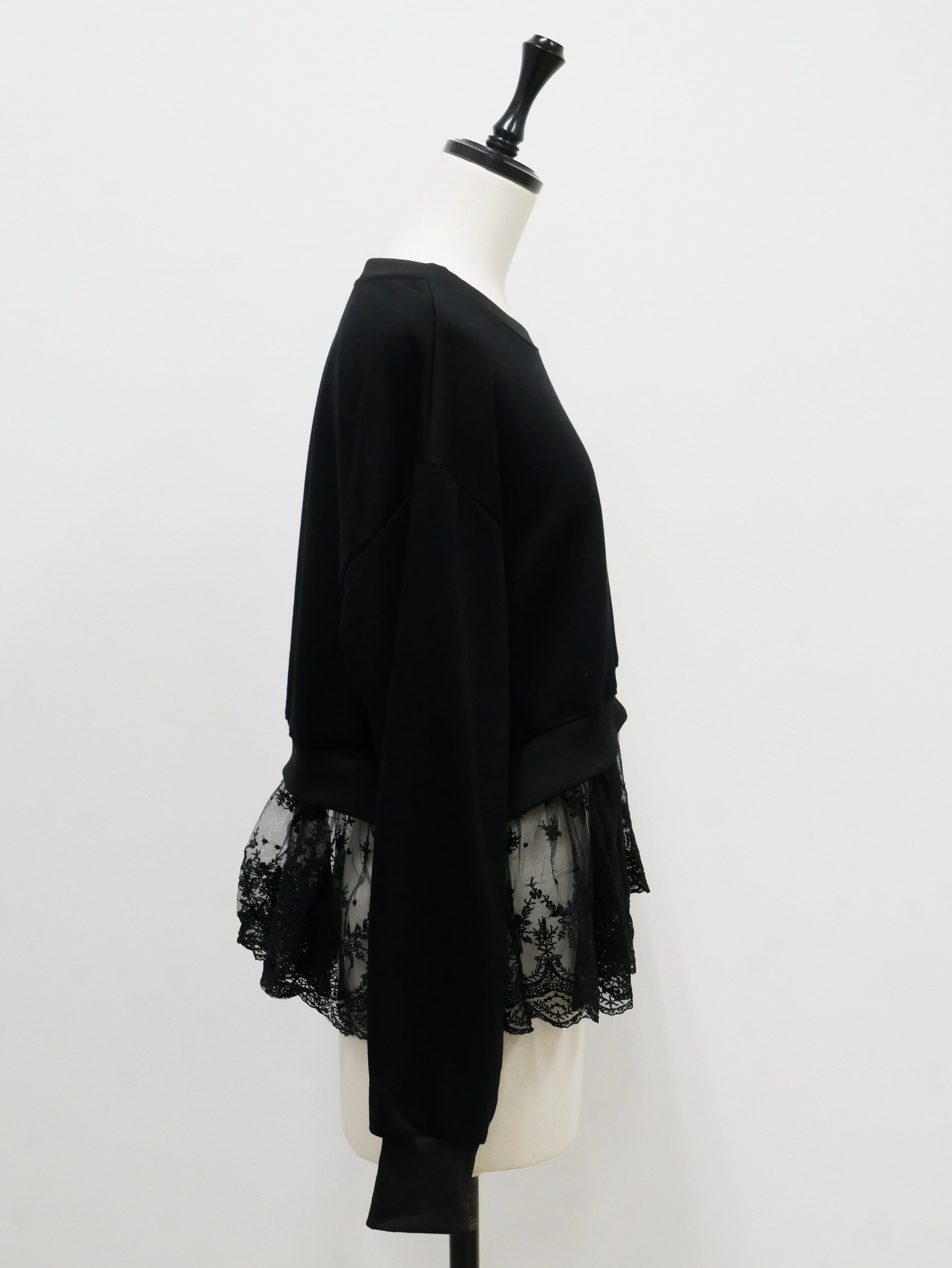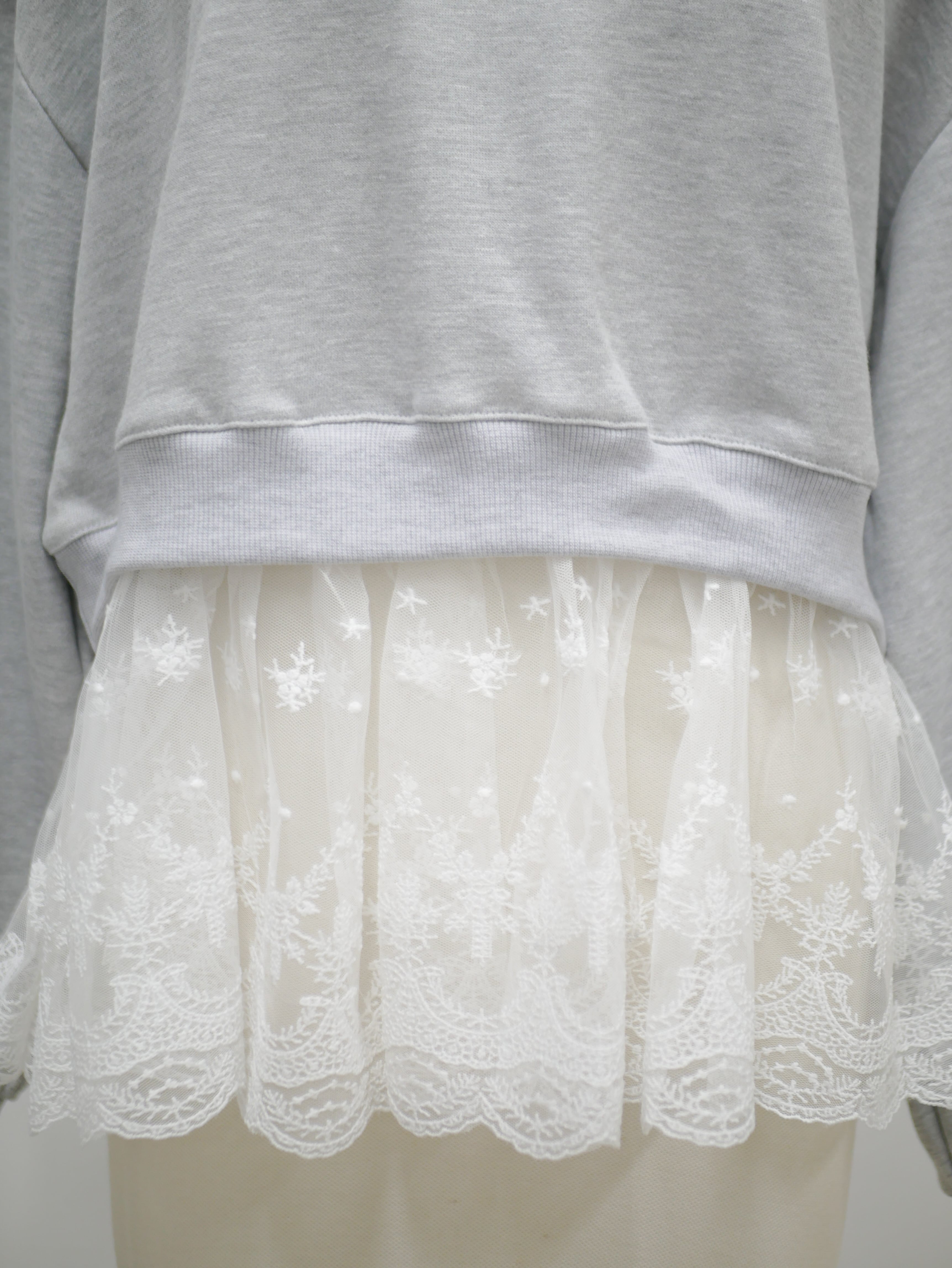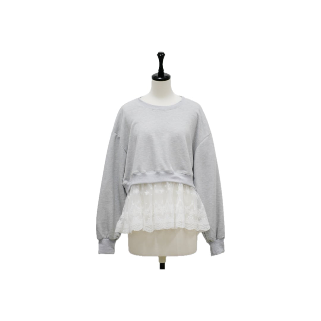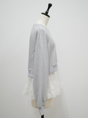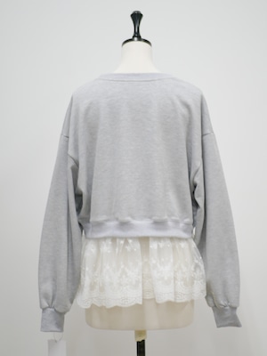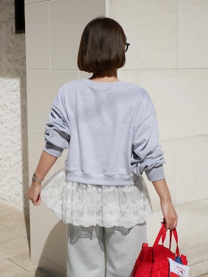 Layered lace frill sweat pullover
