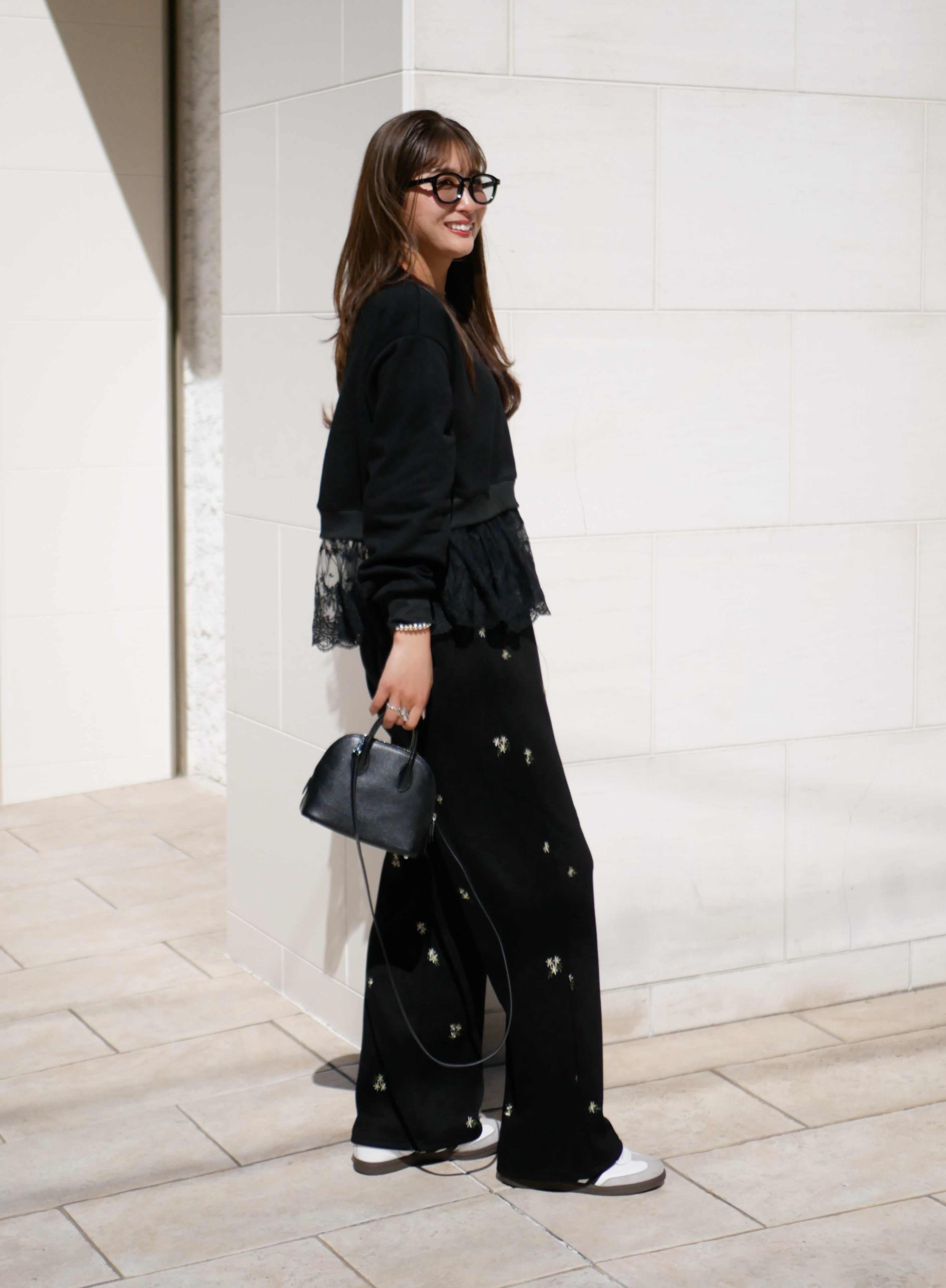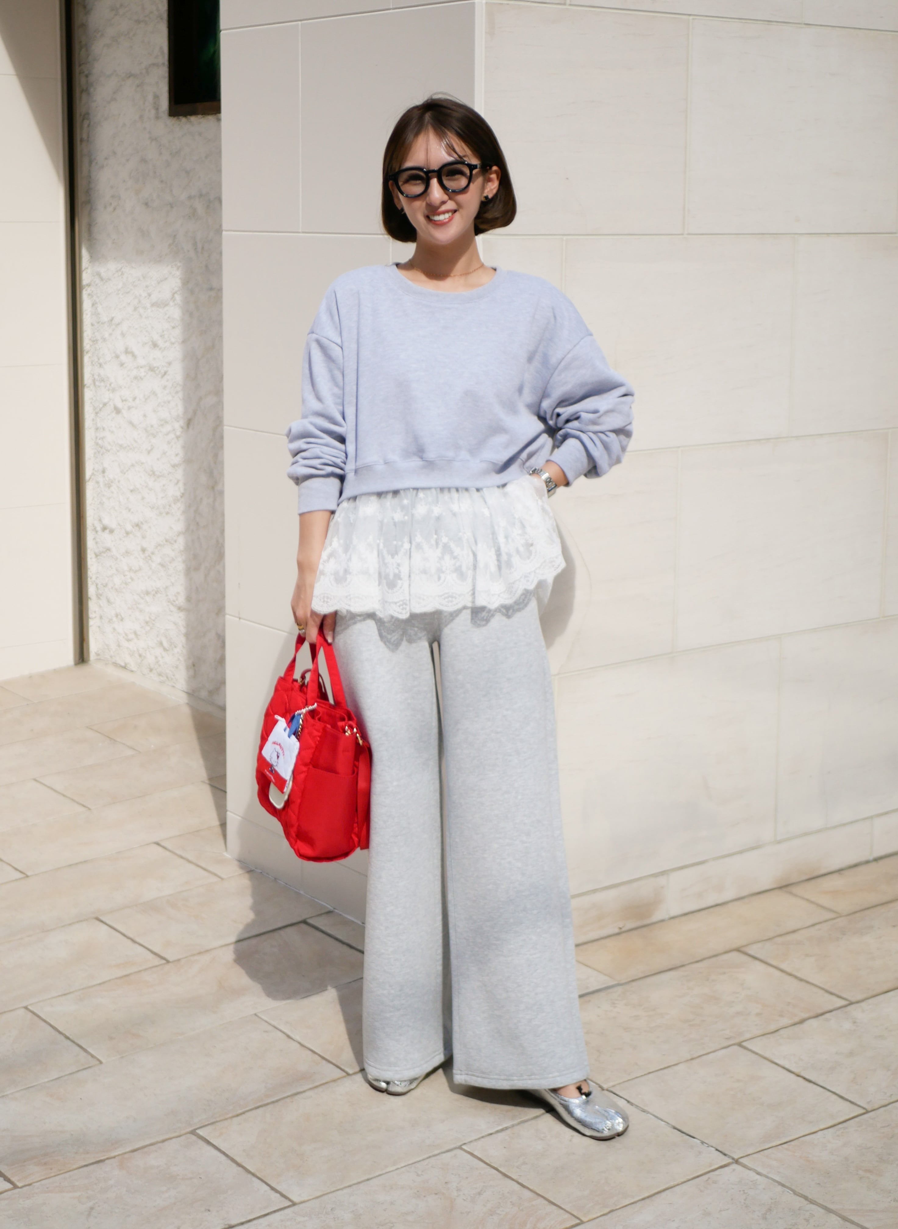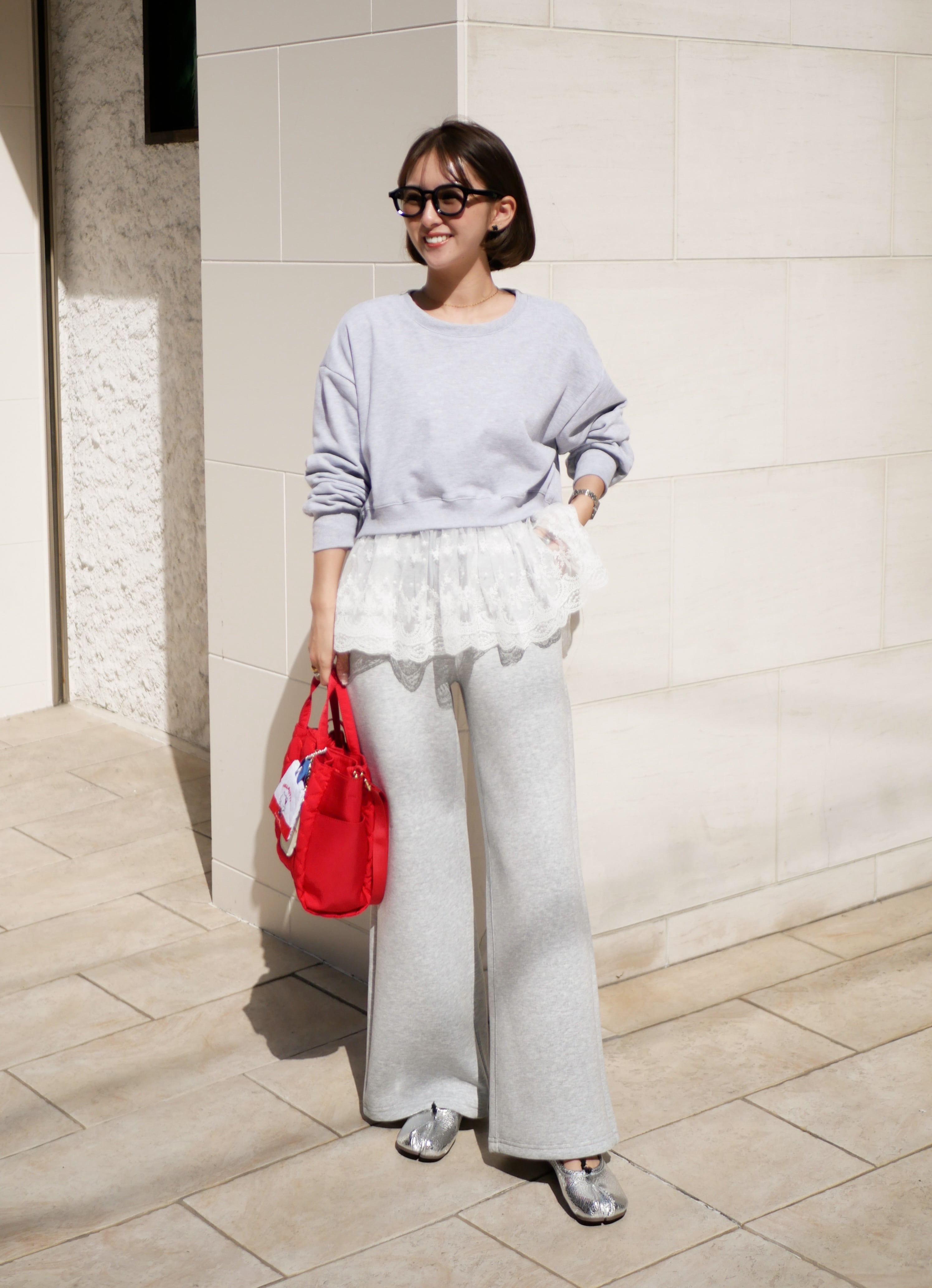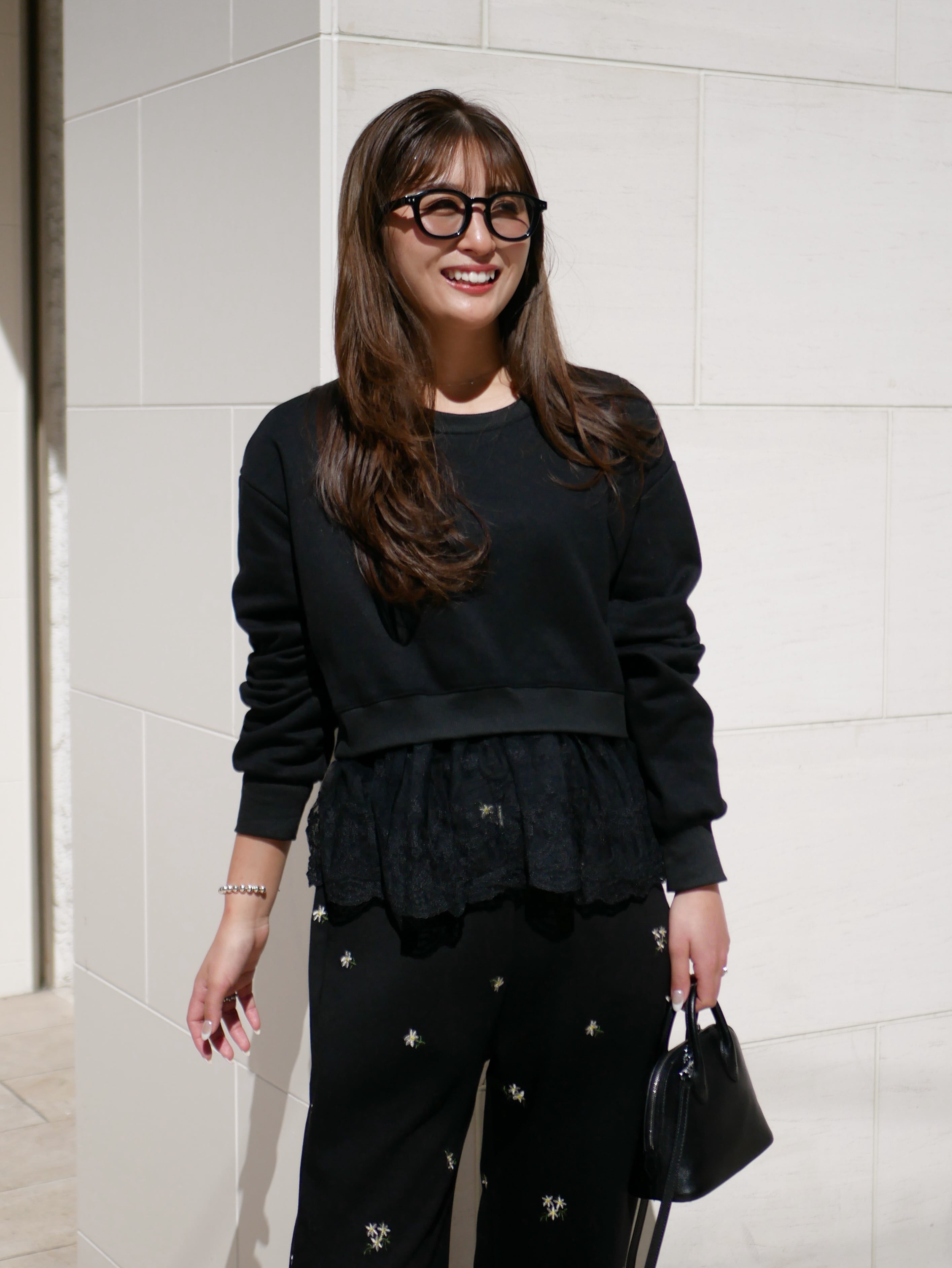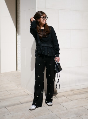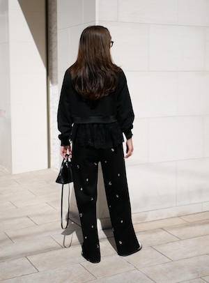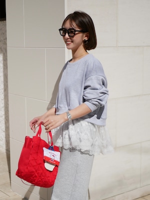 Layered lace frill sweat pullover