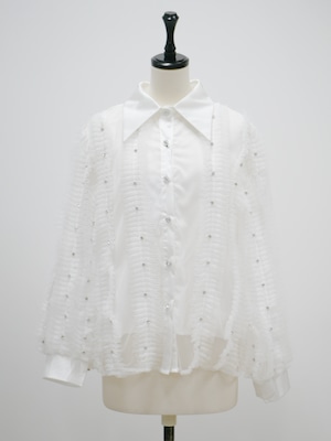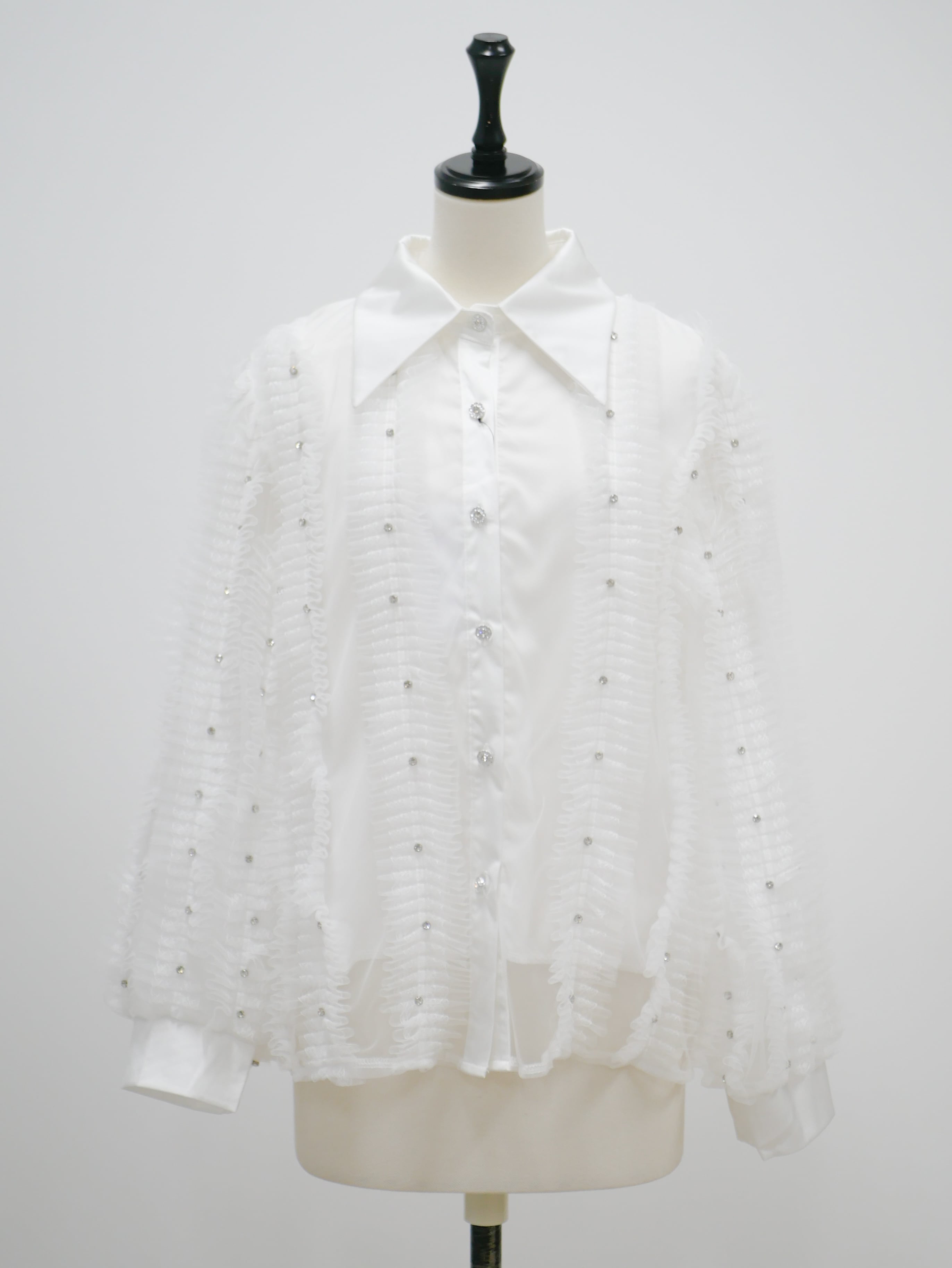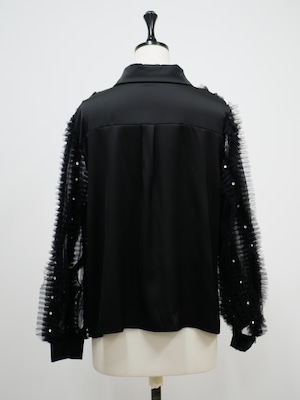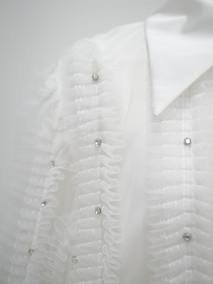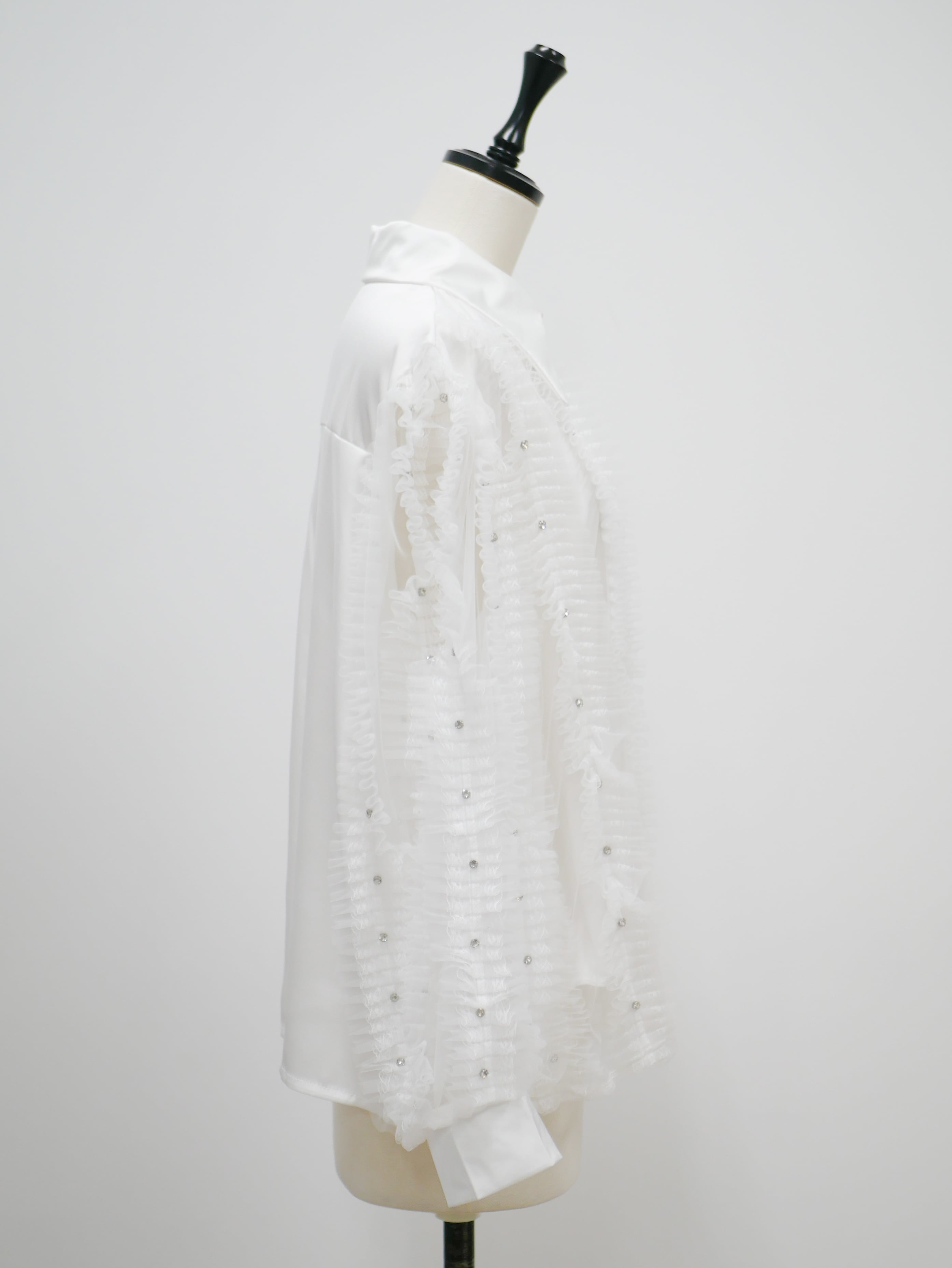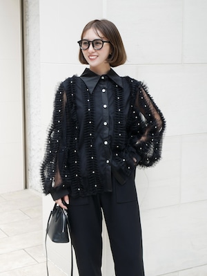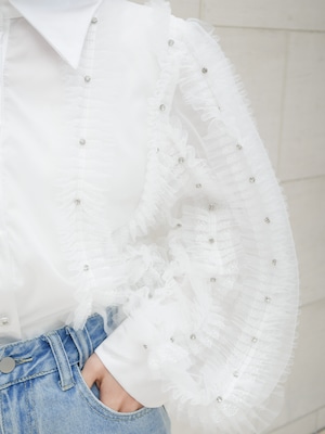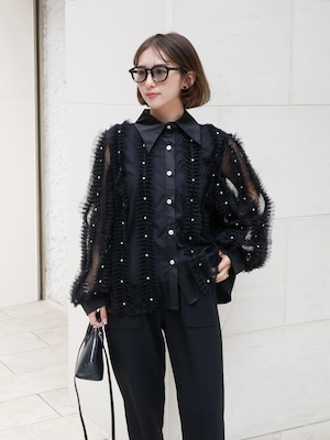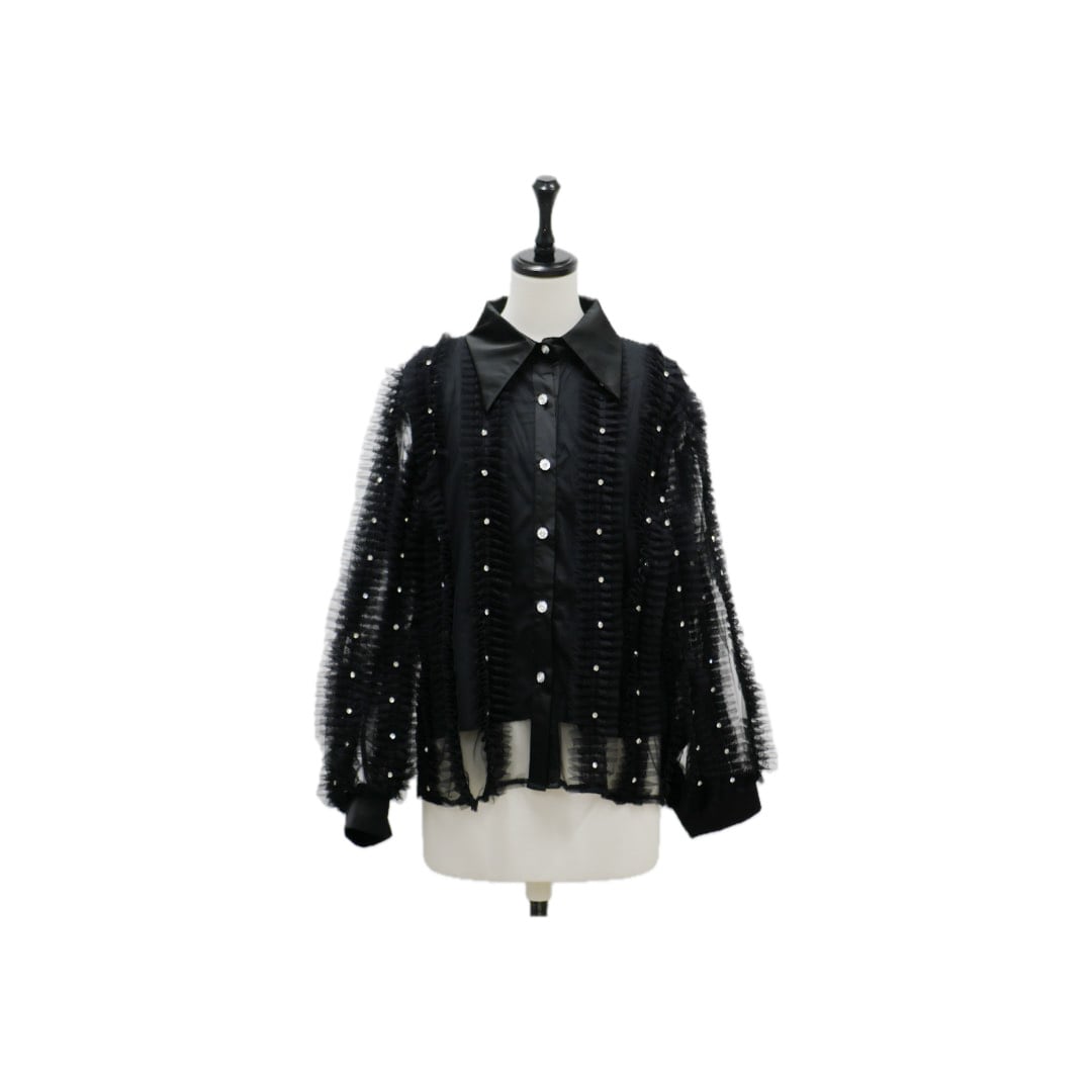 Lady tulle frill sheer blouse