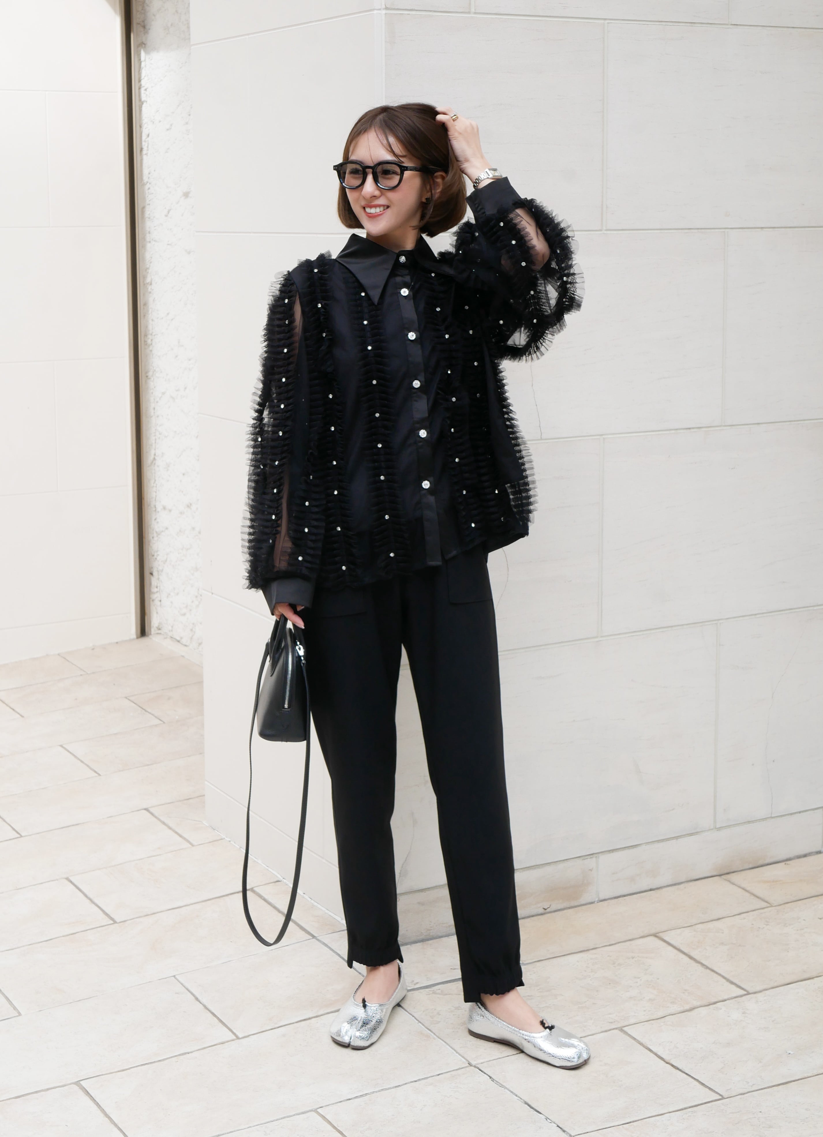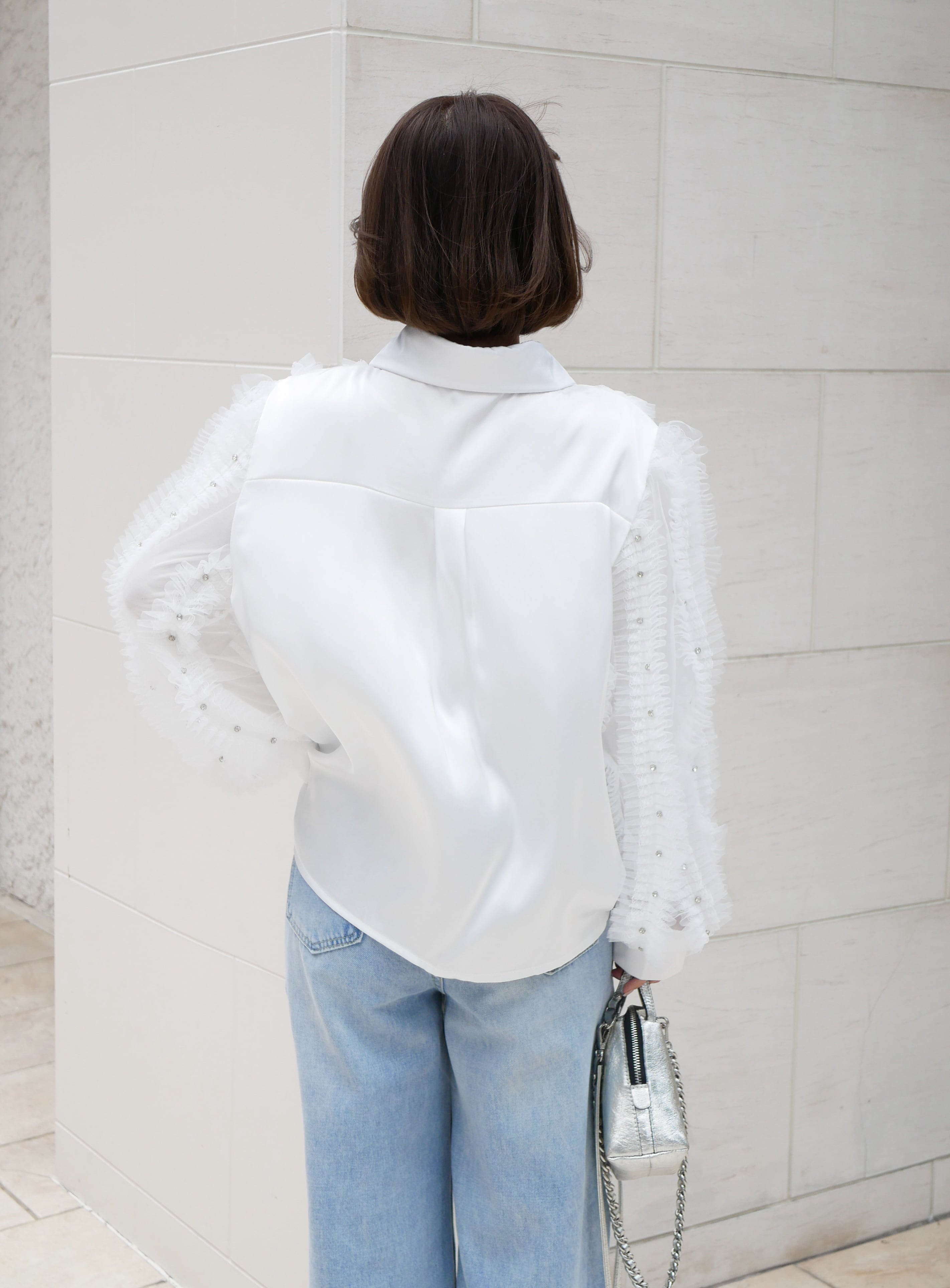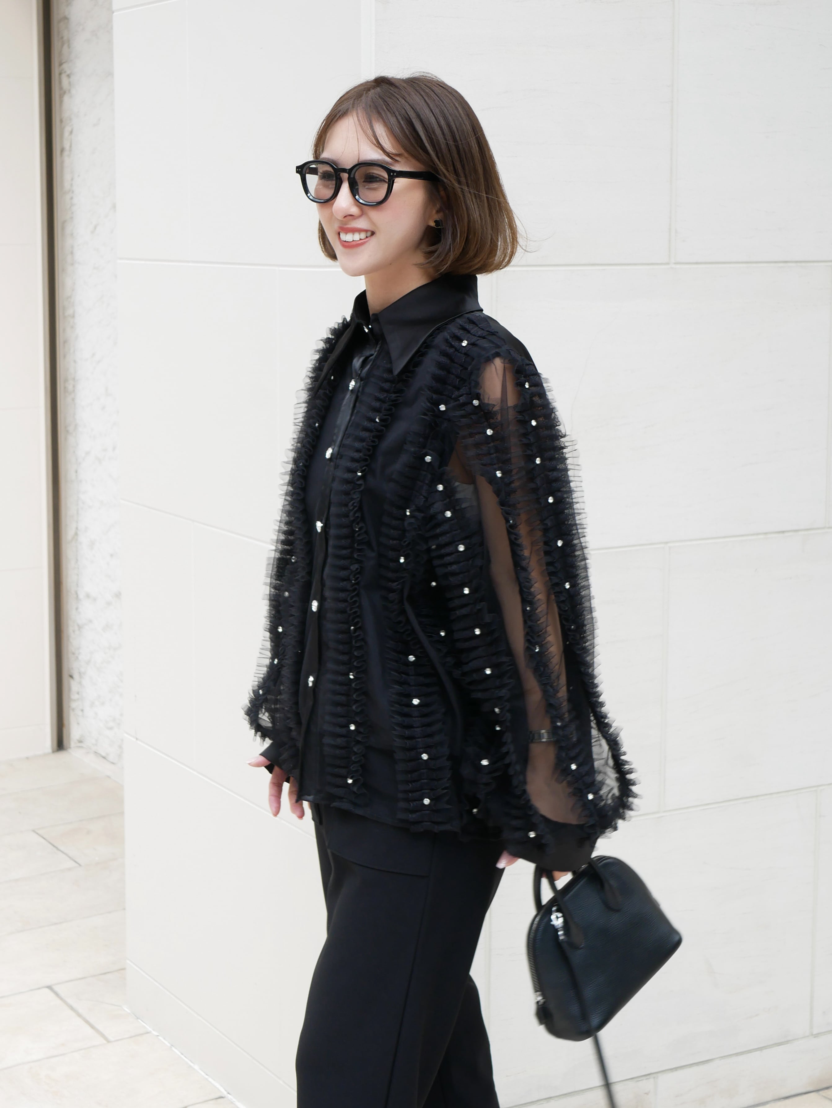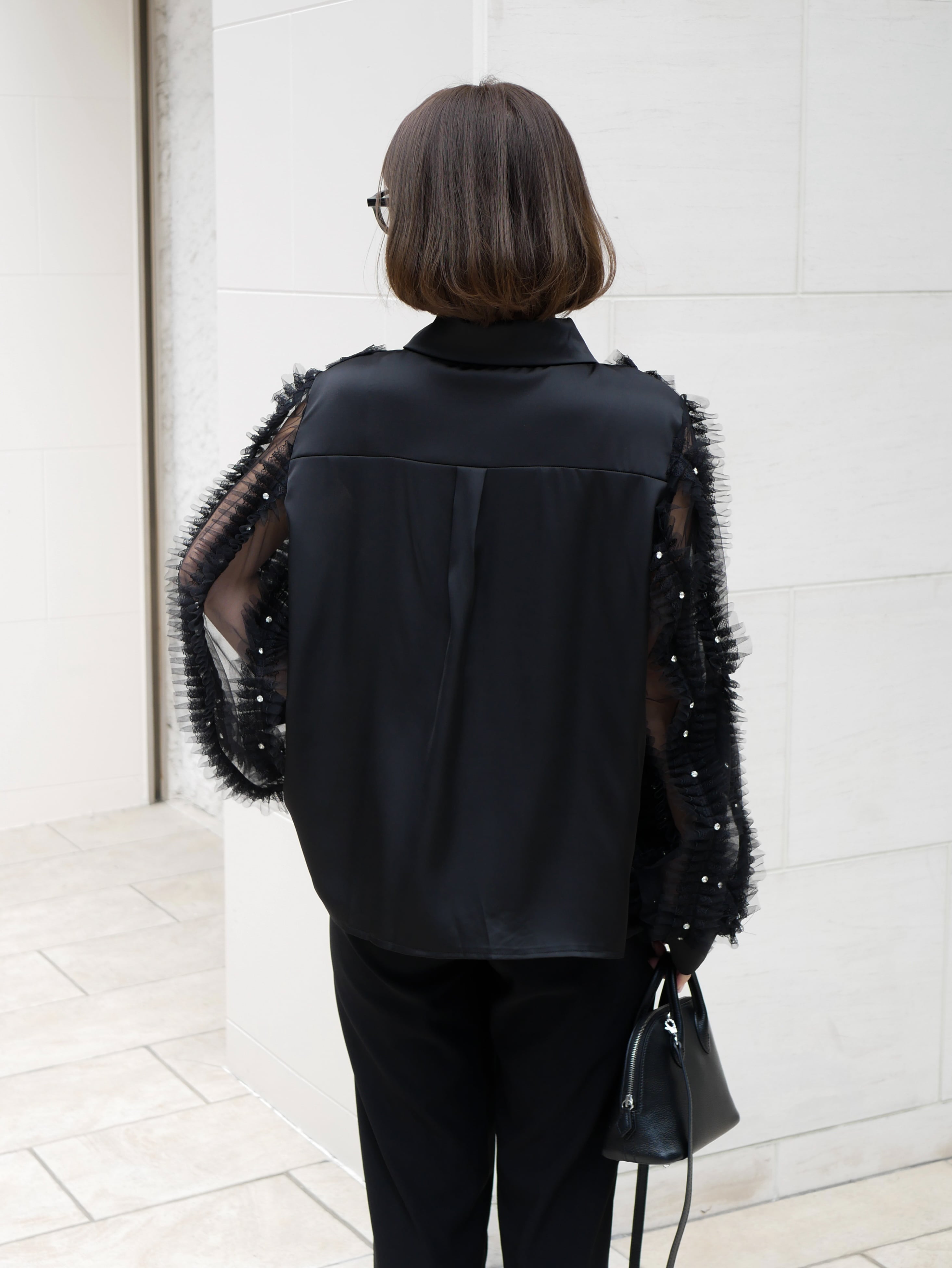 Lady tulle frill sheer blouse