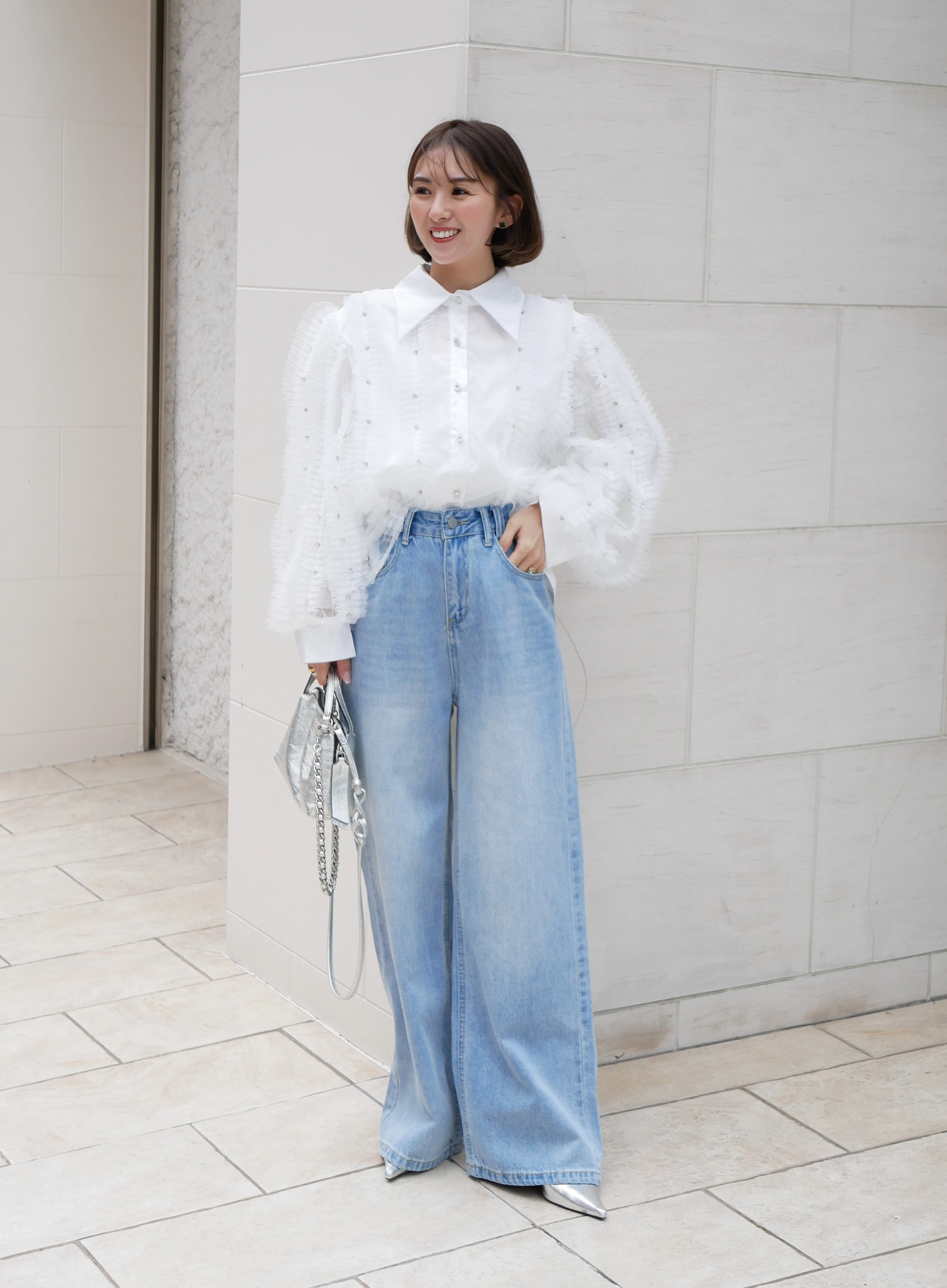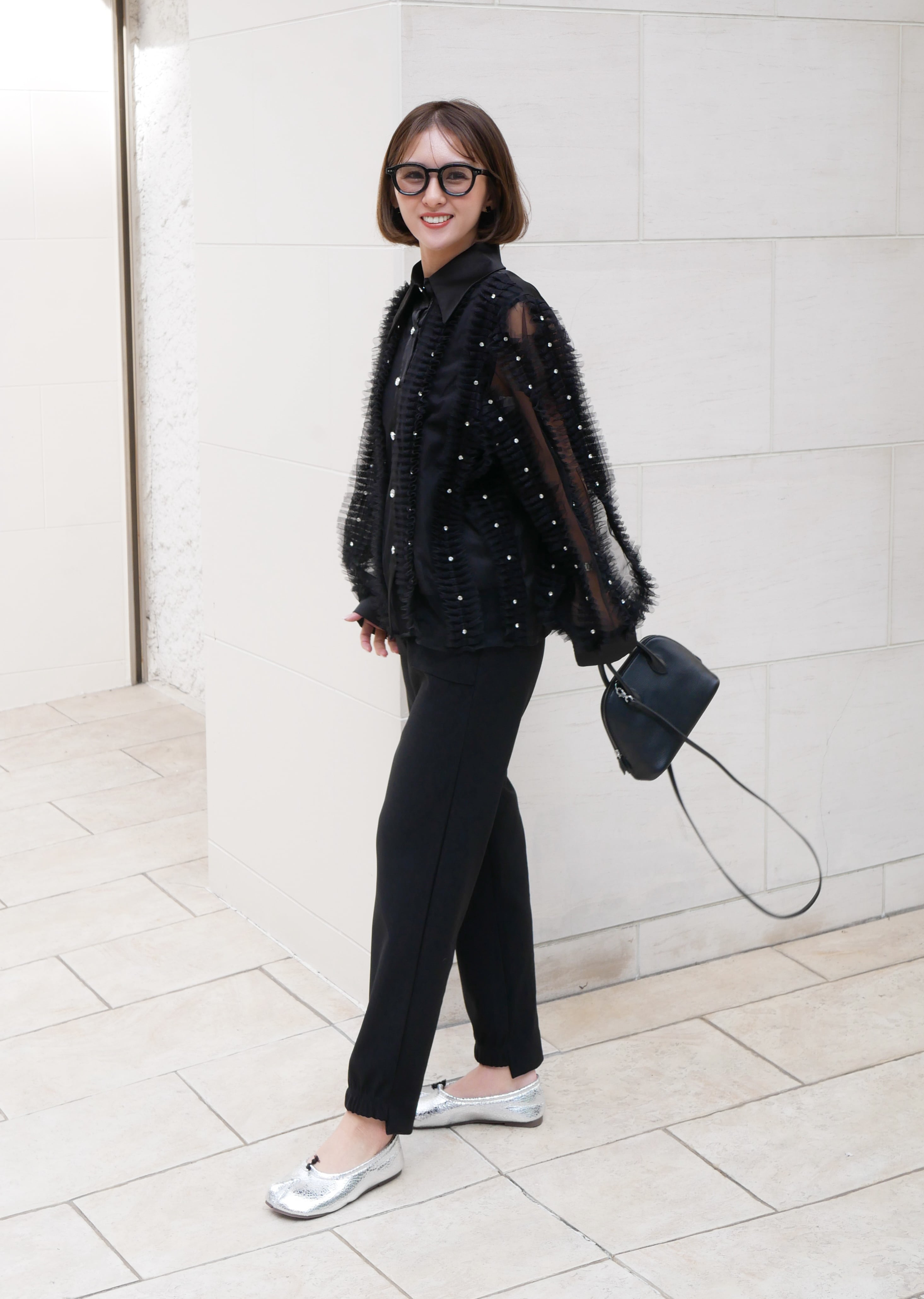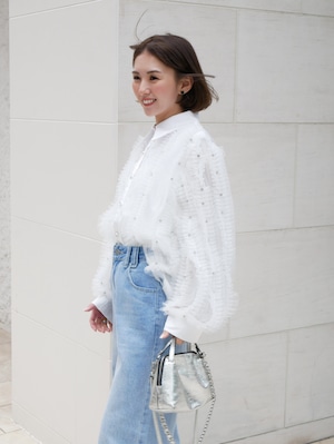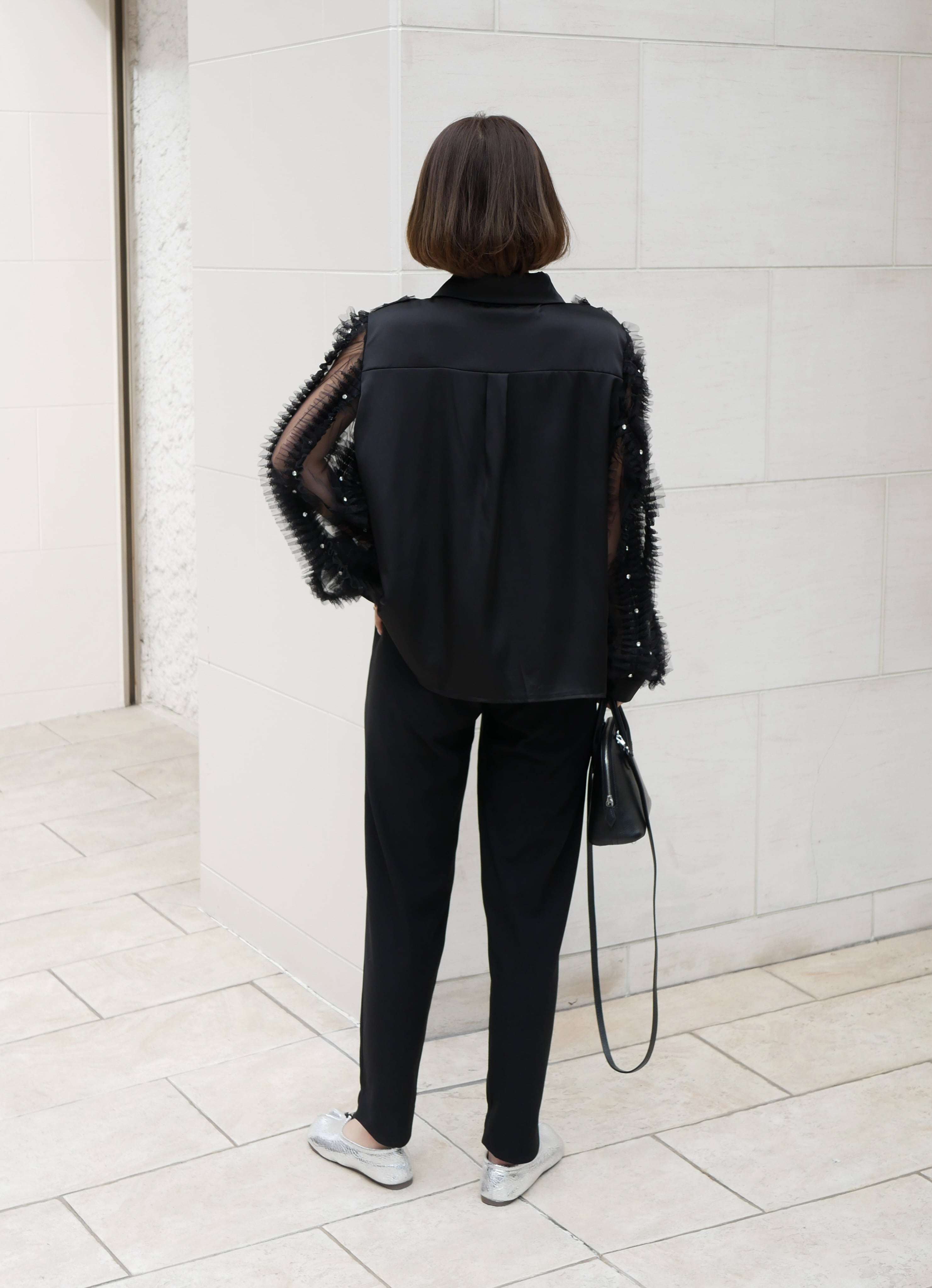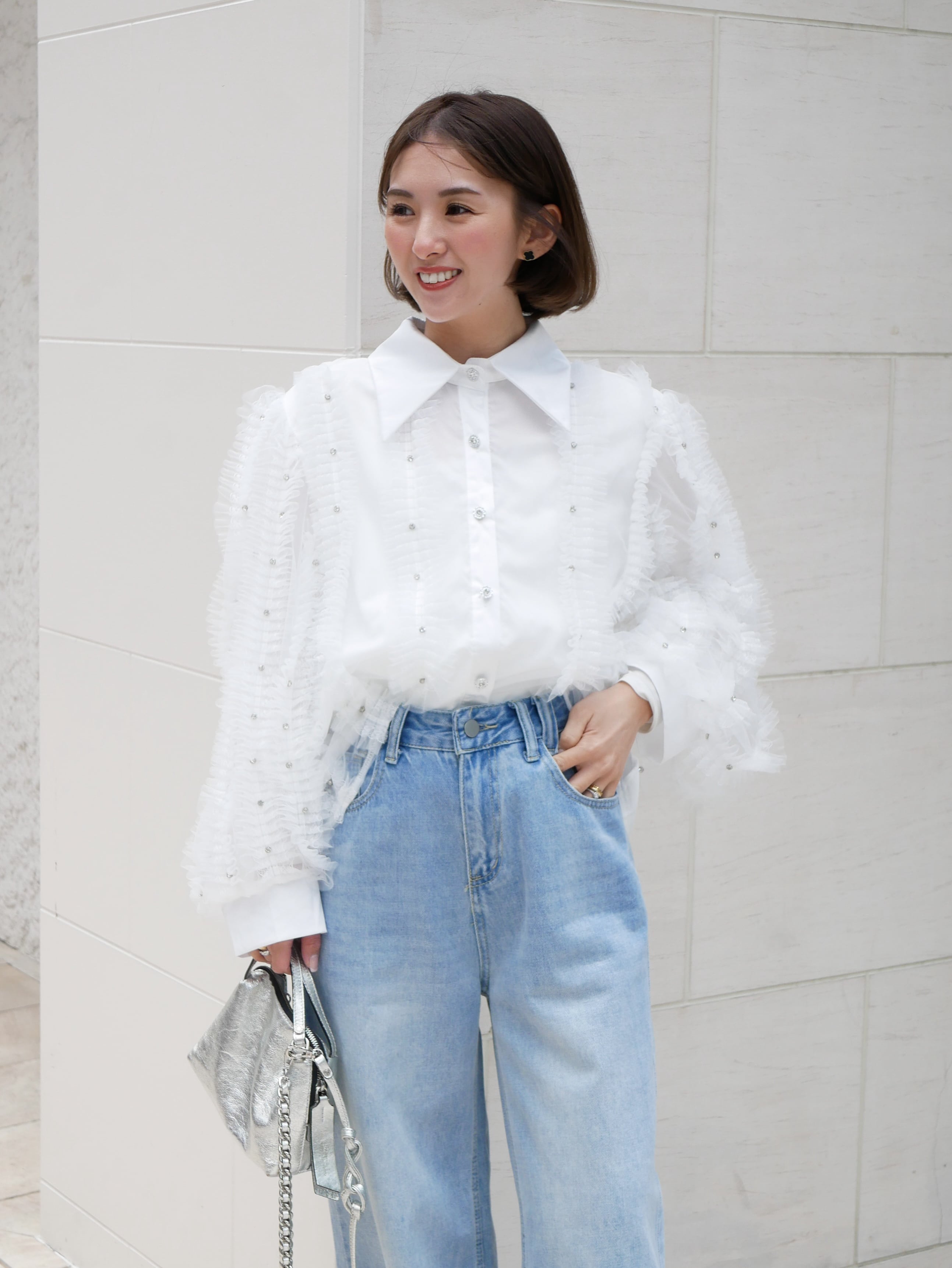Lady tulle frill sheer blouse
