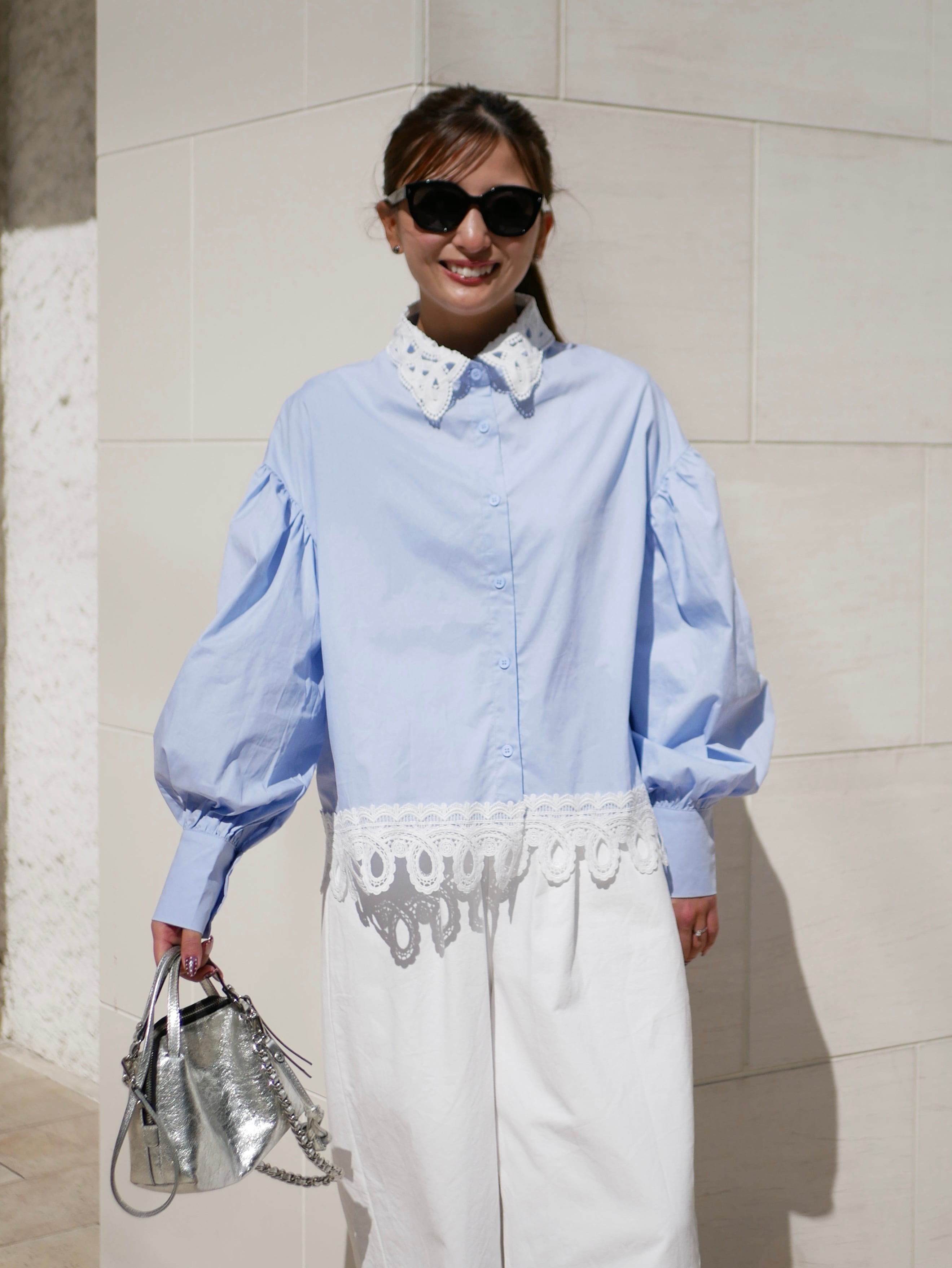襟・裾のレースデザインがポイントになった大人可愛い一着。