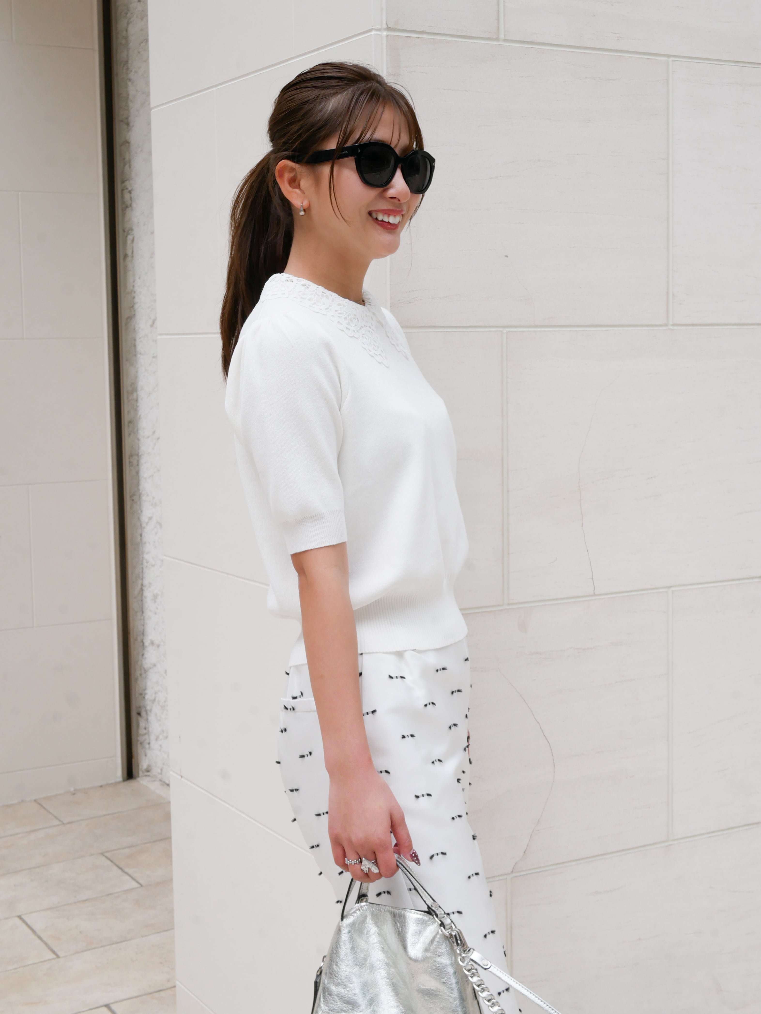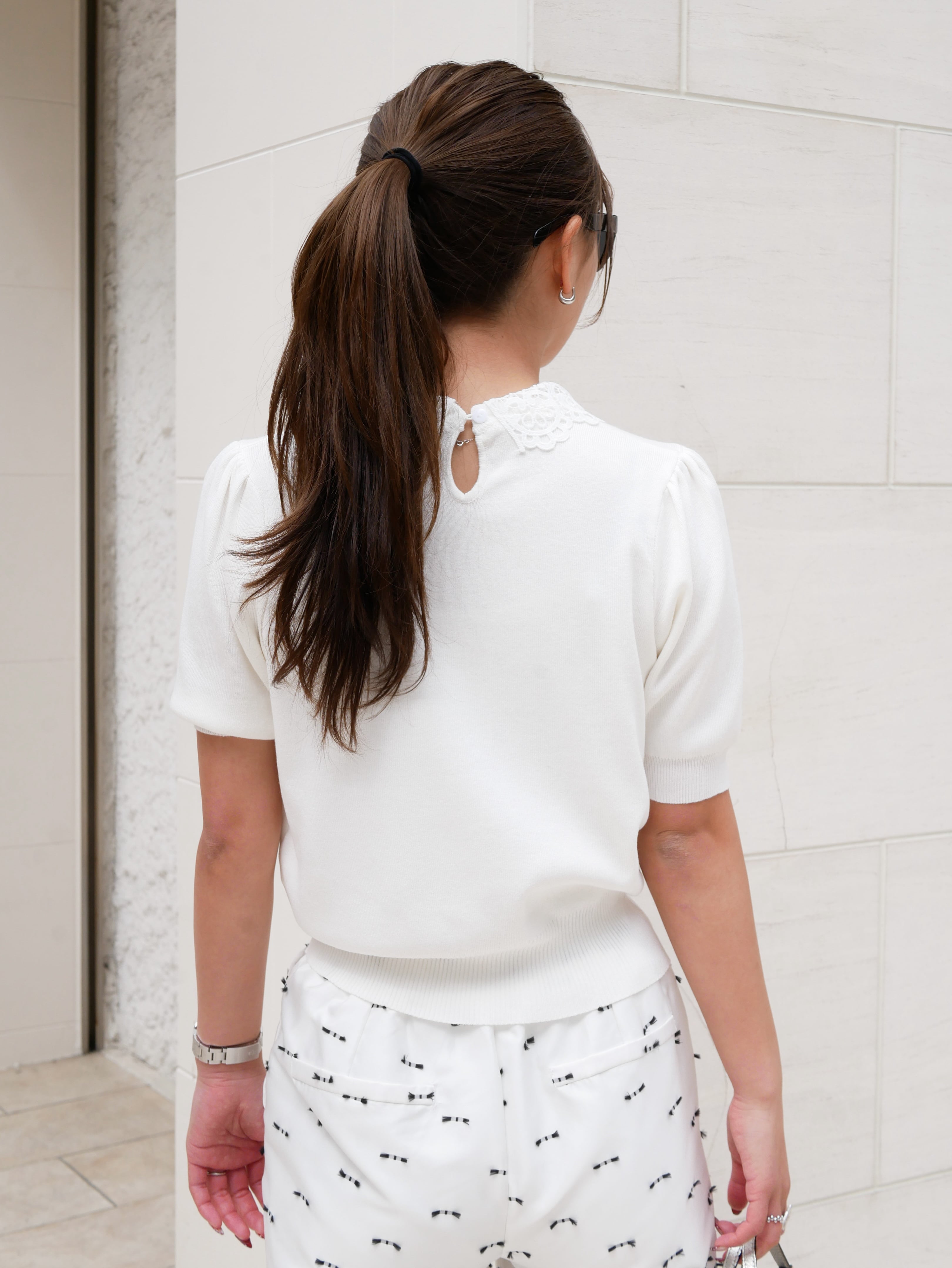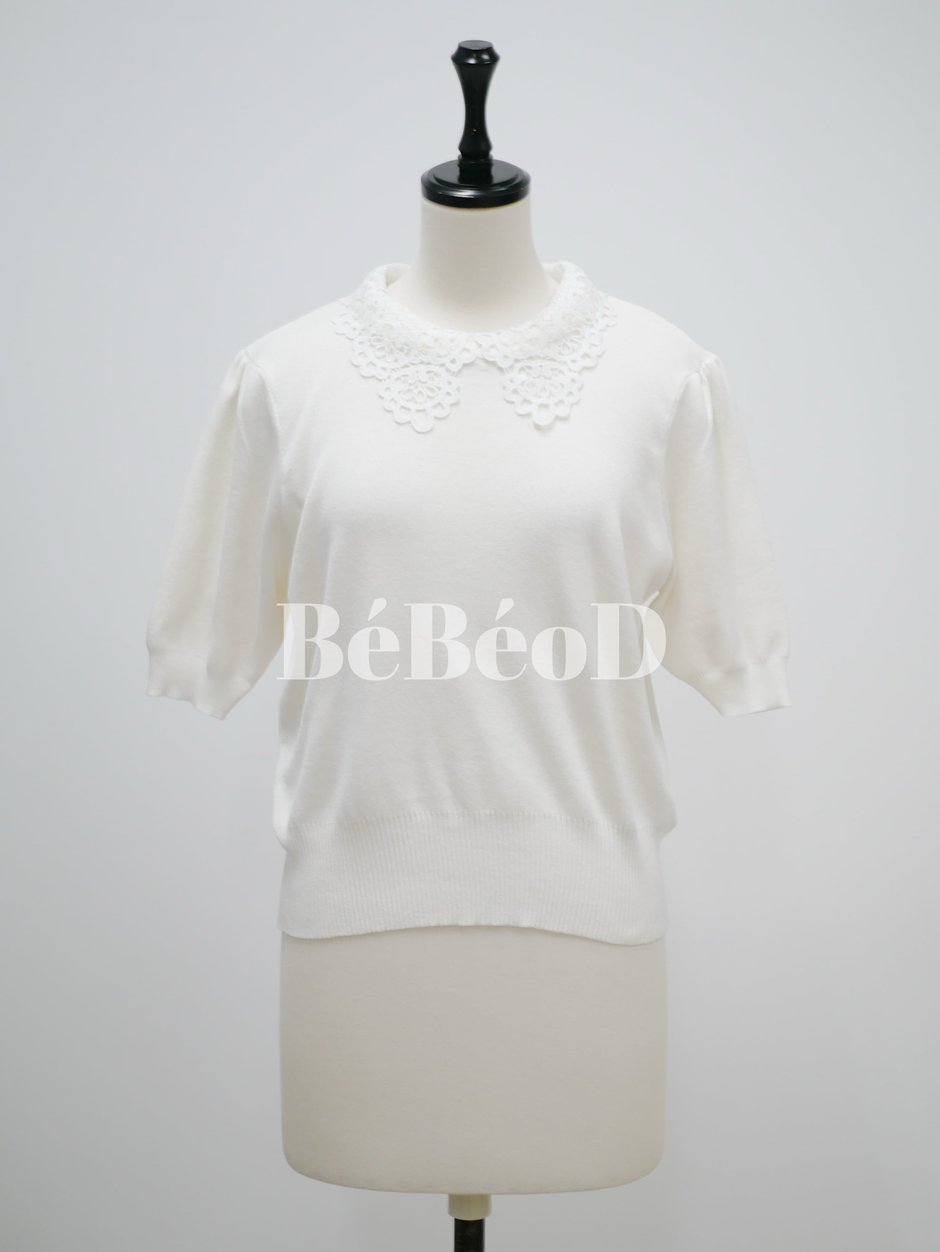 Lace collar spring knit tops