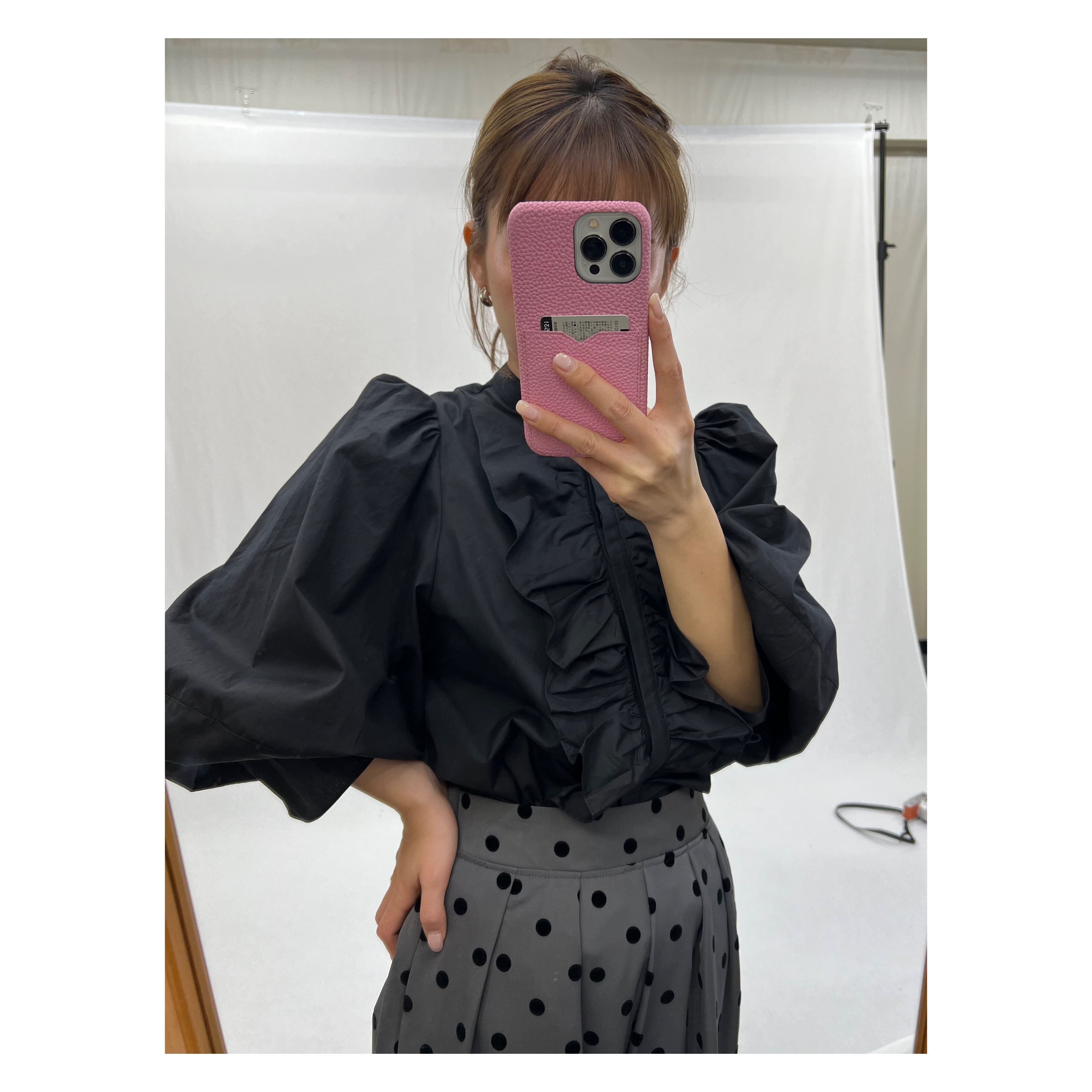 Center frill gather blouse