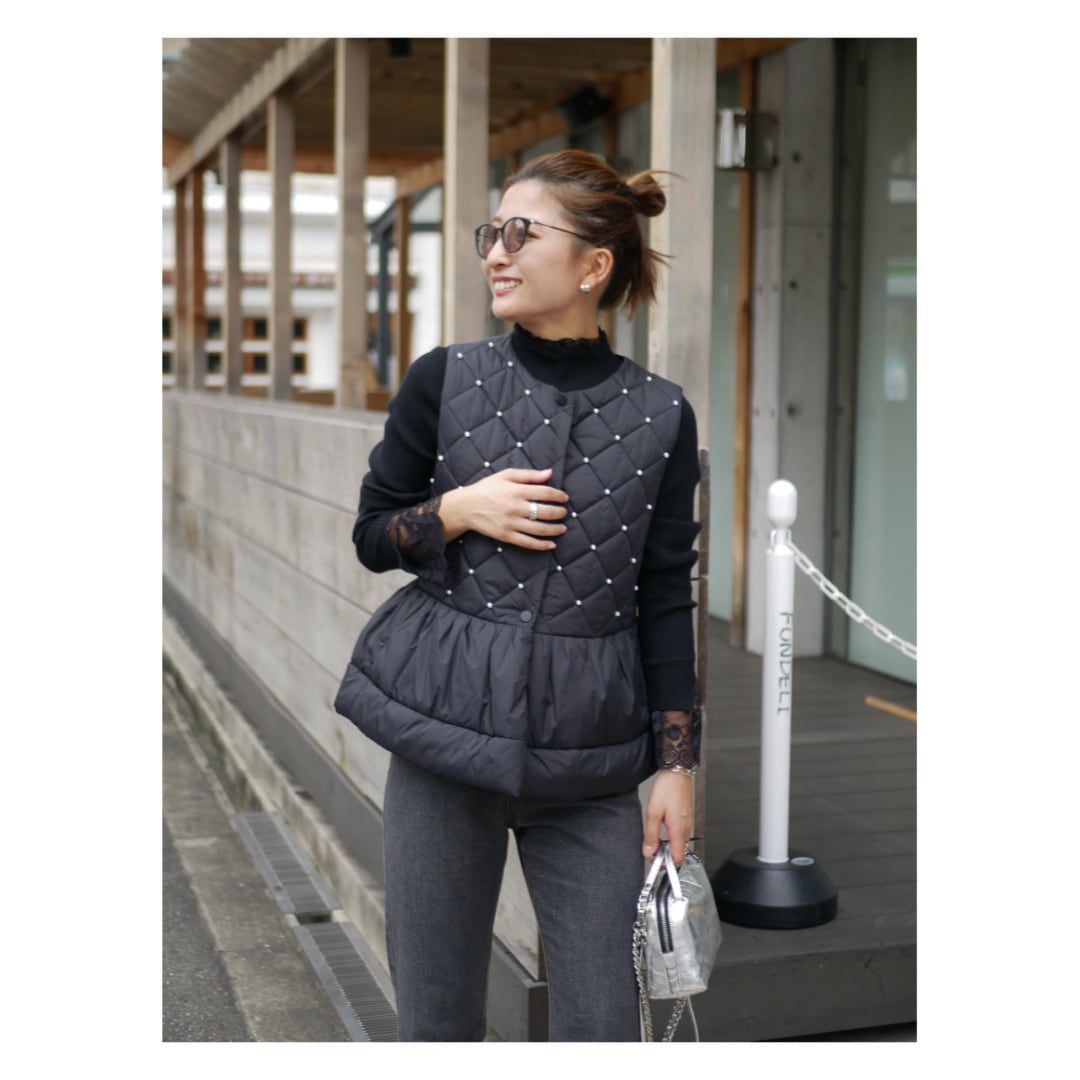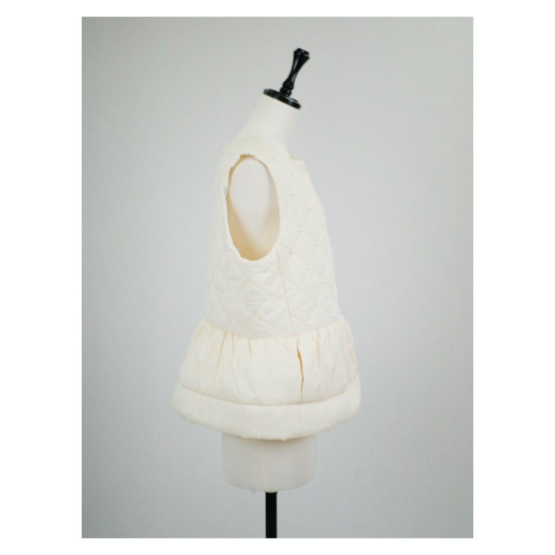 ダイヤモンド形のキルティングとちりばめられたパール、ペプラムデザインが上品な甘さを加えてくれます。