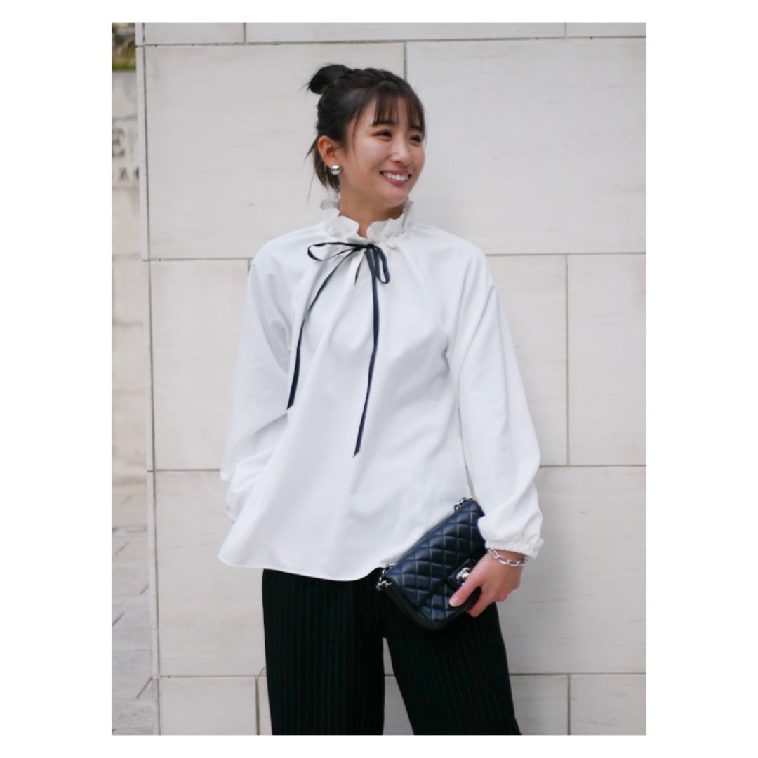 Neck ribbon design blouse