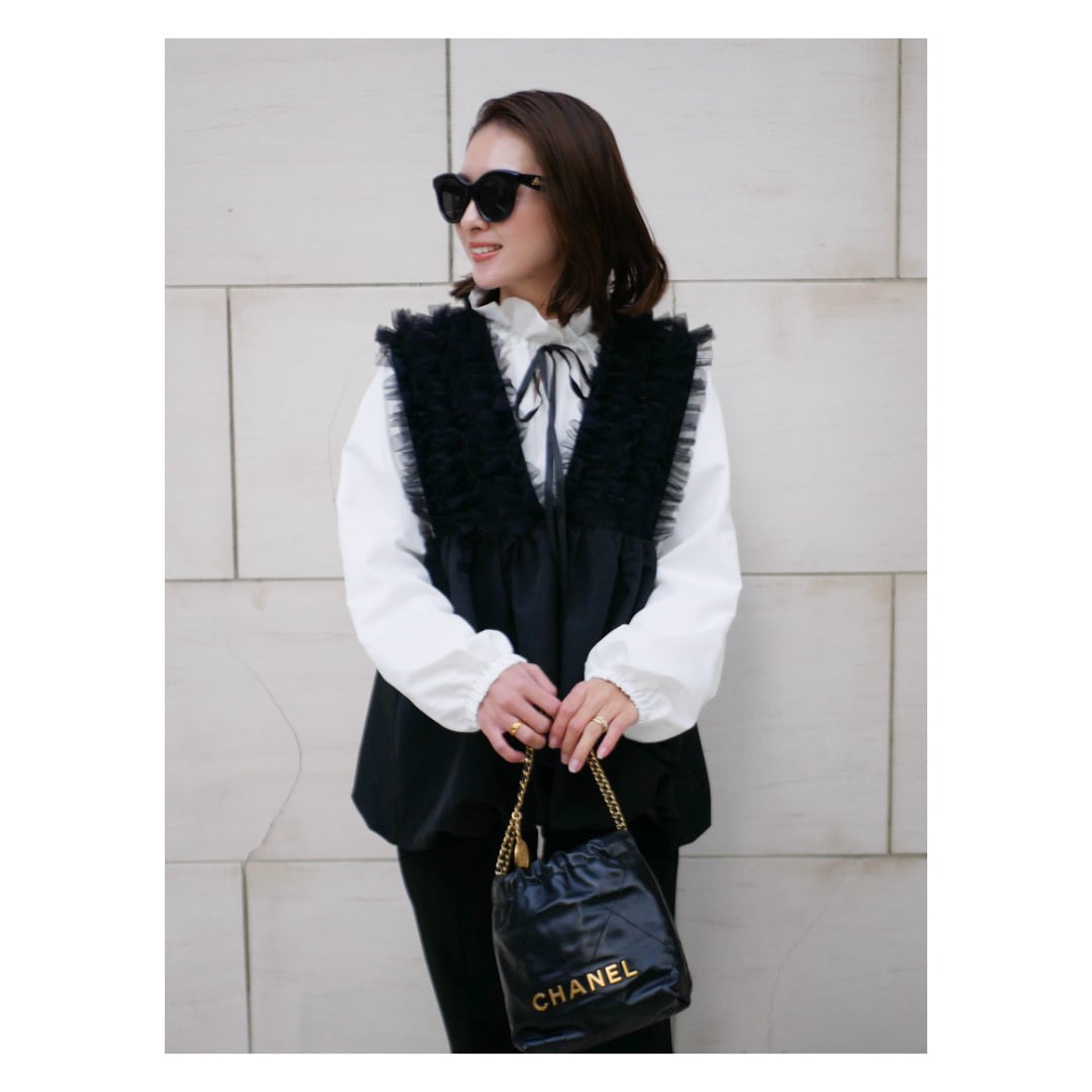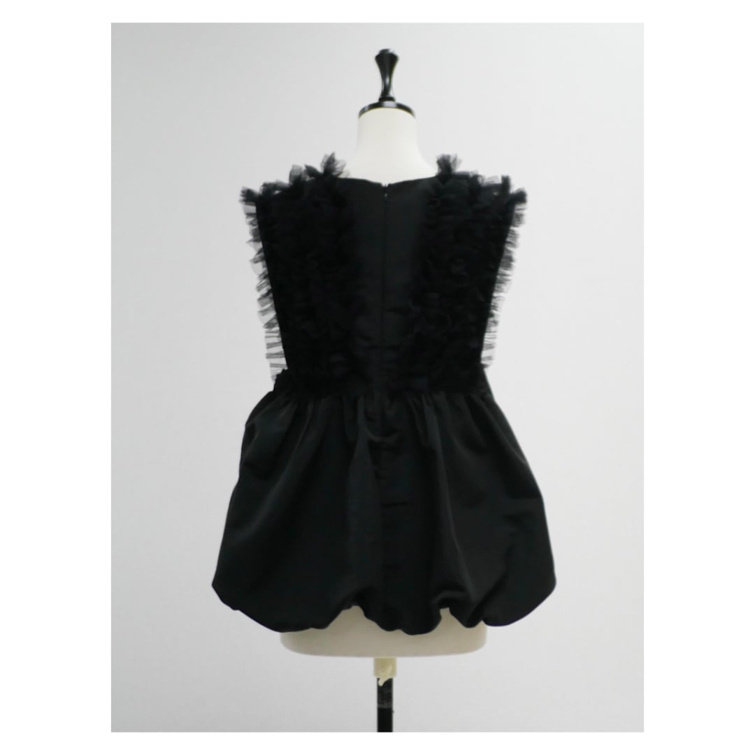 レイヤードスタイルで重宝するフリルモチーフ付きペプラムベスト