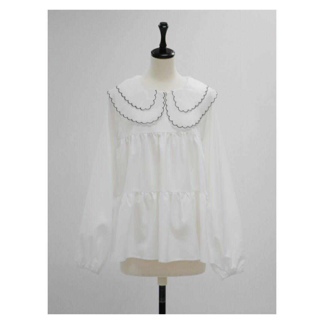 スカラップデザインの大きな襟が特徴で目を惹くアクセントに。