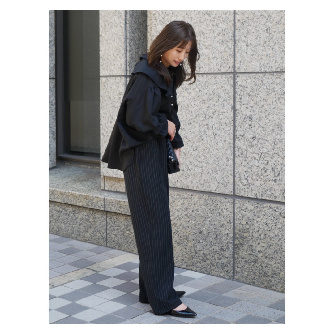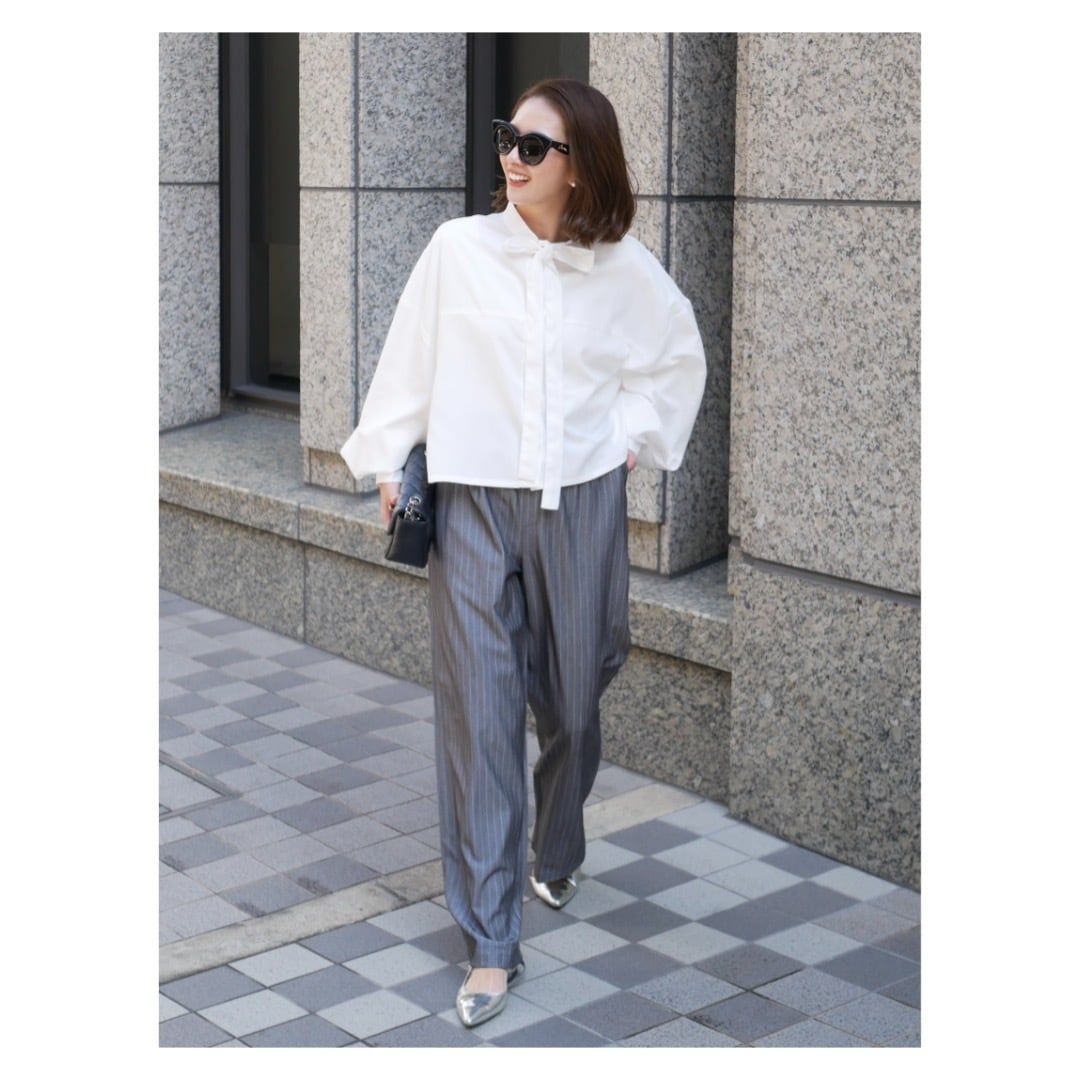 シンプルで着回しの効くストライプ柄ストレートパンツ